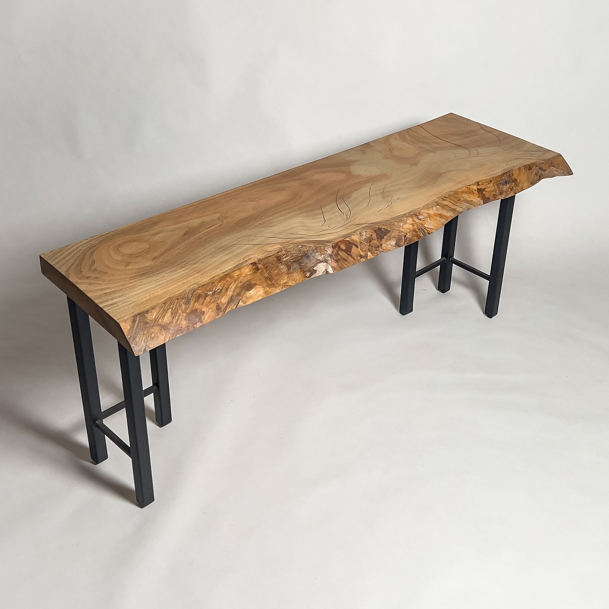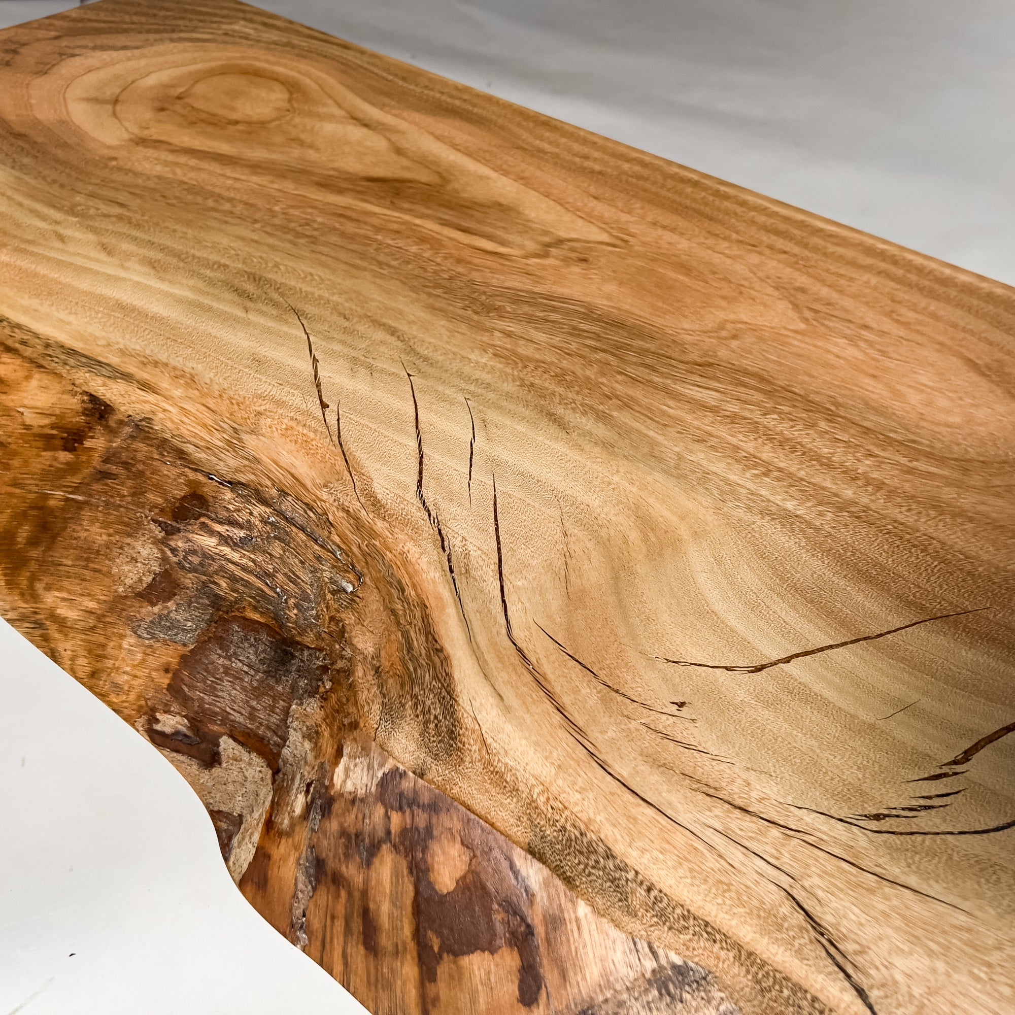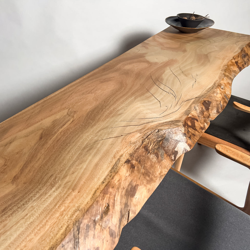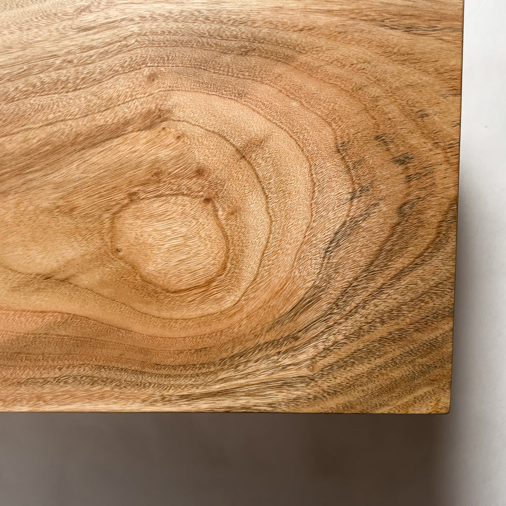 複数の板をつなぎ合わせたものとは異なり、途切れることなく続く杢目は自然の美しさをそのまま映し出します。