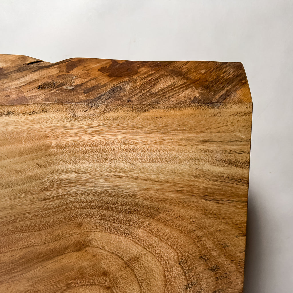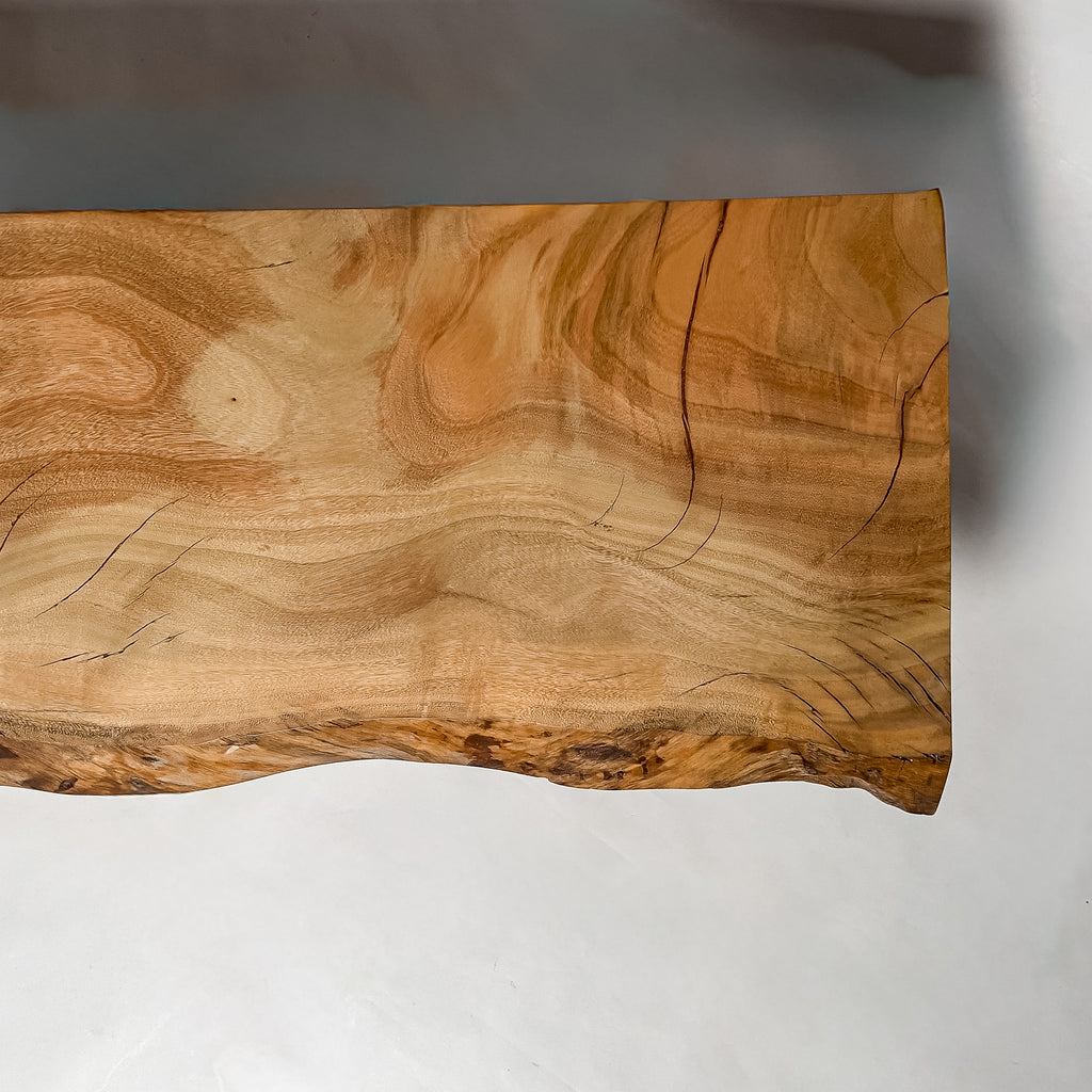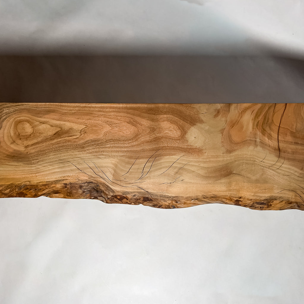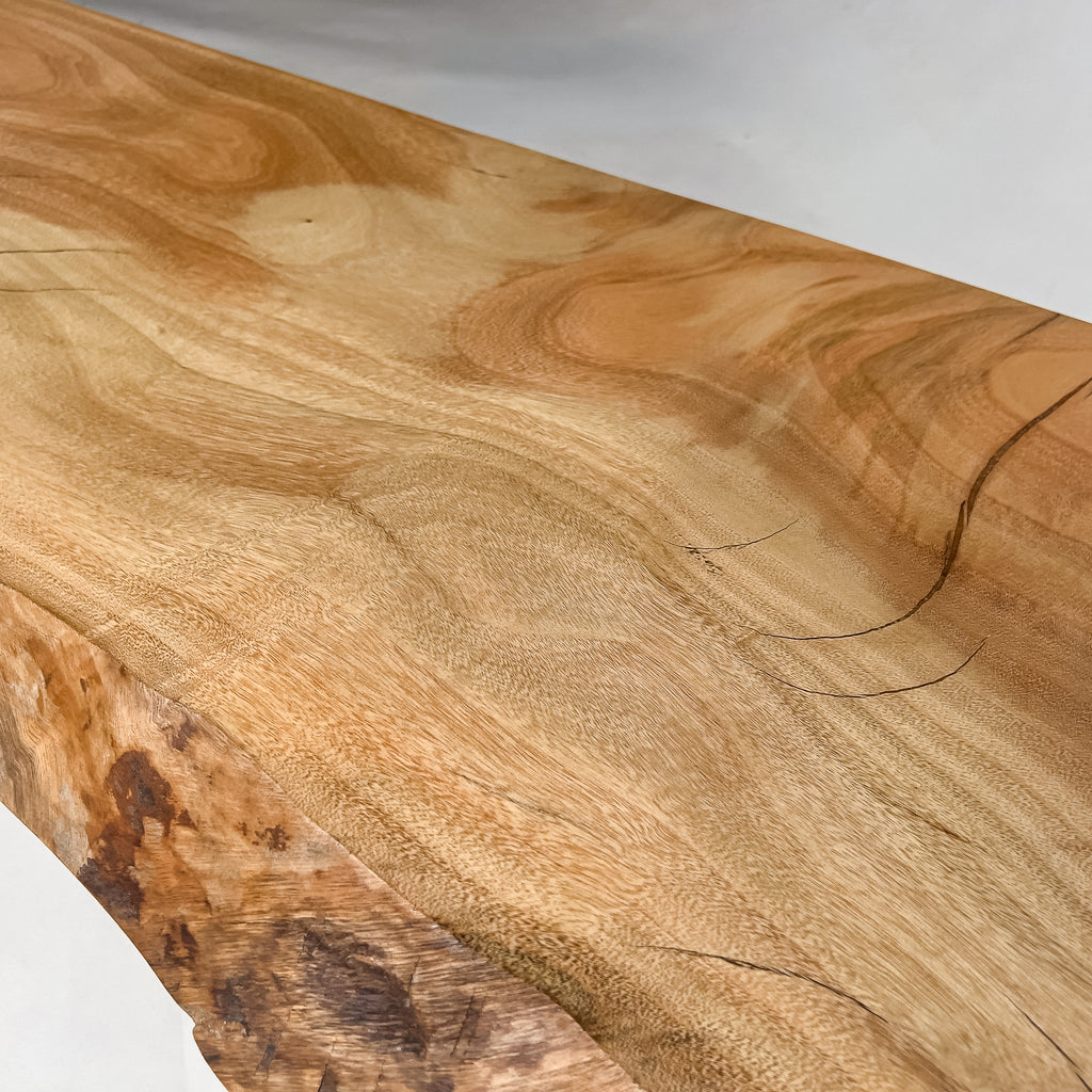 複数の板をつなぎ合わせたものとは異なり、途切れることなく続く杢目は自然の美しさをそのまま映し出します。
