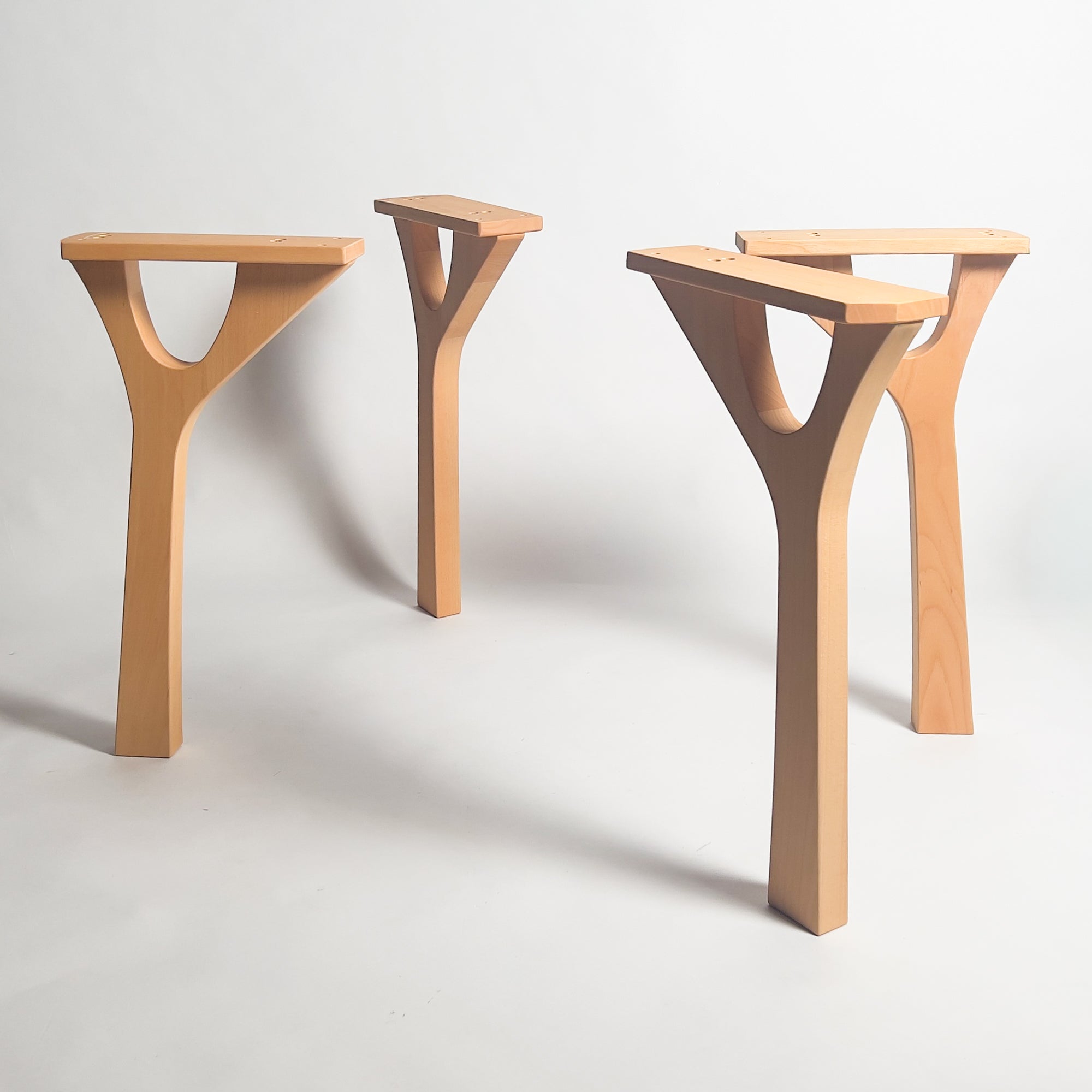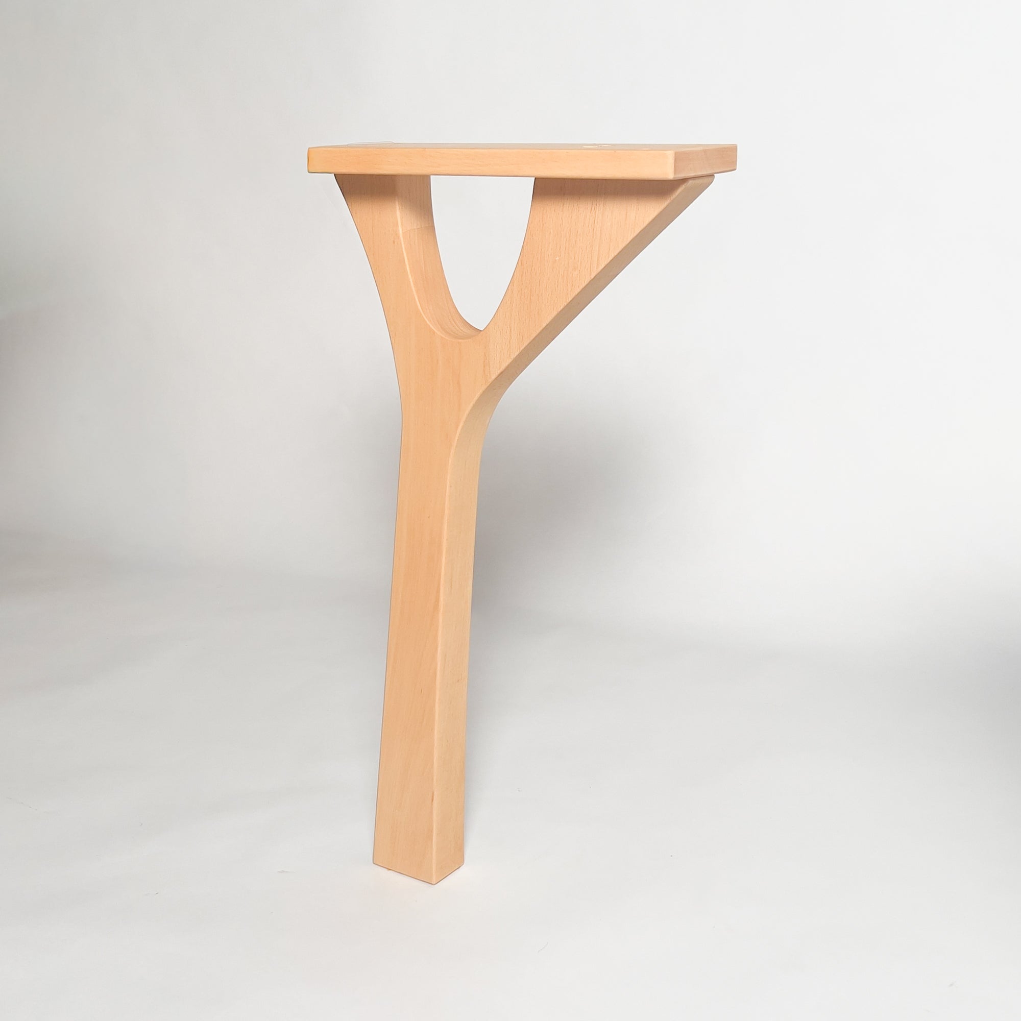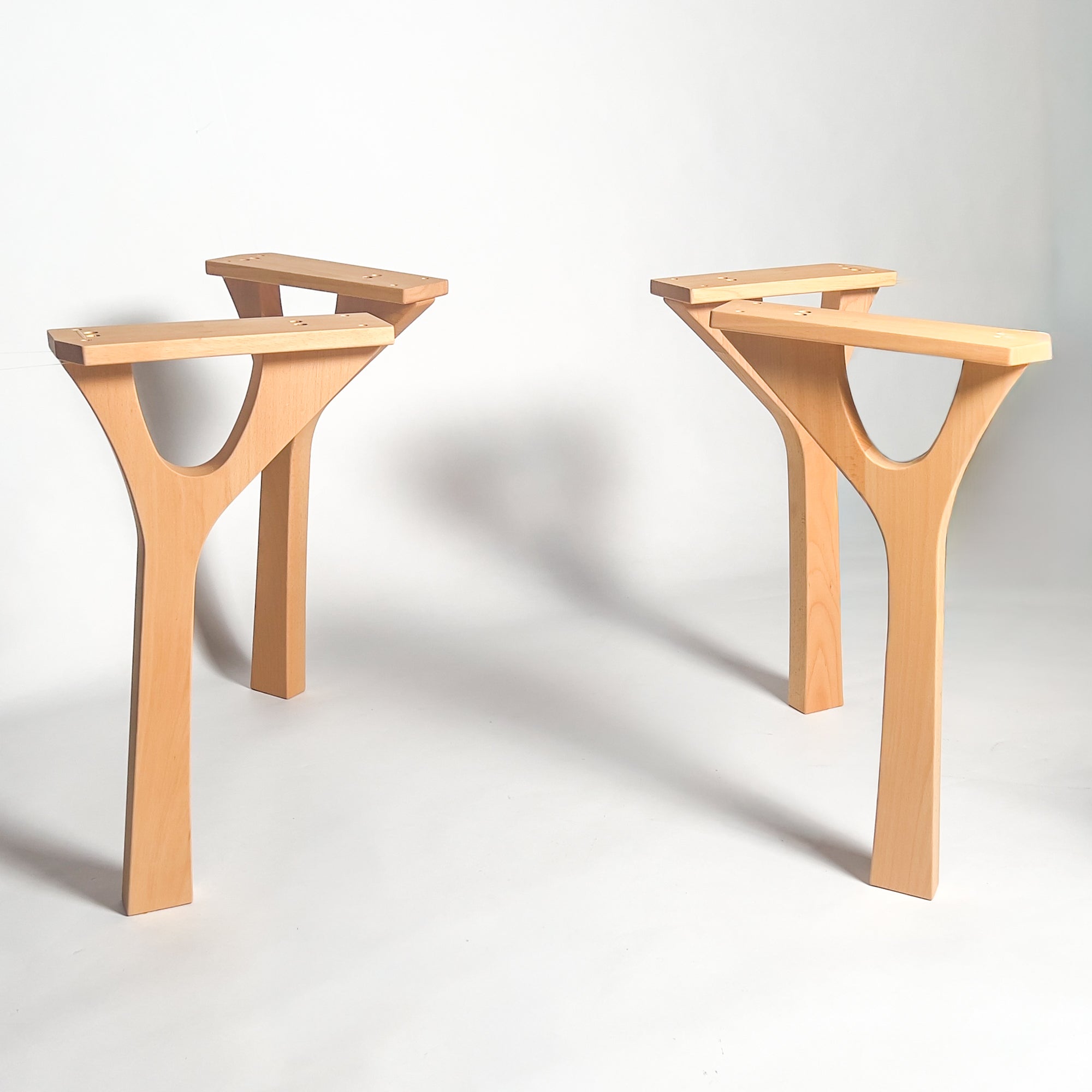 Y字脚は、力強さと軽やかさをあわせ持つデザイン。一本の線が空へと伸びるような造形が、一枚板の迫力をしっかりと支えながら、全体に軽やかな抜け感を生み出します。