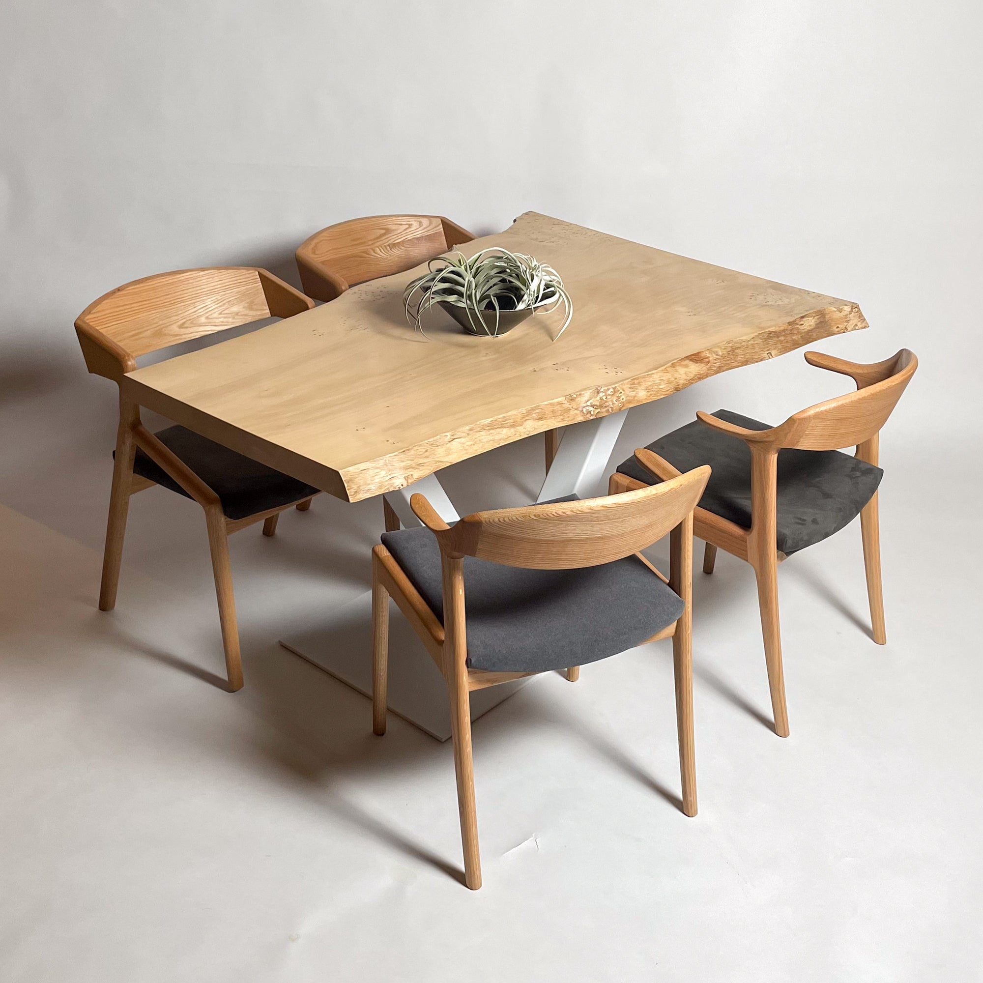 その最大の特徴は、どの方向からでも自然に着席できる快適性。脚の干渉を抑えた設計は、使う人に自由で心地よい空間を提供します。家族や仲間と囲む食卓では、座る位置を選ばず自然に集える安心感が広がります。