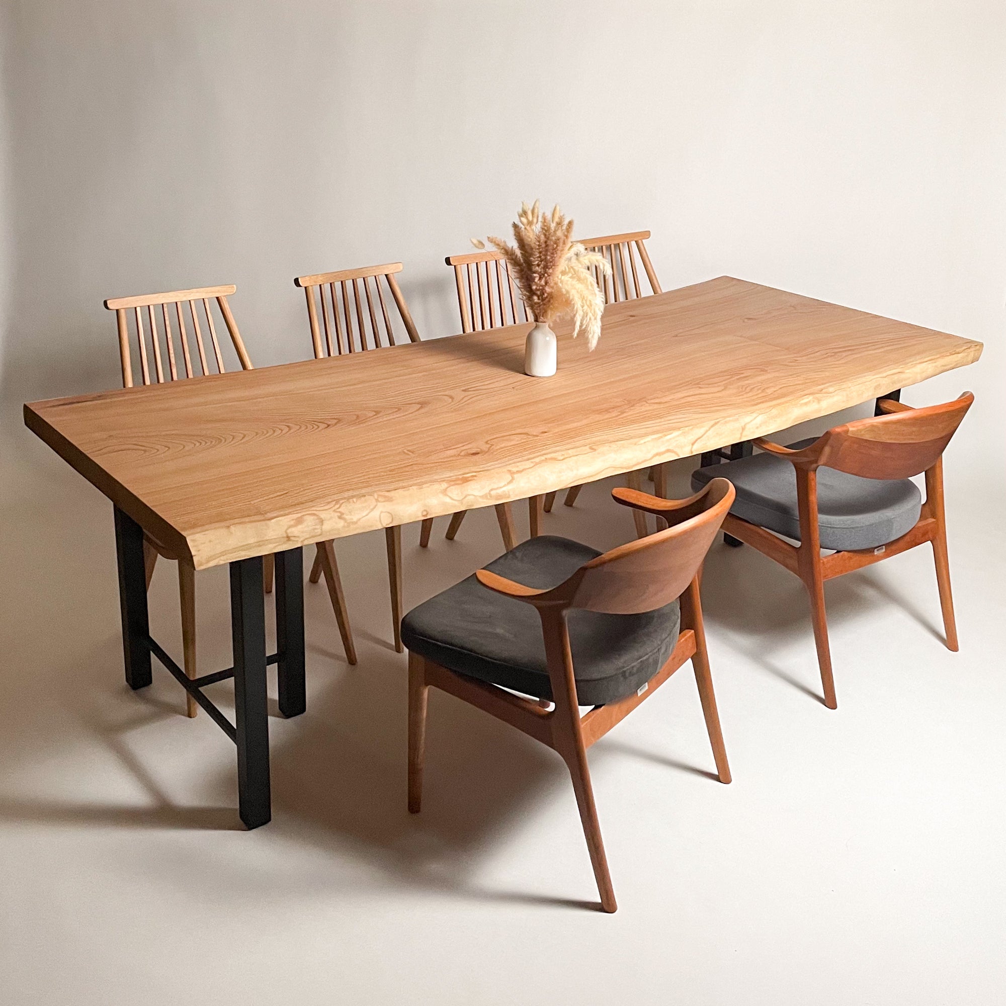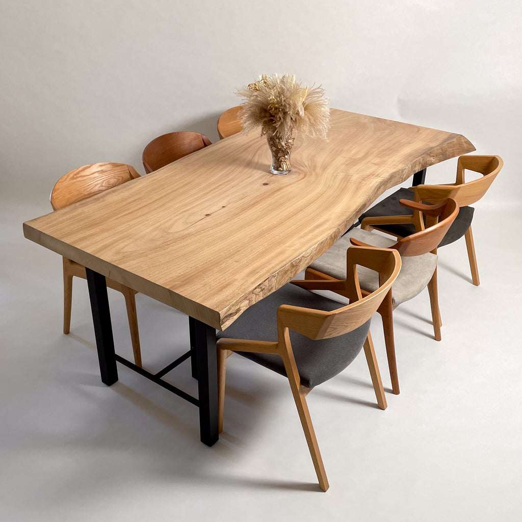 モダンやインダストリアルはもちろん、ナチュラルな空間にも合わせやすいシンプルさが魅力。椅子の出し入れがしやすい開放的なデザインは、日々の食卓を快適に保ちます。控えめながら確かな存在感を放ち、暮らしに長く寄り添う一本です。