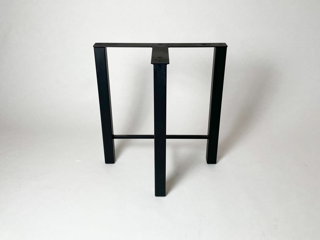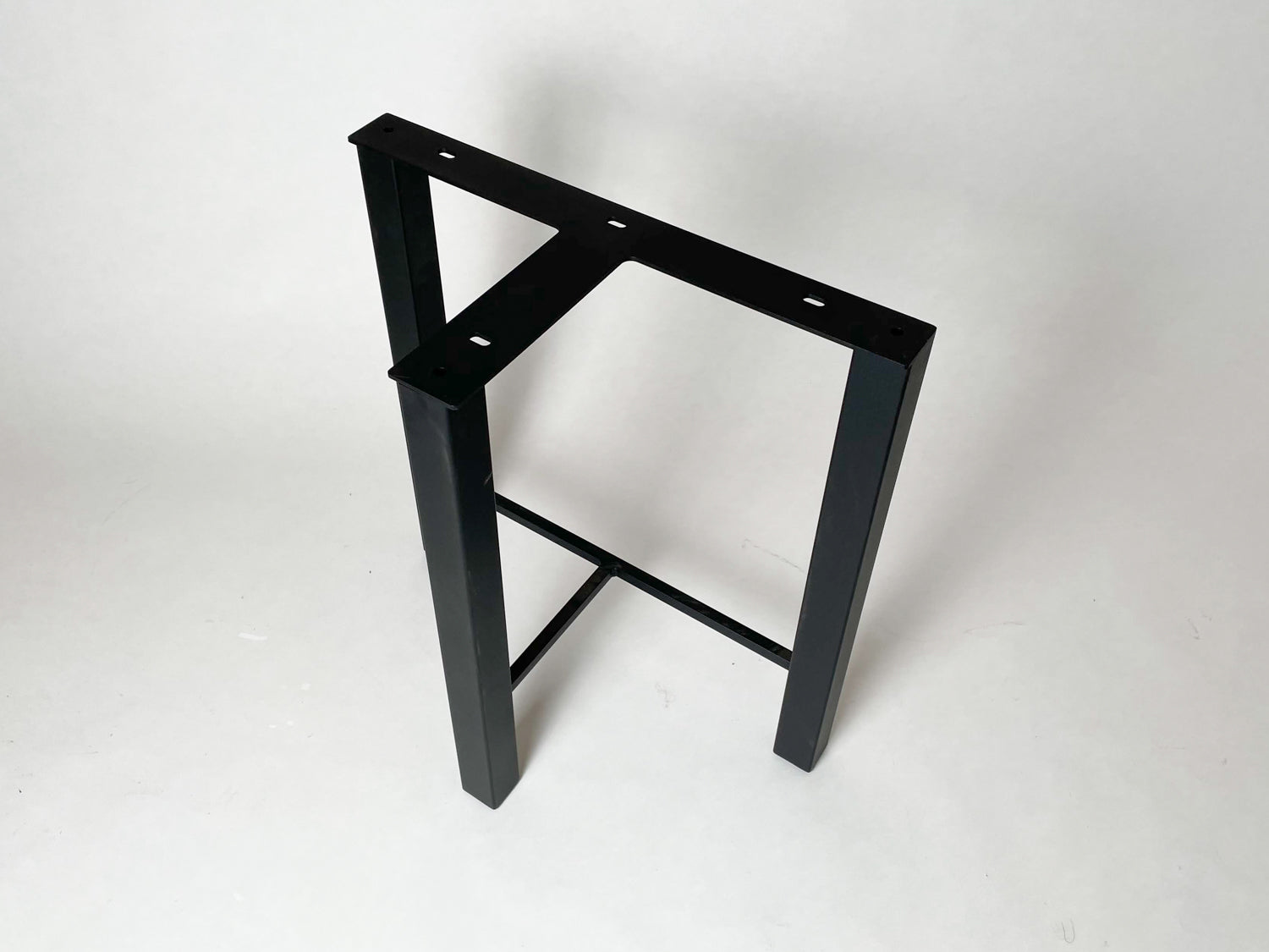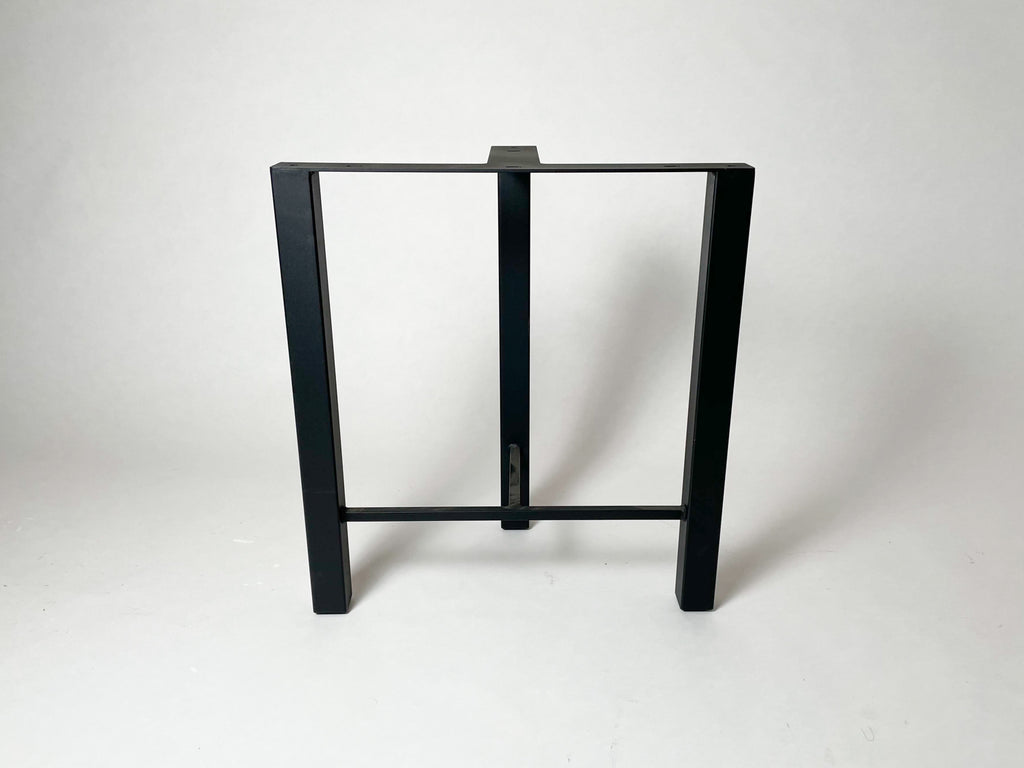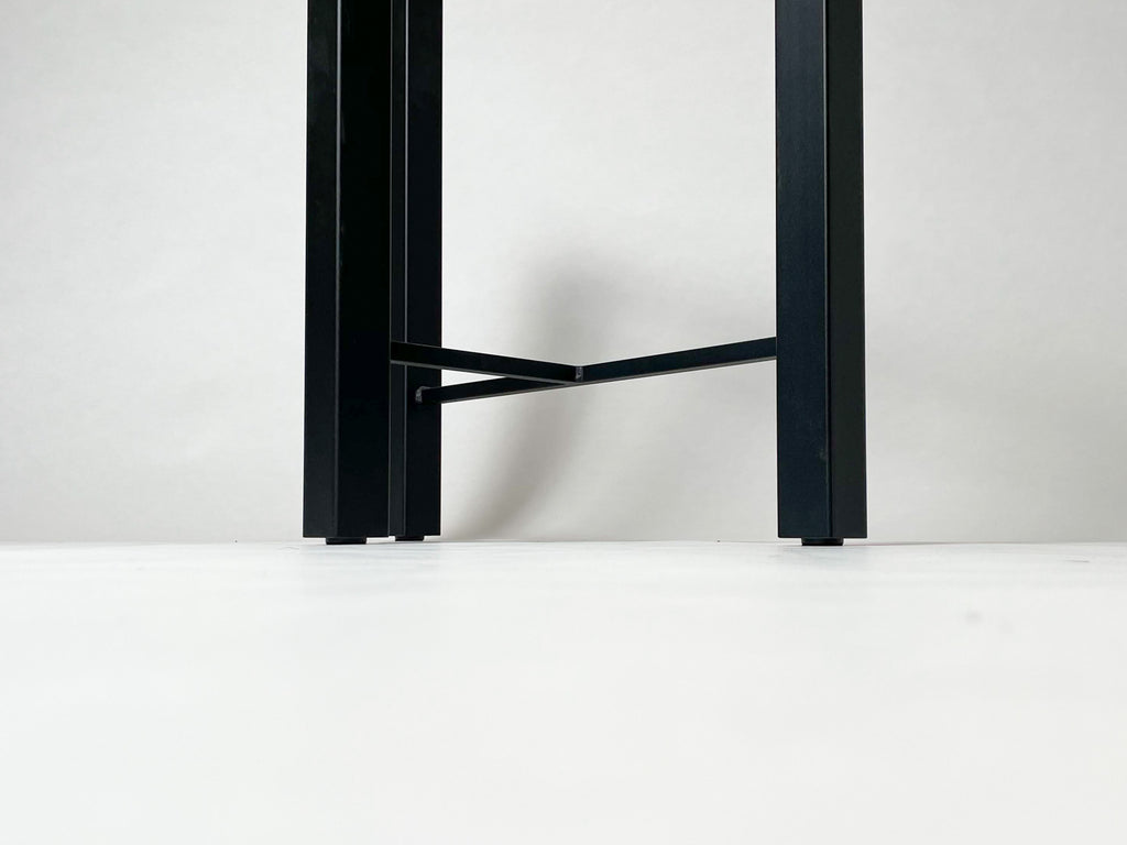 四本の脚を繋ぐ補強バーは、視覚的な軽やかさを損なわずに、揺るぎない安定感を確保。重厚な無垢天板をしっかりと支えながら、全体をスッキリと見せる構造です。