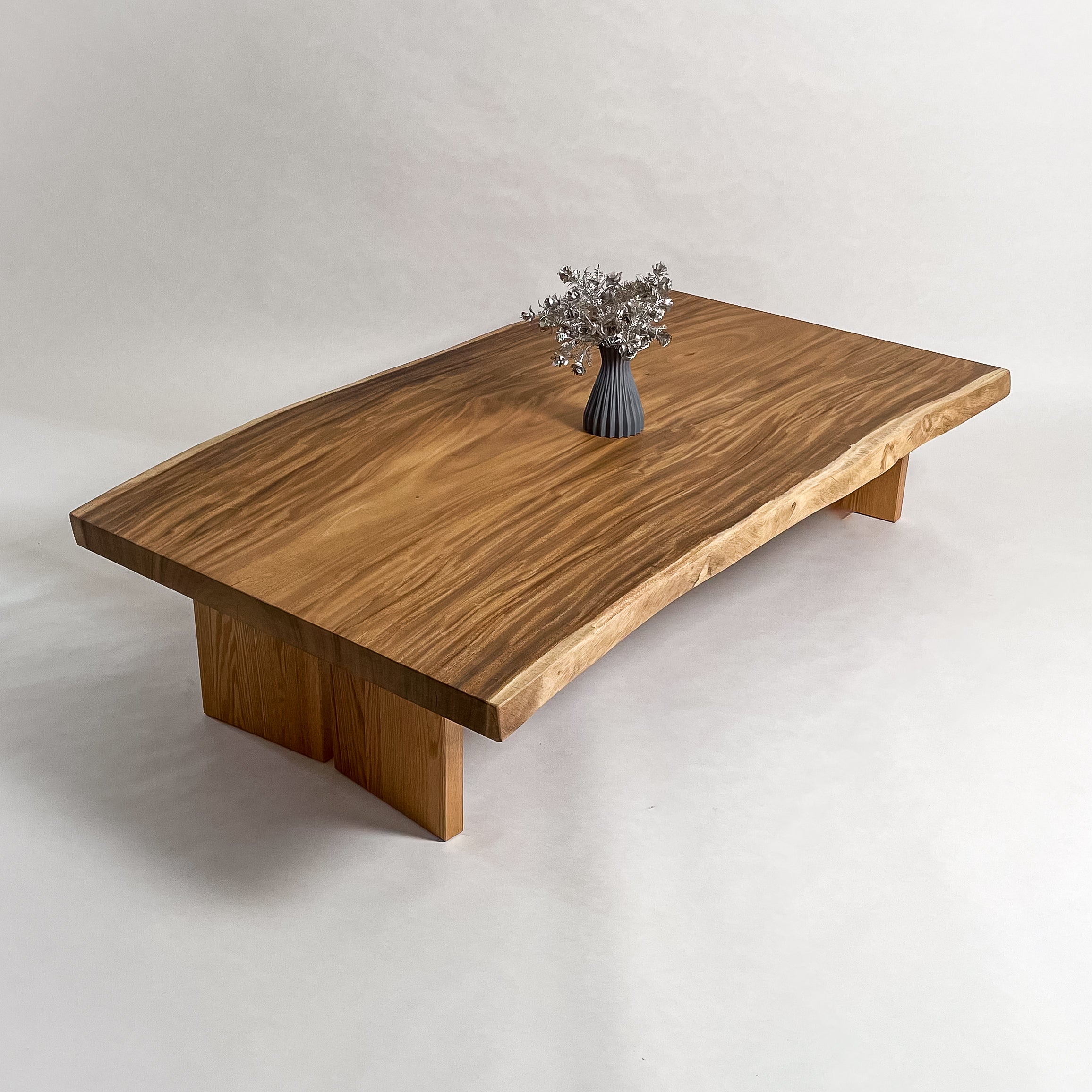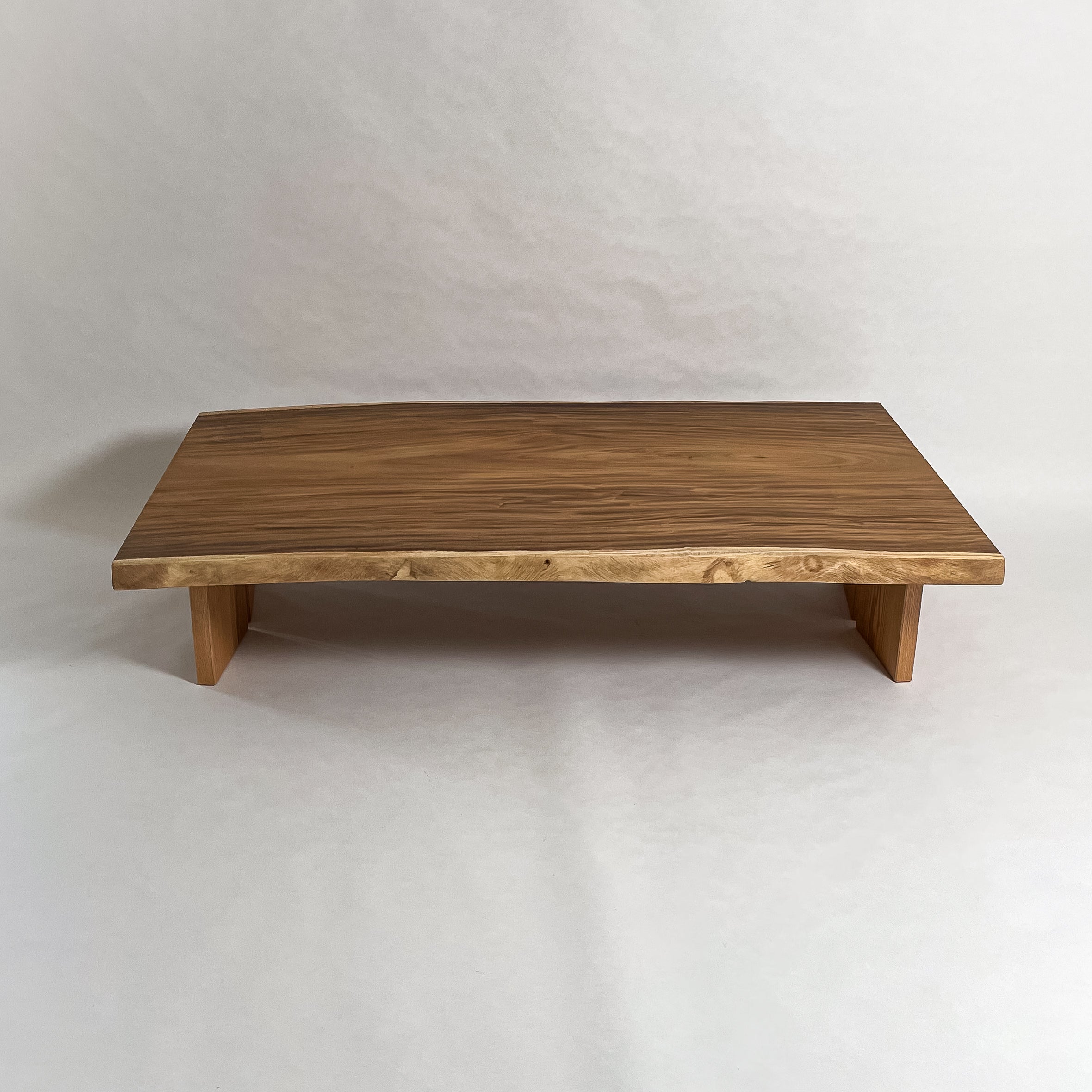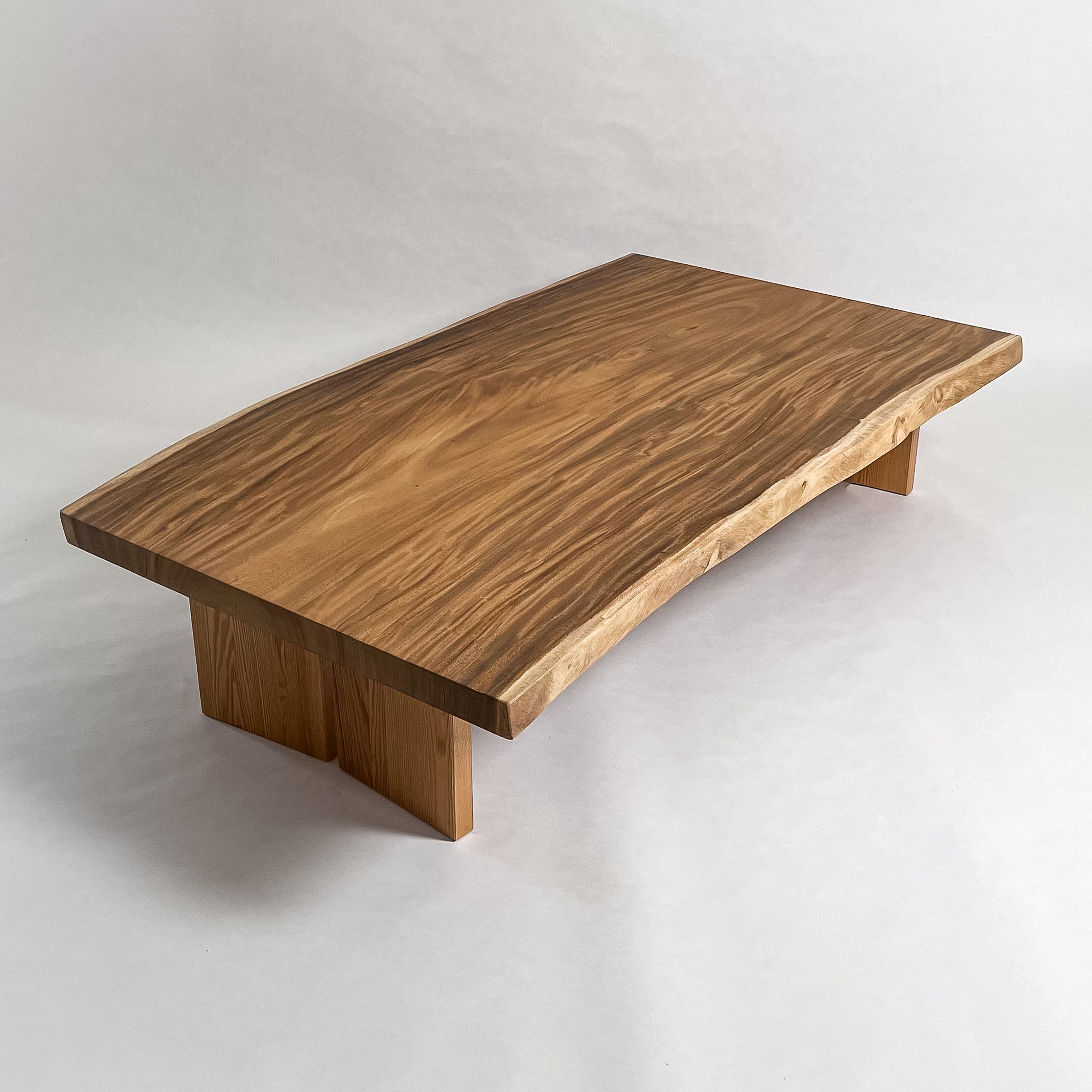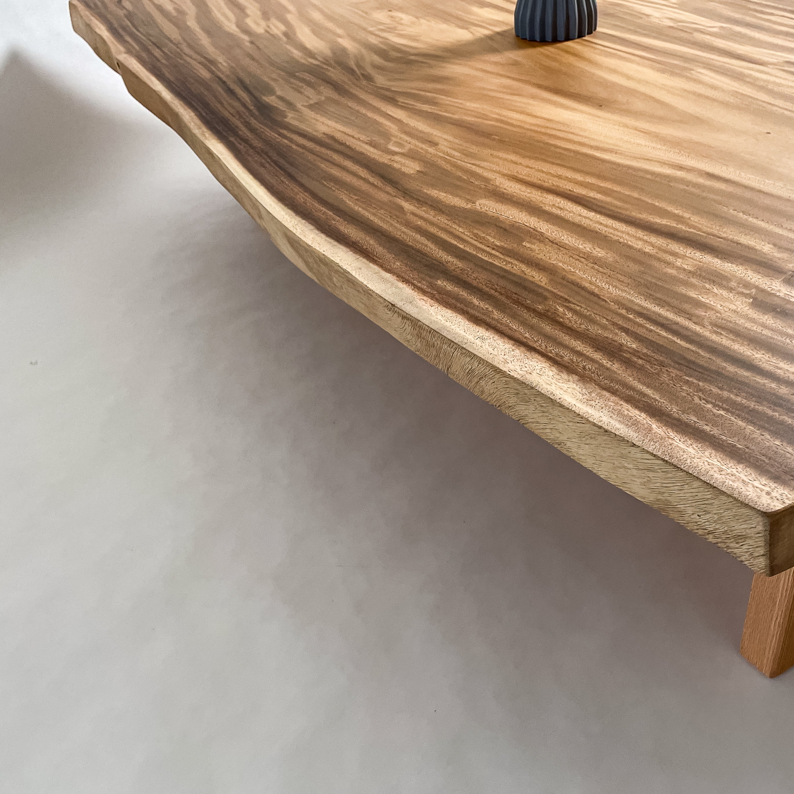 南国の陽光に包まれ育ったモンキーポッド。時を重ねて刻まれた年輪が波のような立体杢を描きます。光の角度で表情を変え、温もりと奥行きを感じさせる上質な一枚板。自然の息吹を宿す存在です。