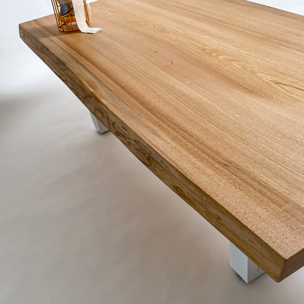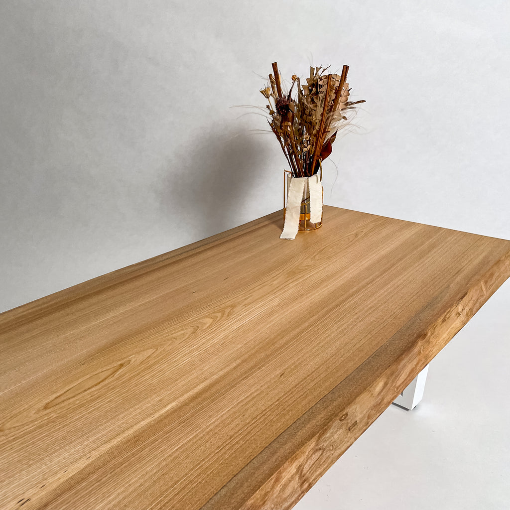複数の板をつなぎ合わせたものとは異なり、途切れることなく続く杢目は自然の美しさをそのまま映し出します。