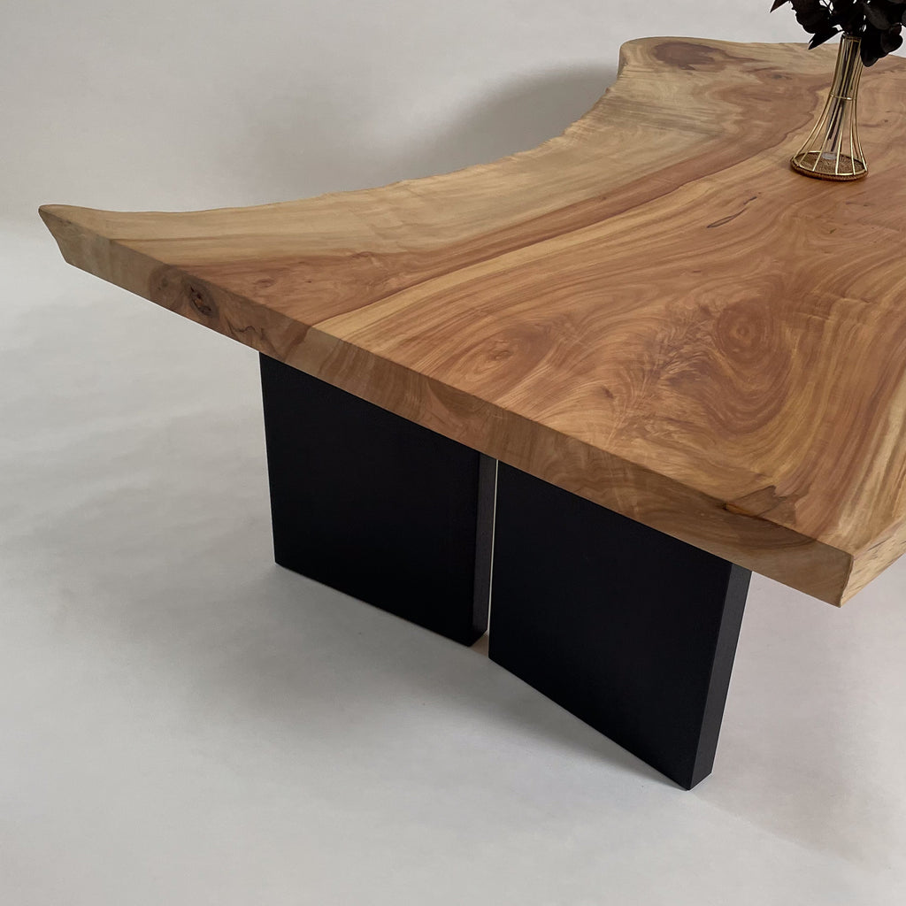 | 時代を超えて受け継がれる機能性と、現代の暮らしに寄り添うデザイン性を兼ね備えた一枚板家具の製作を手がける。 | 現代の空間に映えるモダンなデザイン性を取り入れながら、一枚板の持つ素材感と存在感を活かした加工・製作を行う。 | |