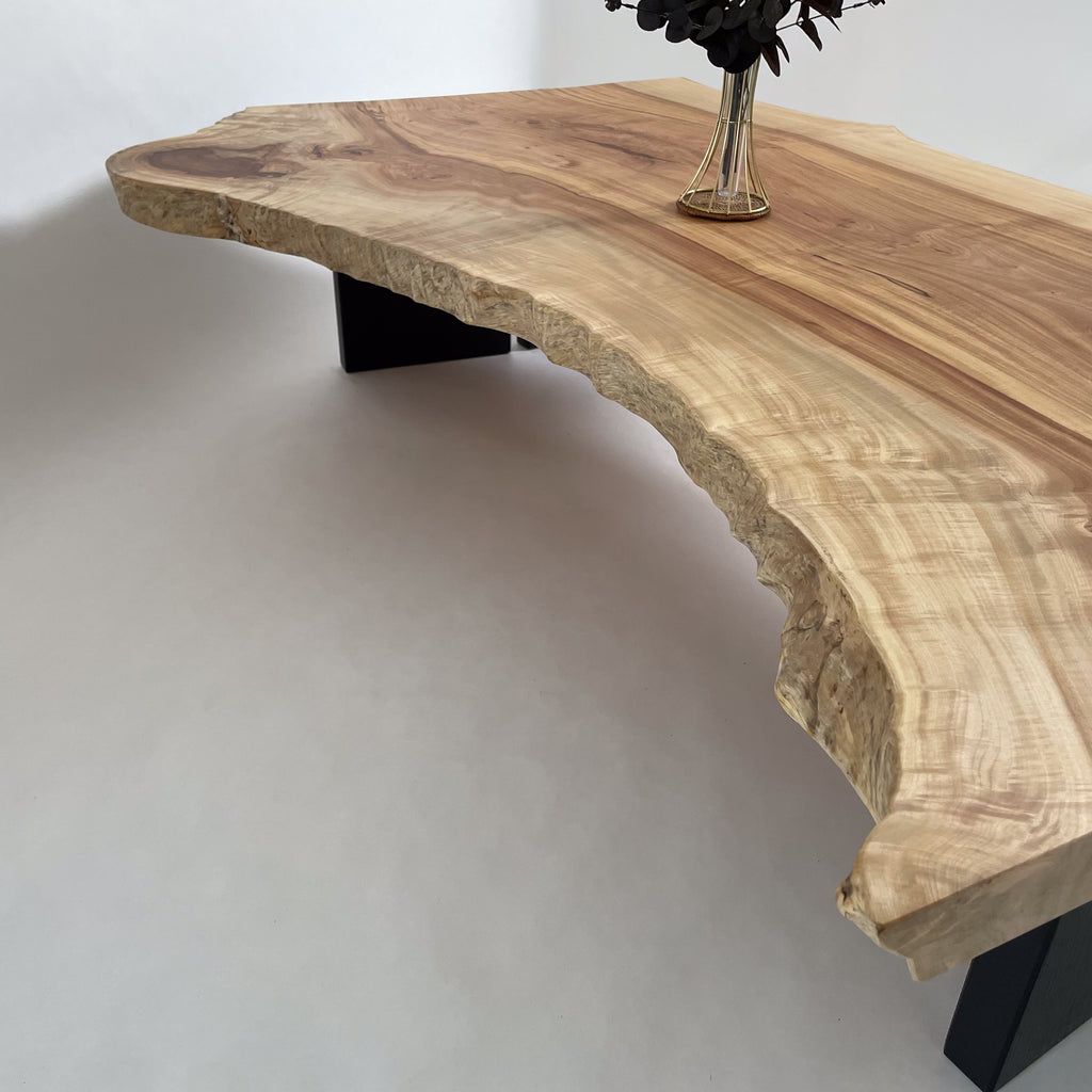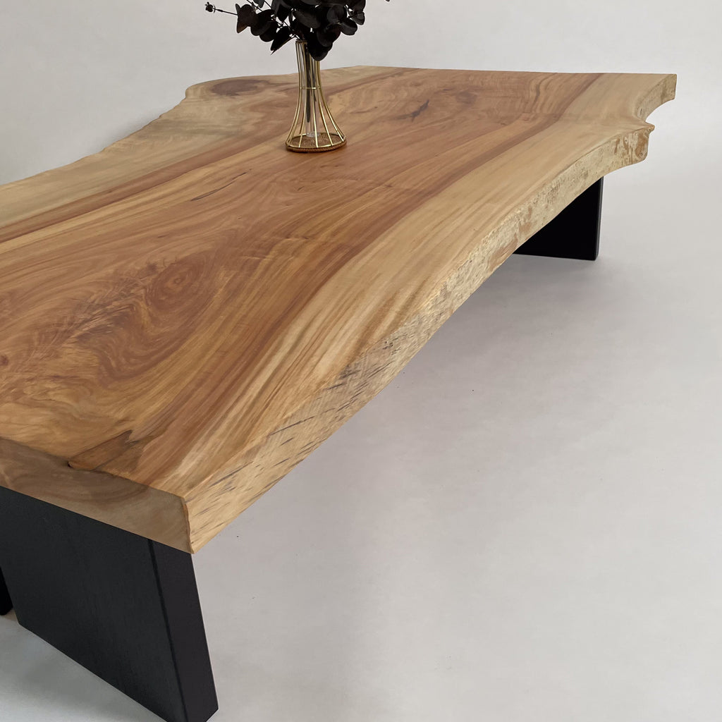 複数の板をつなぎ合わせたものとは異なり、途切れることなく続く杢目は自然の美しさをそのまま映し出します。