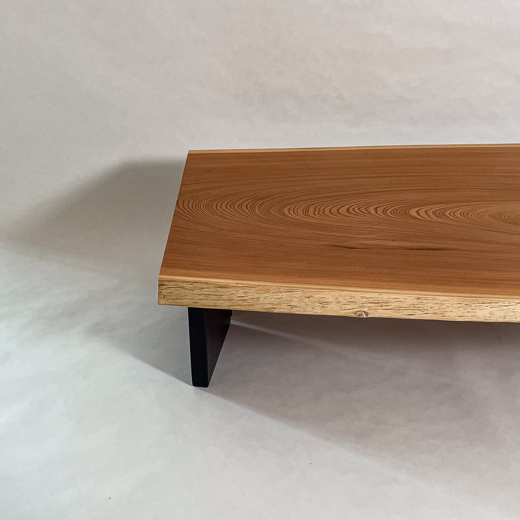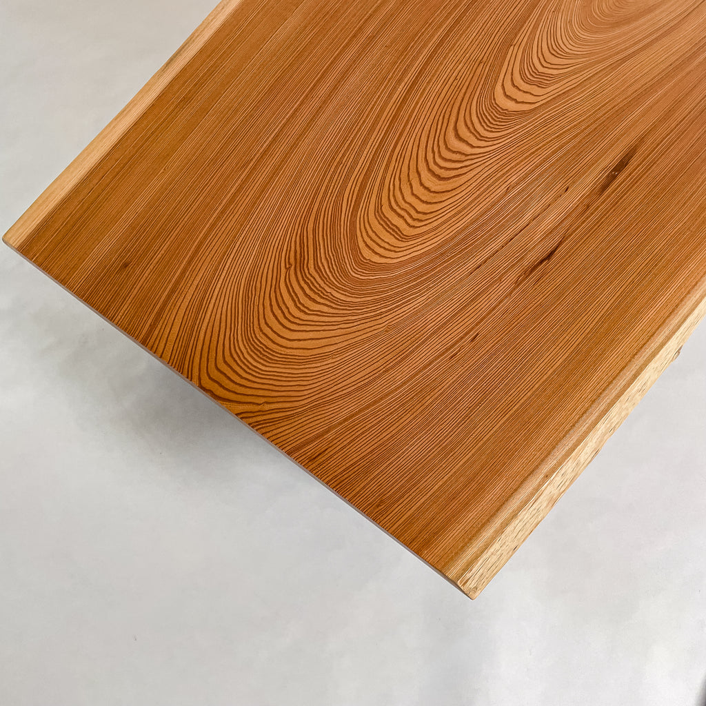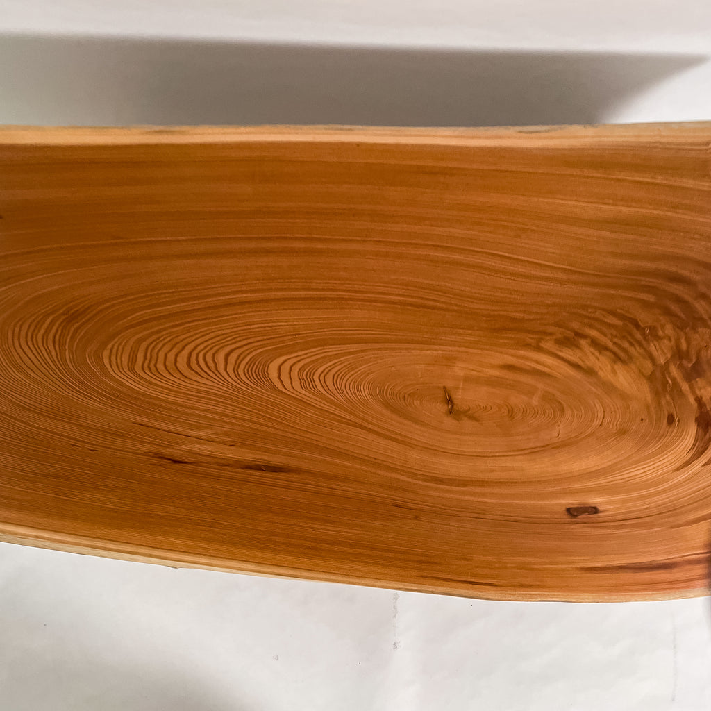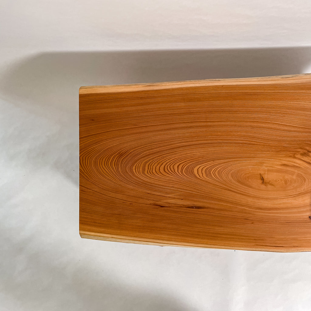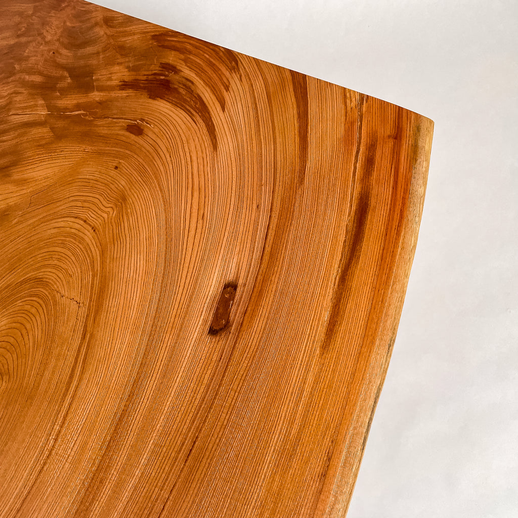 仕上がりの質感や印象にまで細やかに気を配り、使われる空間や暮らしを見据えた、やわらかな佇まいへと丁寧に仕上げる。   木が持つ節や皮、杢目の表情に寄り添い、その一つひとつを活かすことで、唯一無二の素材美を際立たせた一枚板づくりを行う。