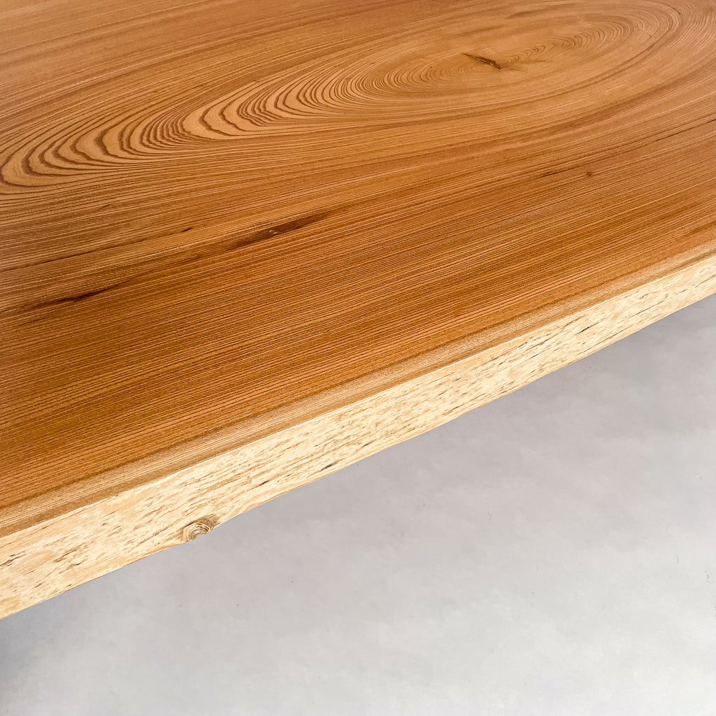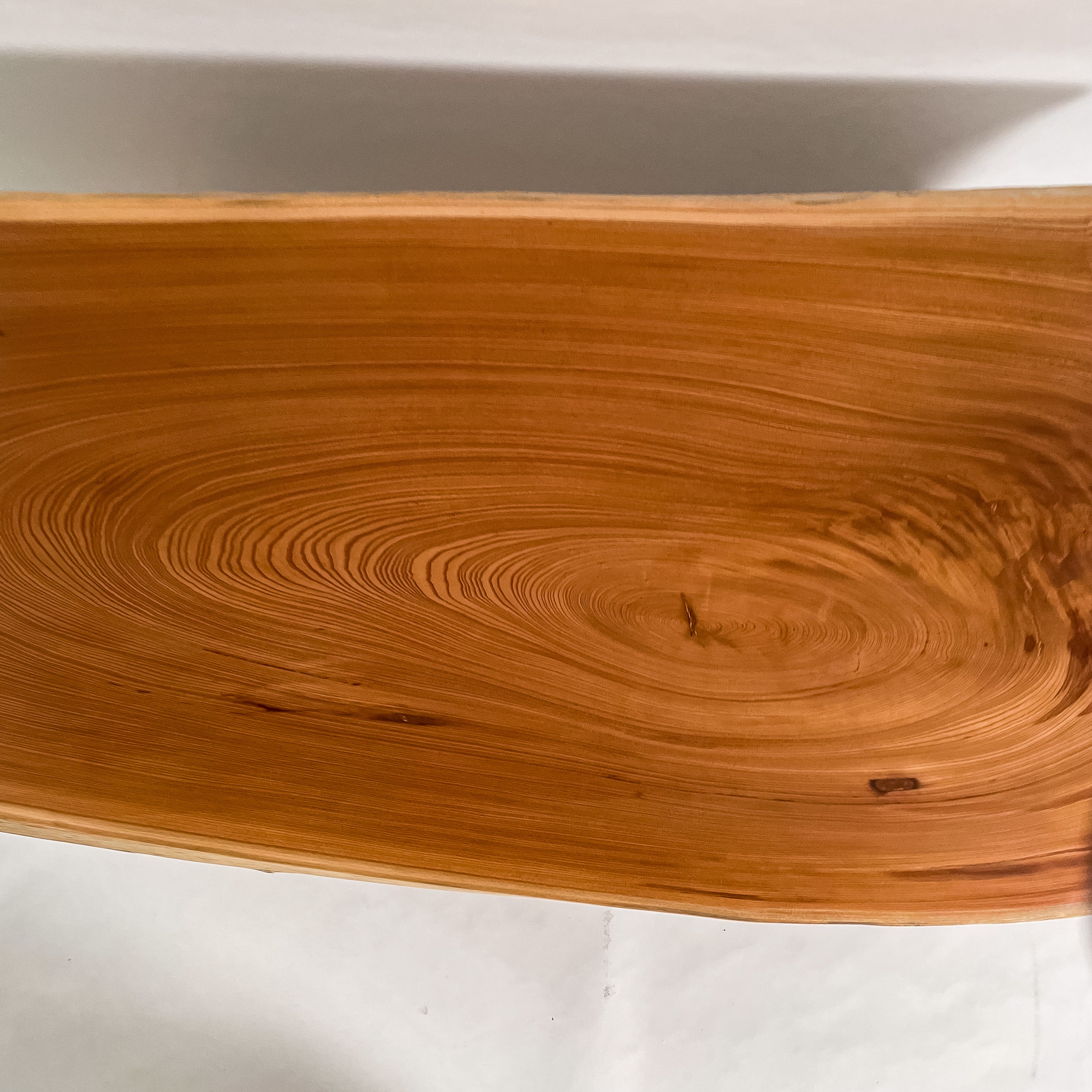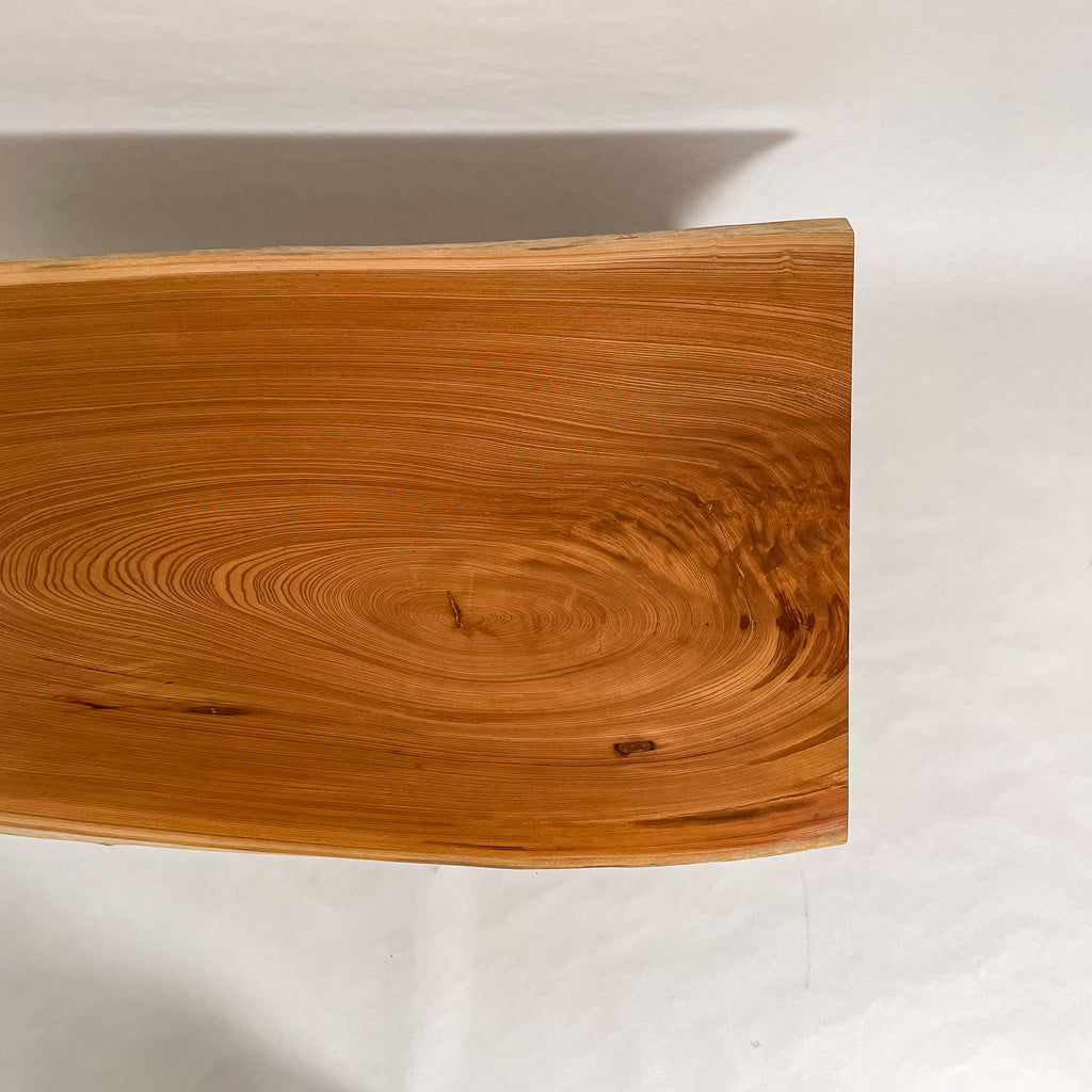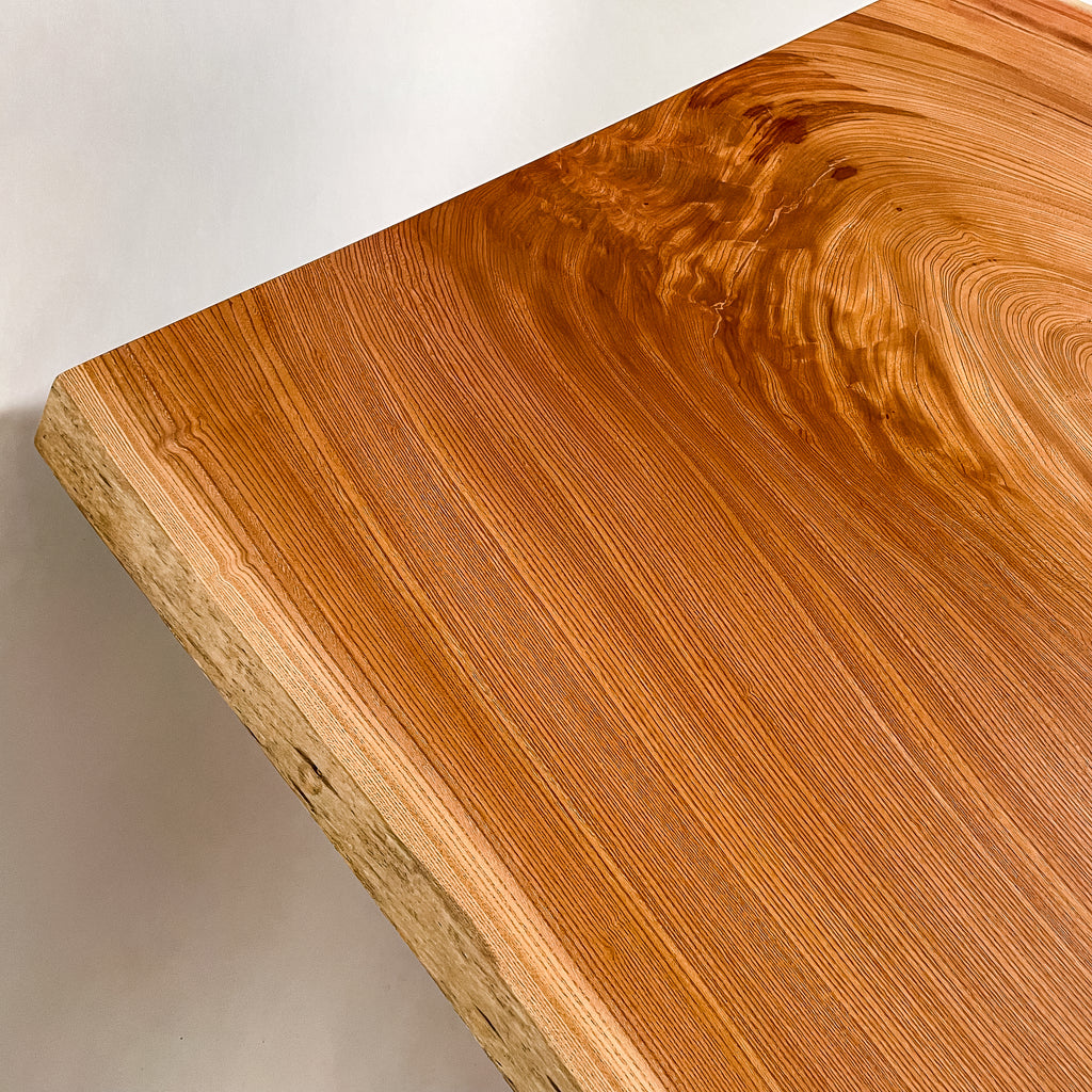 仕上がりの質感や印象にまで細やかに気を配り、使われる空間や暮らしを見据えた、やわらかな佇まいへと丁寧に仕上げる。   木が持つ節や皮、杢目の表情に寄り添い、その一つひとつを活かすことで、唯一無二の素材美を際立たせた一枚板づくりを行う。
