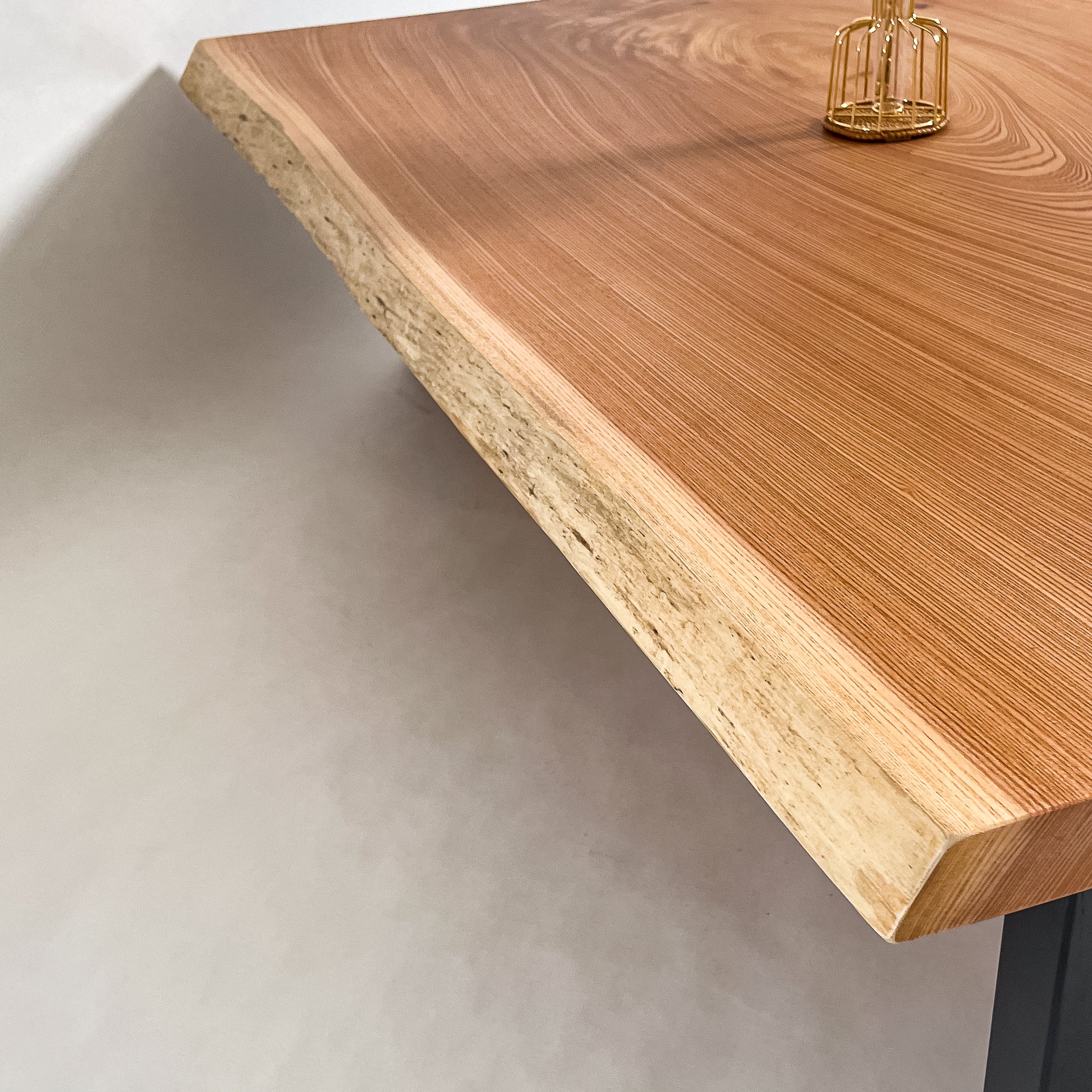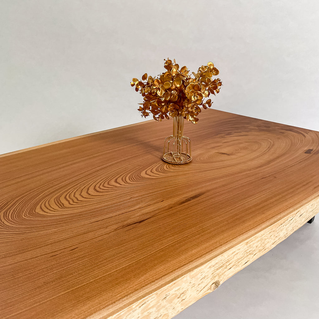複数の板をつなぎ合わせたものとは異なり、途切れることなく続く杢目は自然の美しさをそのまま映し出します。