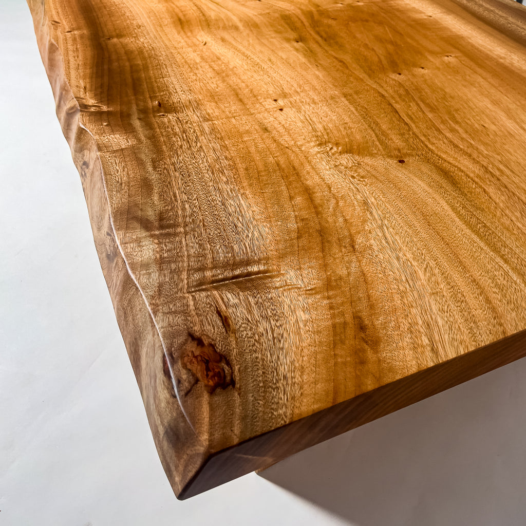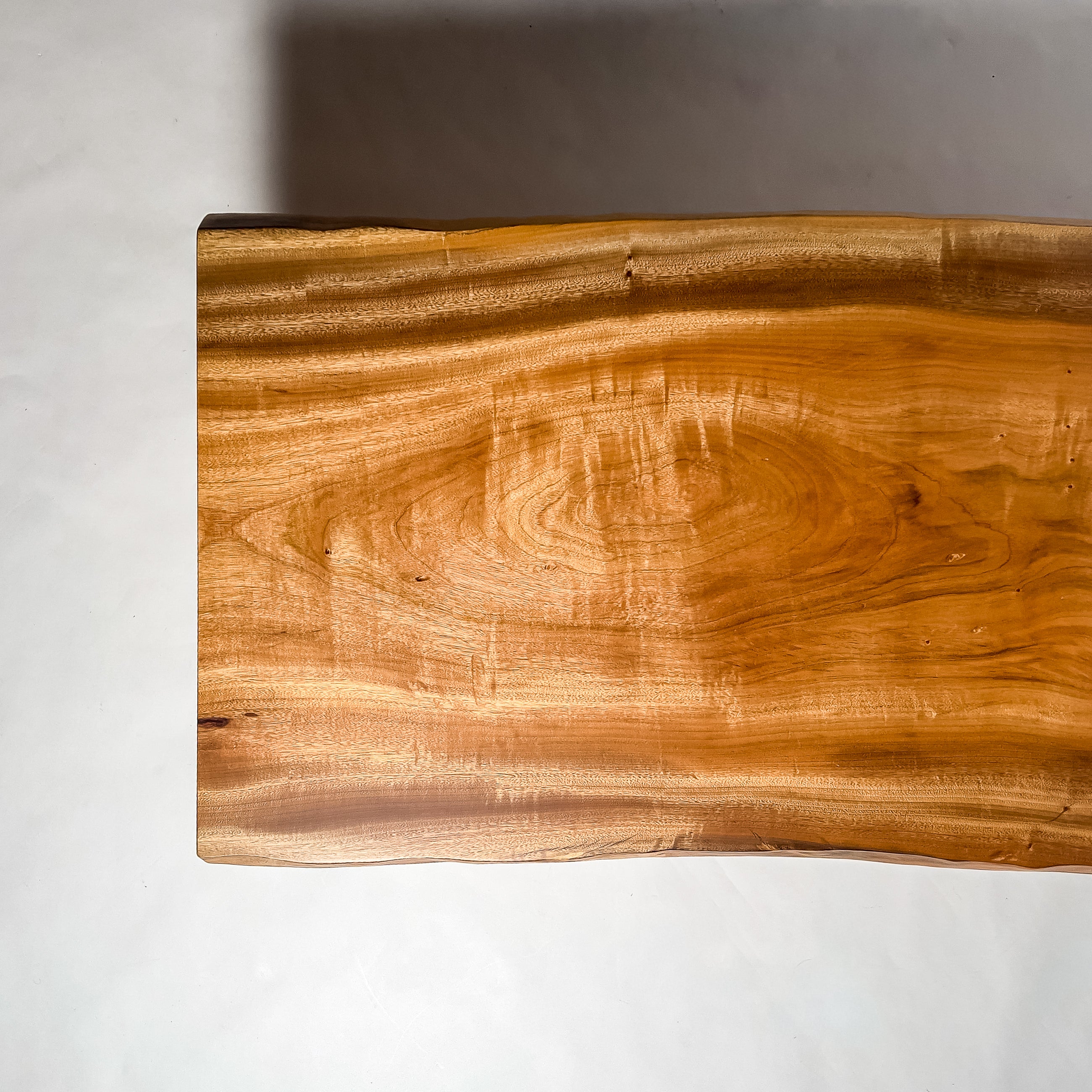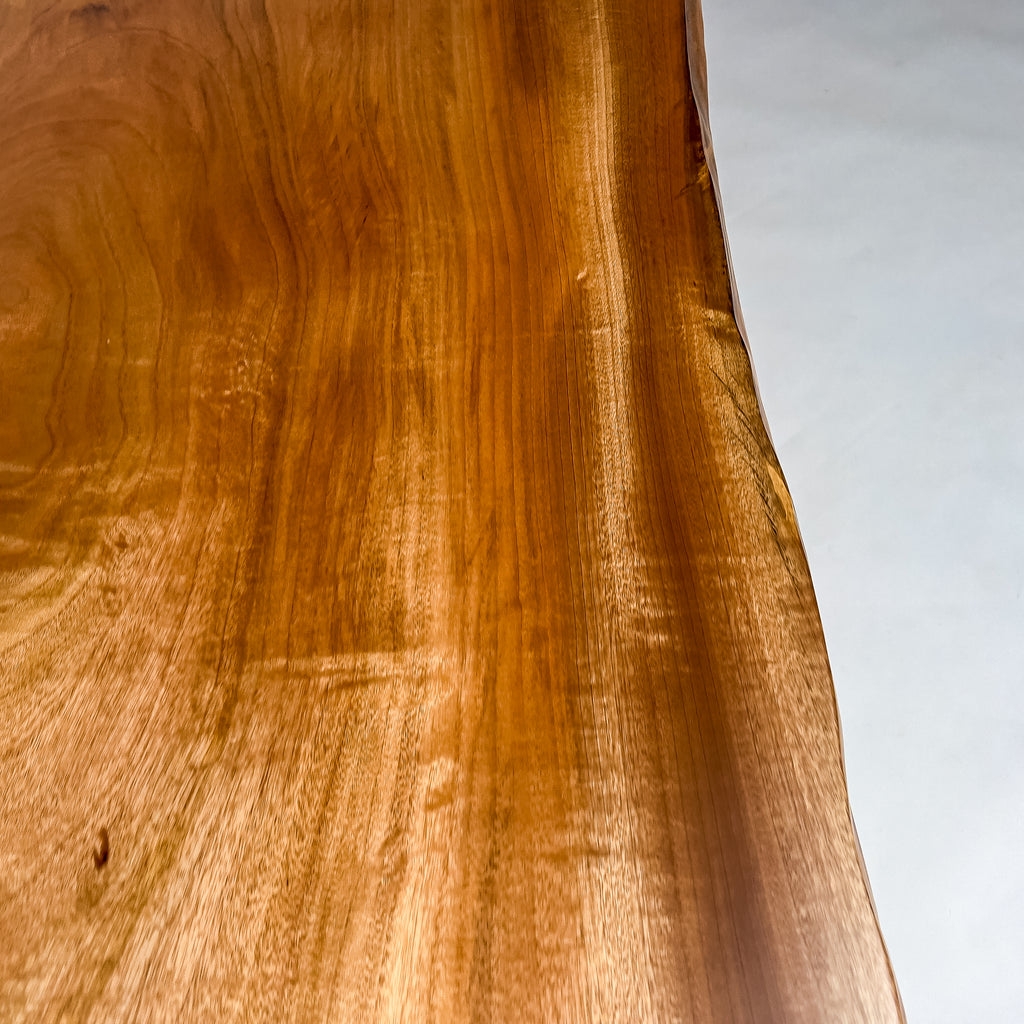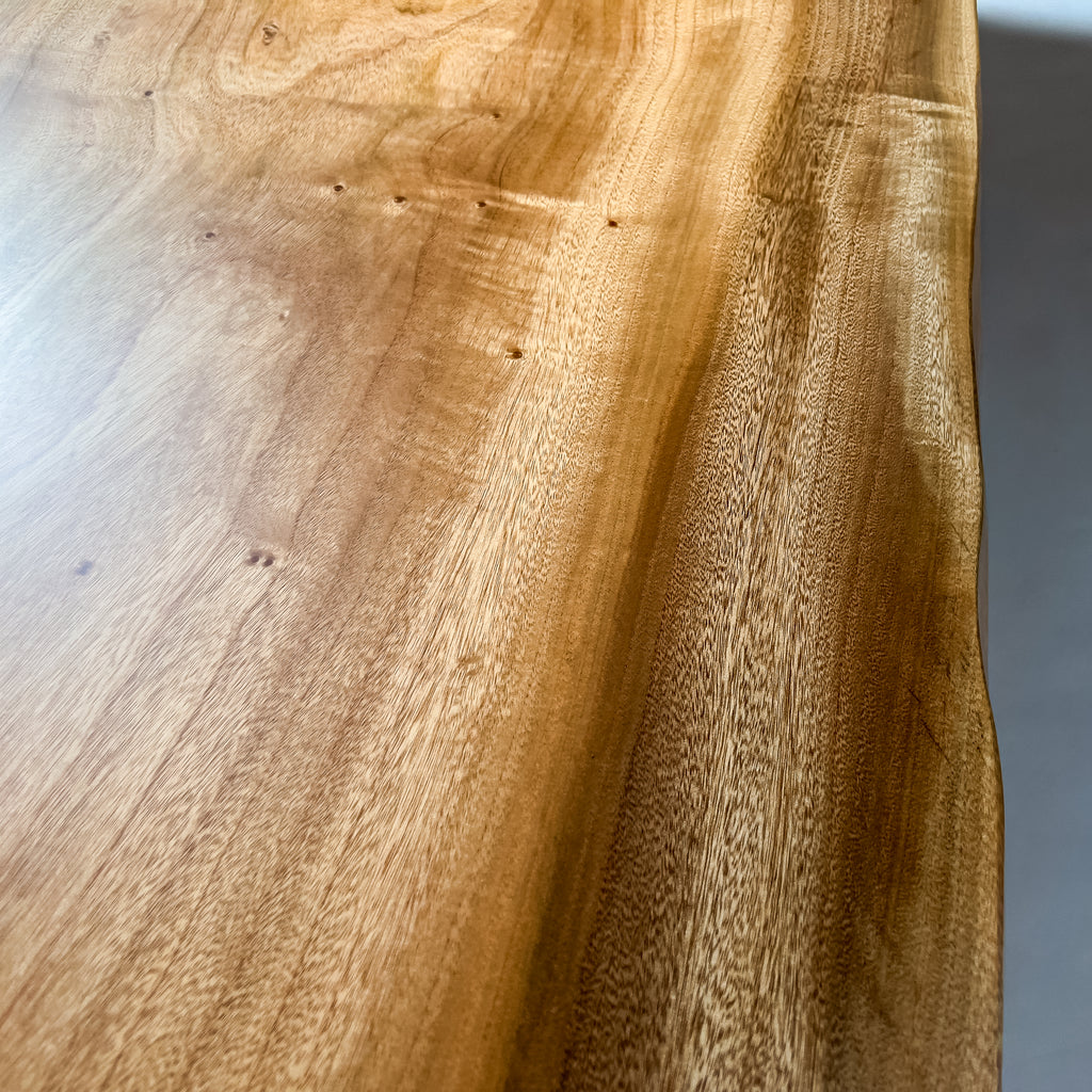 複数の板をつなぎ合わせたものとは異なり、途切れることなく続く杢目は自然の美しさをそのまま映し出します。