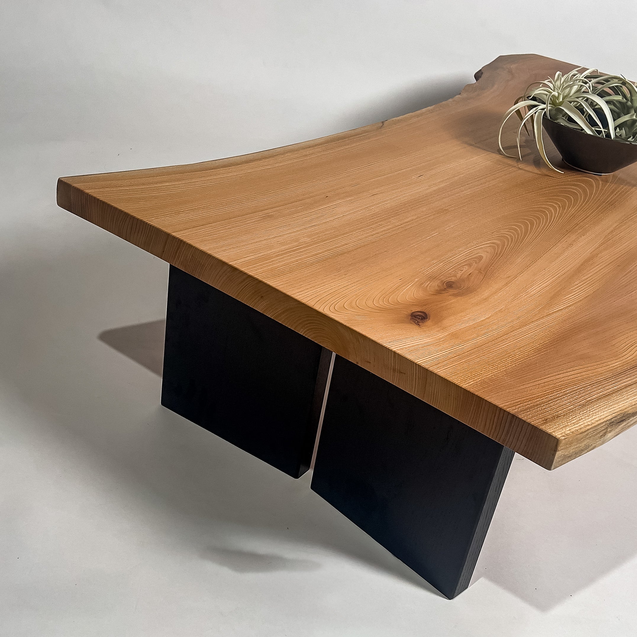 | 時代を超えて受け継がれる機能性と、現代の暮らしに寄り添うデザイン性を兼ね備えた一枚板家具の製作を手がける。 | 現代の空間に映えるモダンなデザイン性を取り入れながら、一枚板の持つ素材感と存在感を活かした加工・製作を行う。 | |