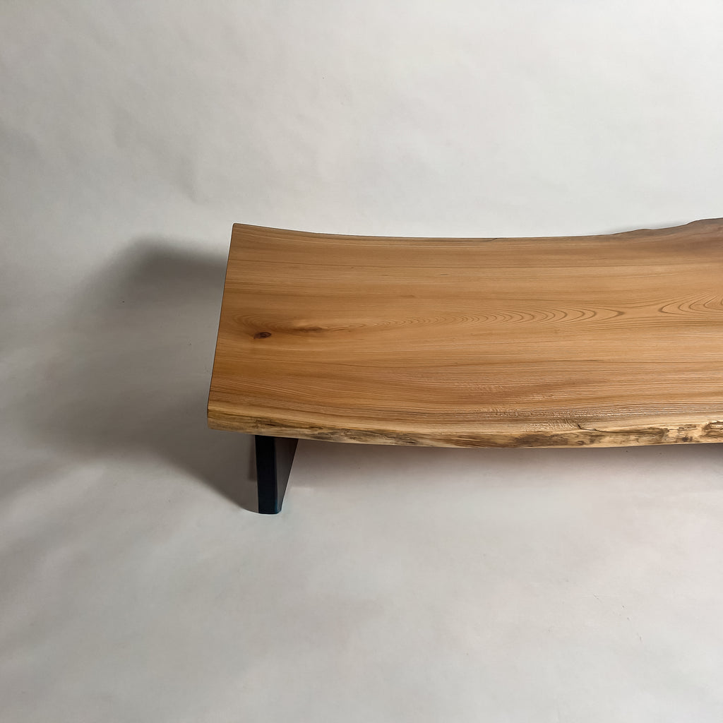 上品で落ち着きのある最高品質の「マットウレタン塗装」。鬼童銘木が磨き上げた技術により、すべての一枚板に独自の特殊塗装を施しています。