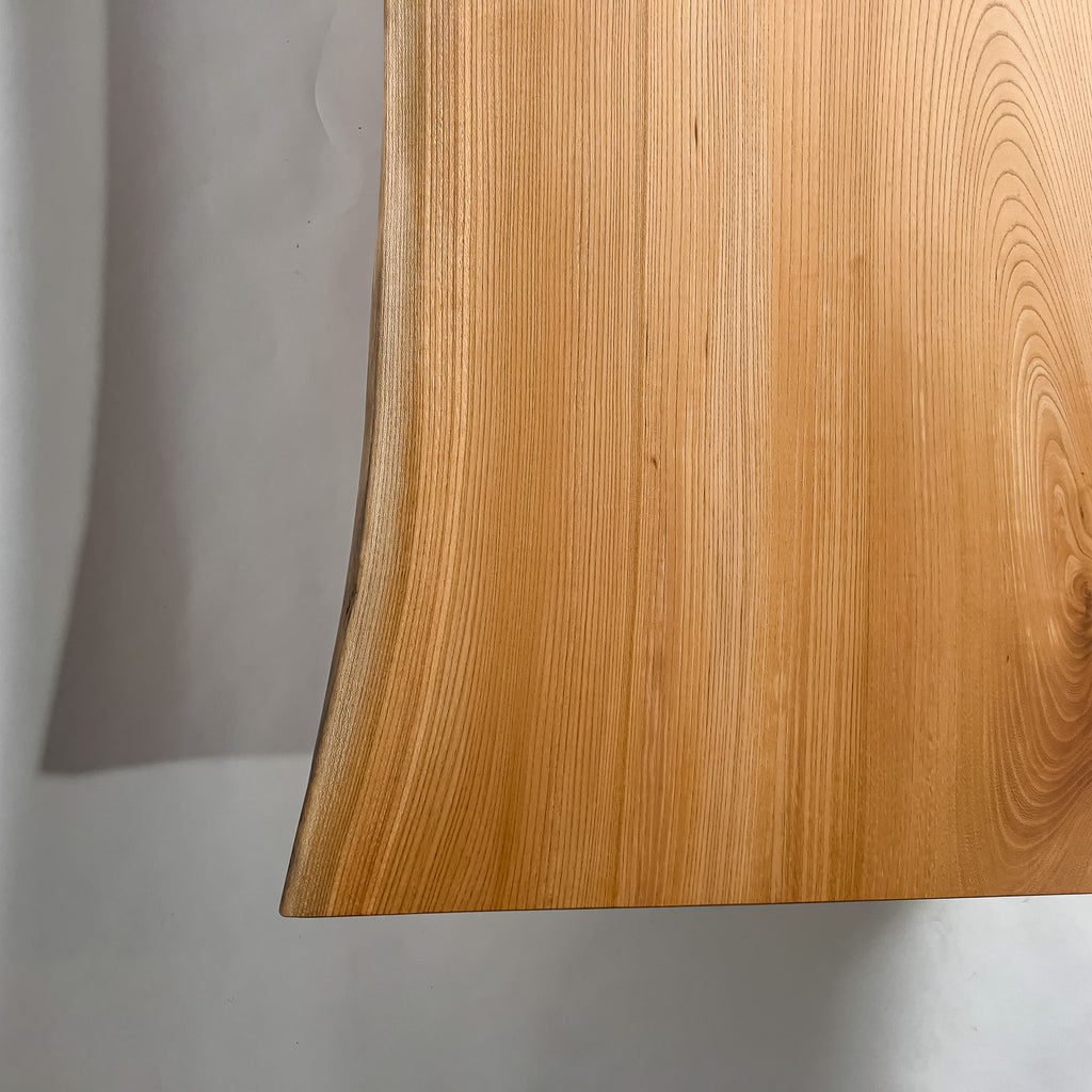 山の厳しい季節を越えて育った欅は、緻密な年輪と流れるような板目を宿します。やわらかな木飴色の濃淡が、光を受けて穏やかに変化。生命の流れをそのまま残した仕上げ。日々の食卓に、静かな温もりと躍動感を添えます。