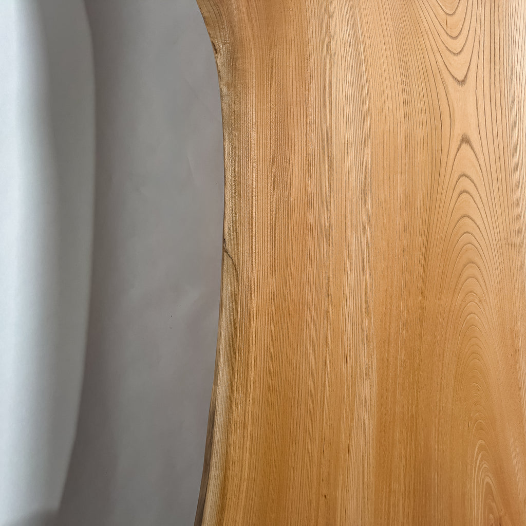 複数の板をつなぎ合わせたものとは異なり、途切れることなく続く杢目は自然の美しさをそのまま映し出します。