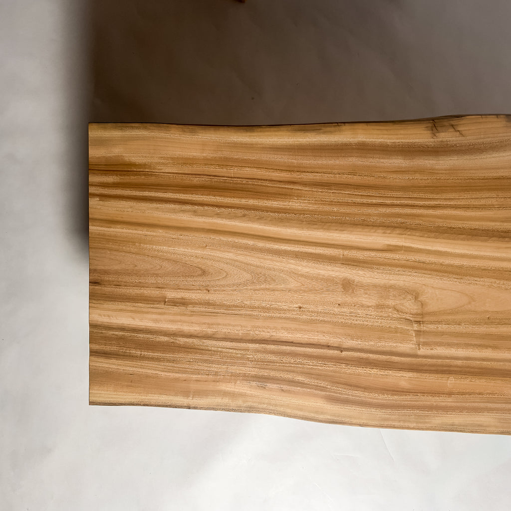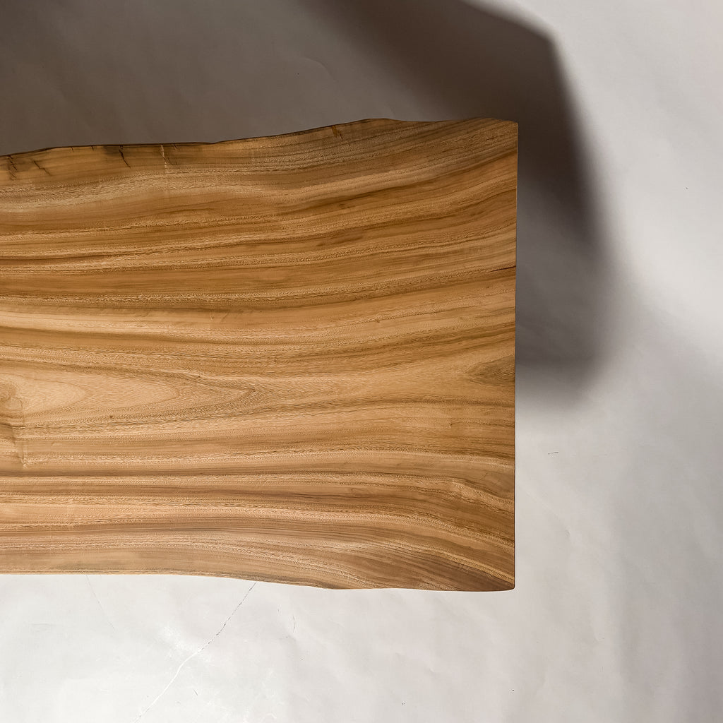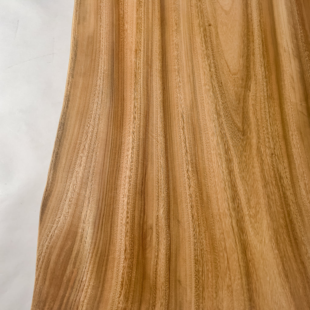 複数の板をつなぎ合わせたものとは異なり、途切れることなく続く杢目は自然の美しさをそのまま映し出します。