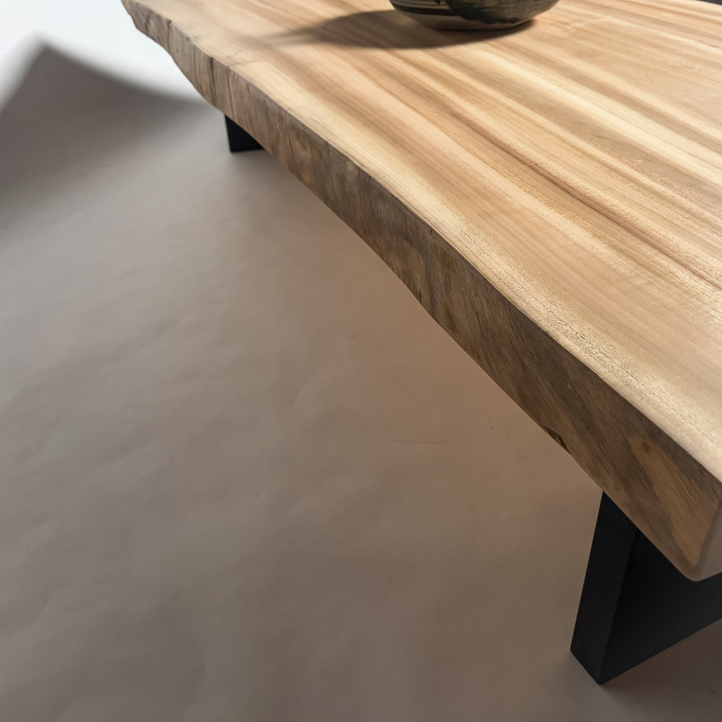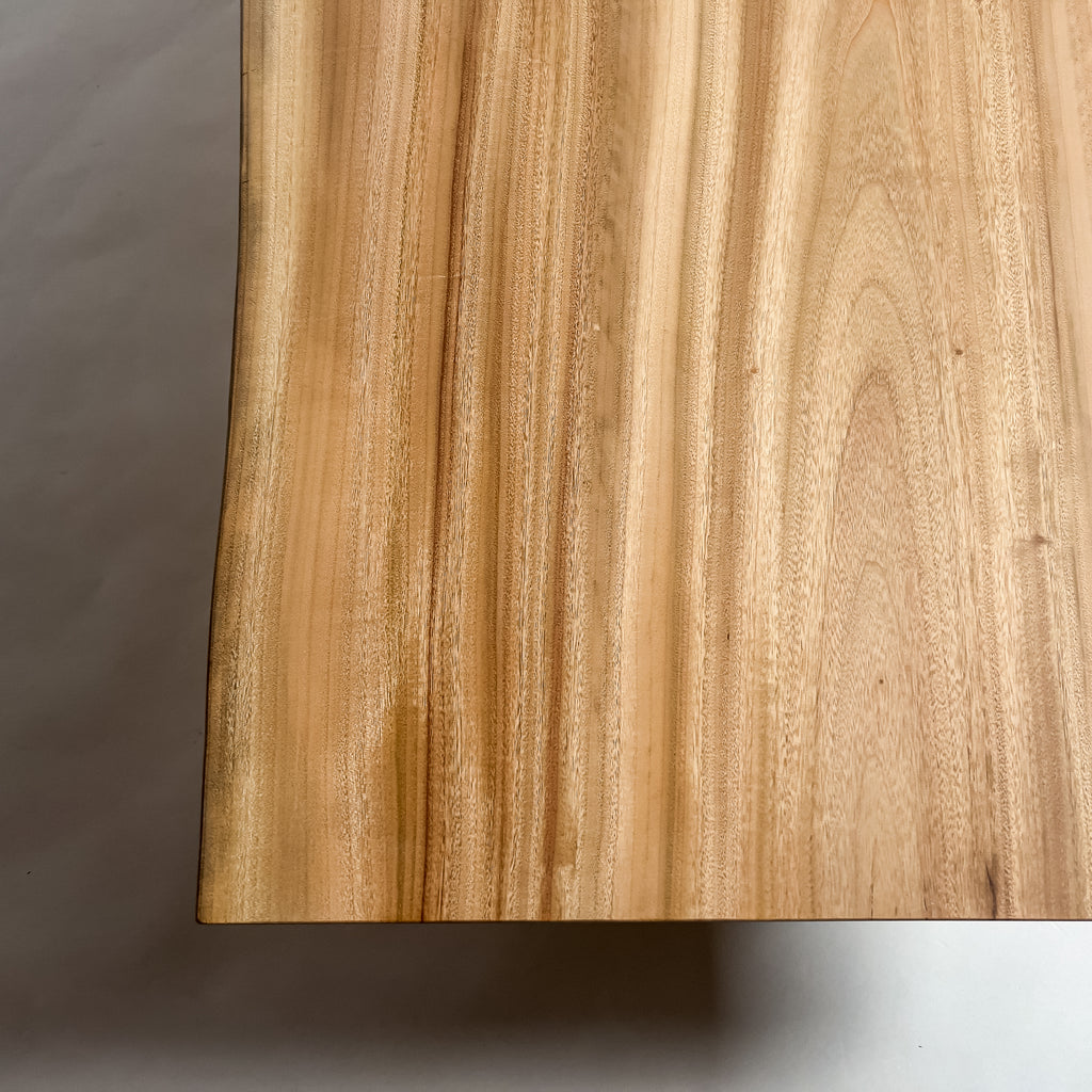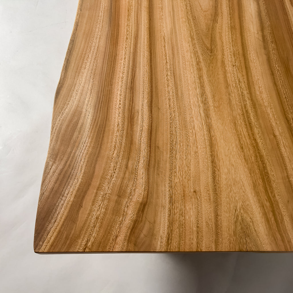 複数の板をつなぎ合わせたものとは異なり、途切れることなく続く杢目は自然の美しさをそのまま映し出します。