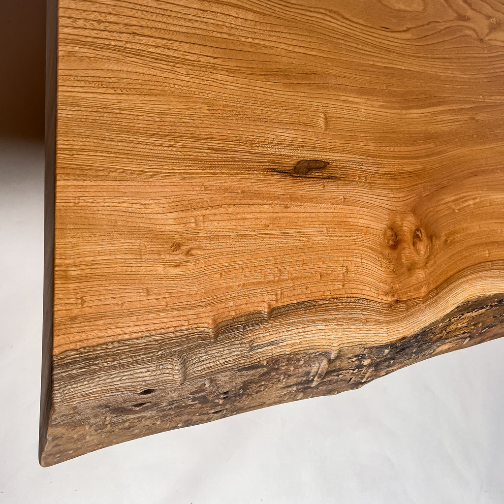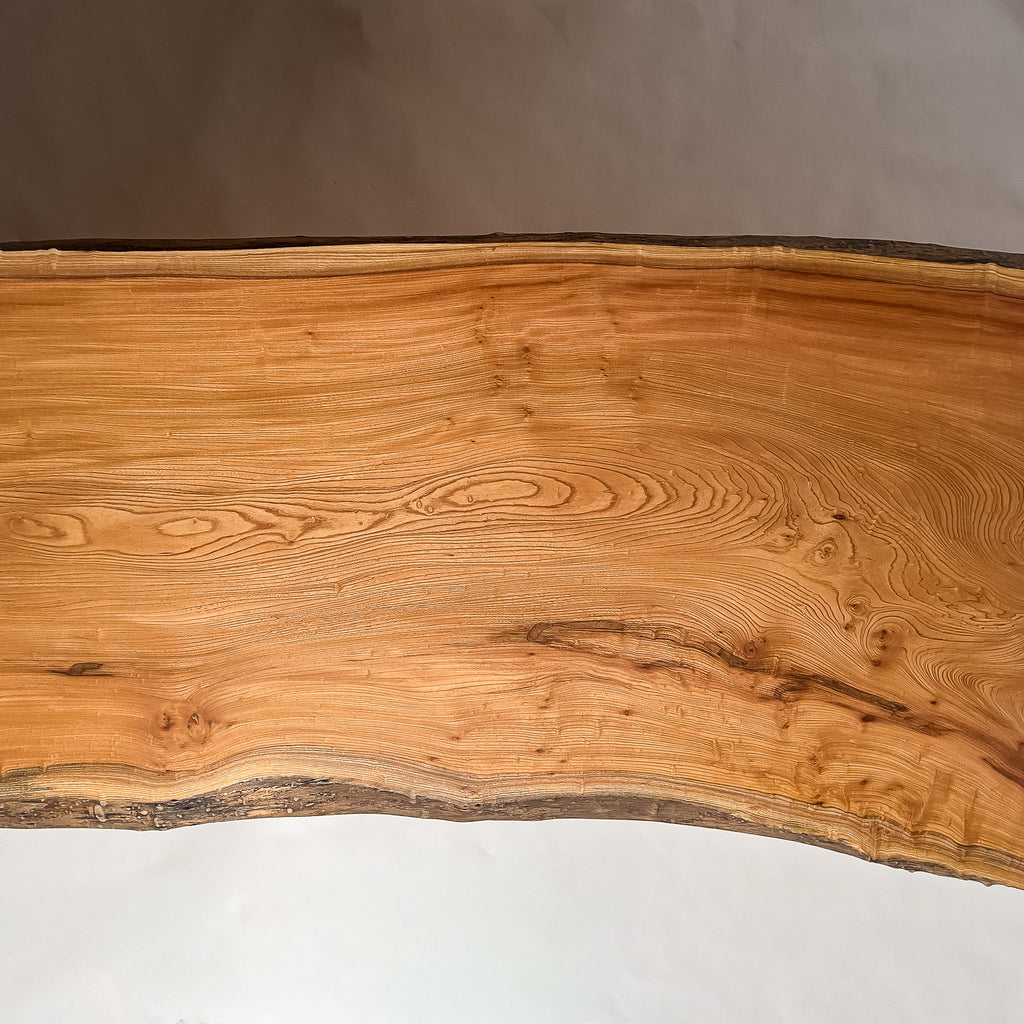 複数の板をつなぎ合わせたものとは異なり、途切れることなく続く杢目は自然の美しさをそのまま映し出します。