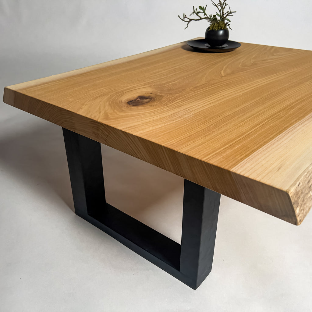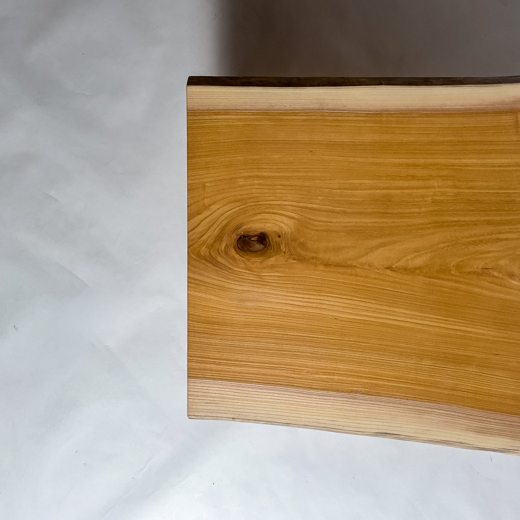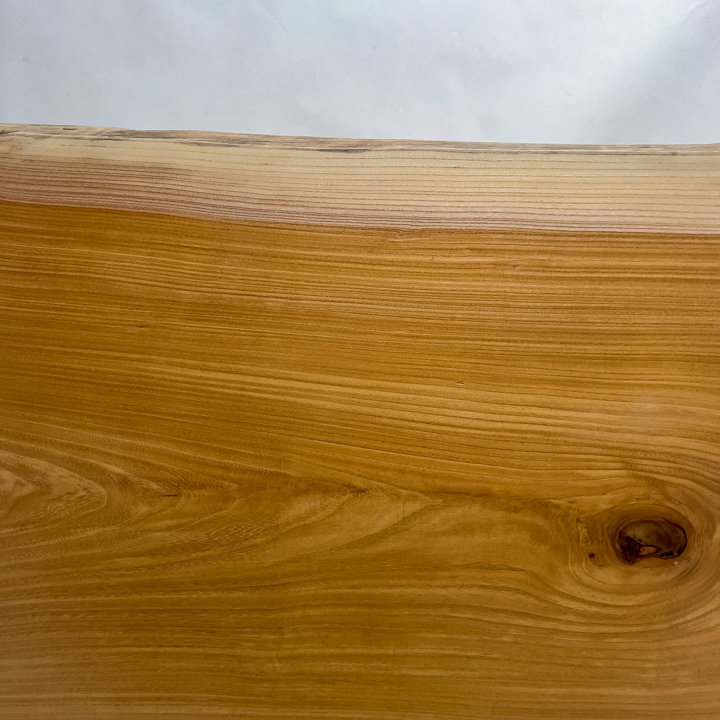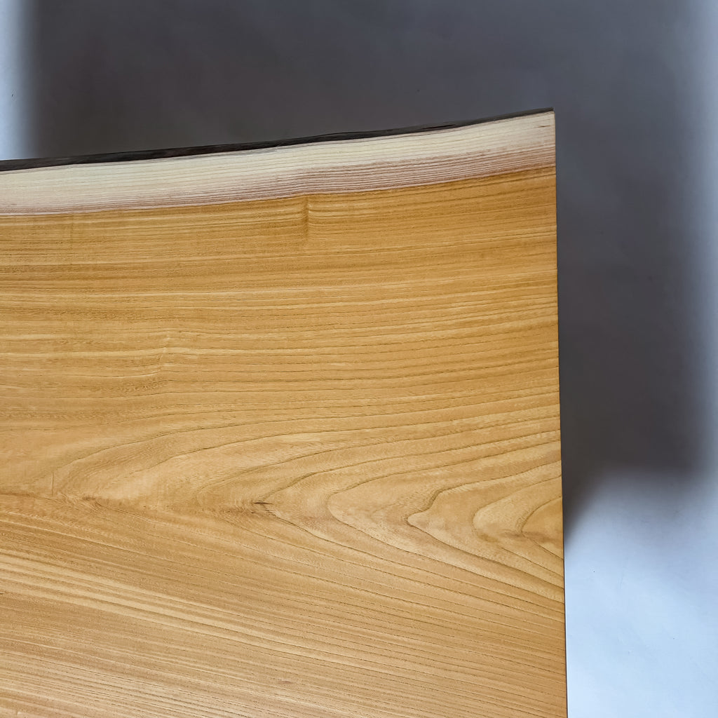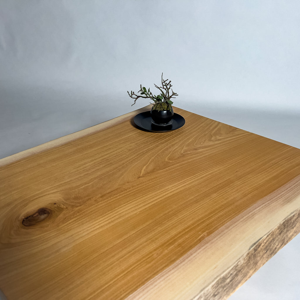ゆっくりと年を重ねた欅は、幹の内側から力強い年輪を刻み、立体感ある杢目を育てます。陽を受けて揺れるような木目と、温かく澄んだ色合い。自然の流れを生かした仕立てが、躍動をそのまま残した一枚板。