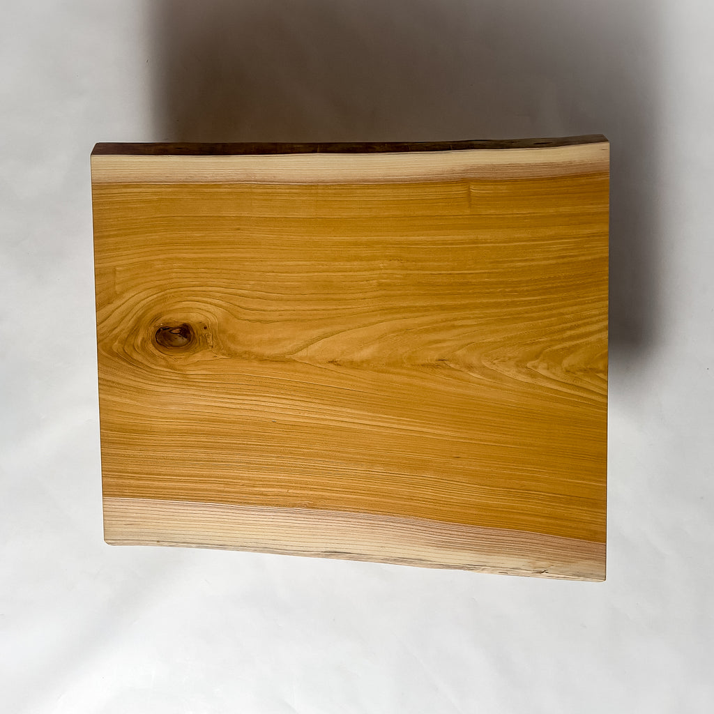| 仕上がりの質感や印象にまで細やかに気を配り、使われる空間や暮らしを見据えた、やわらかな佇まいへと丁寧に仕上げる。 | 木が持つ節や皮、杢目の表情に寄り添い、その一つひとつを活かすことで、唯一無二の素材美を際立たせた一枚板づくりを行う。 | |