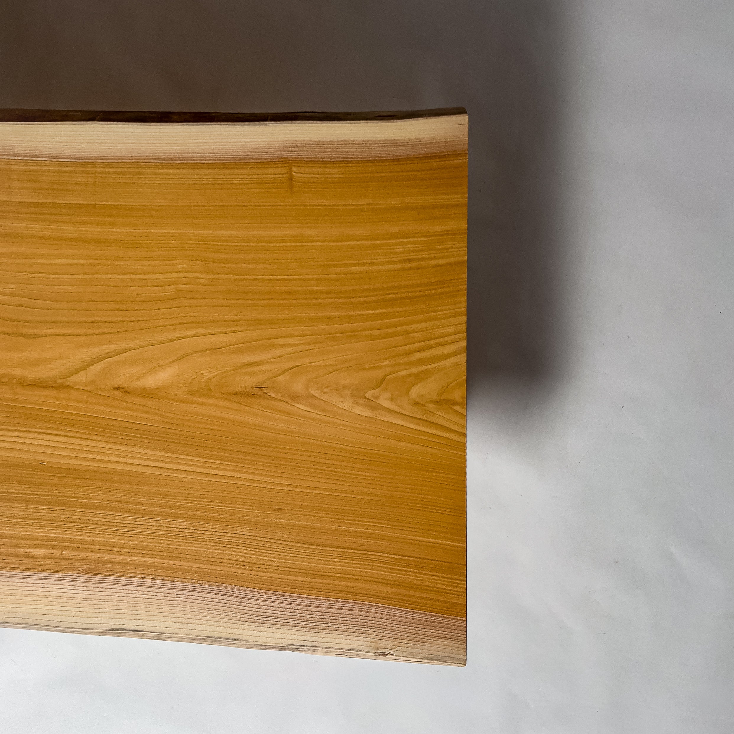 複数の板をつなぎ合わせたものとは異なり、途切れることなく続く杢目は自然の美しさをそのまま映し出します。