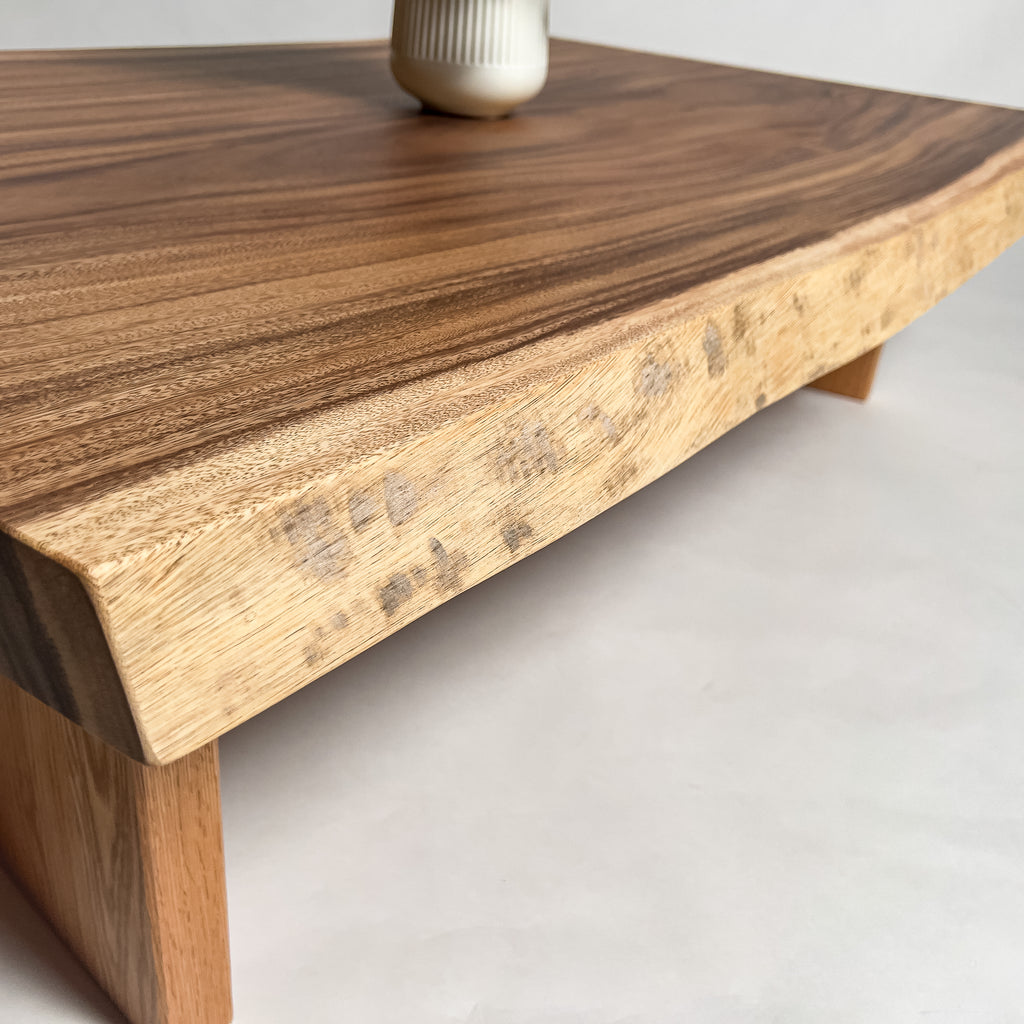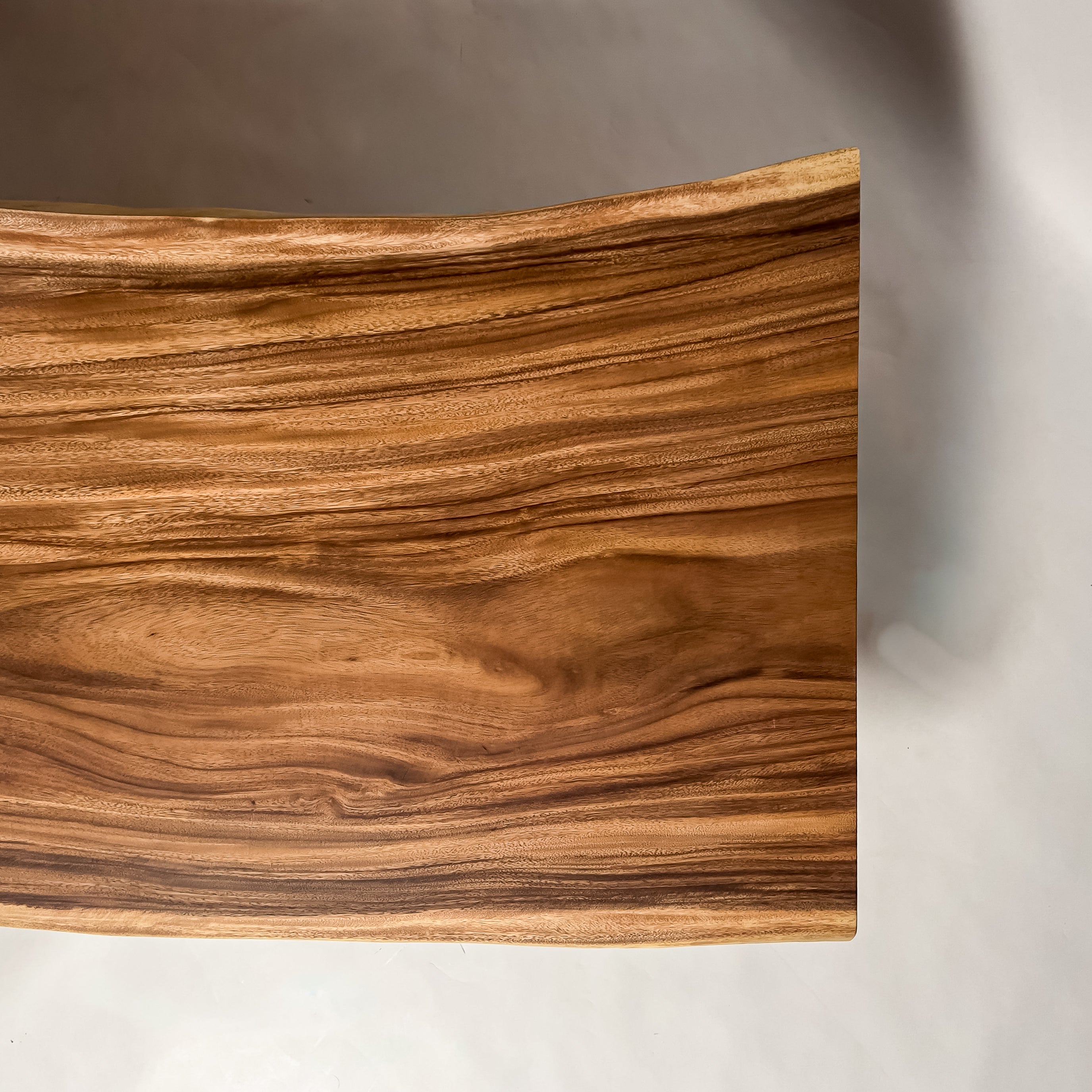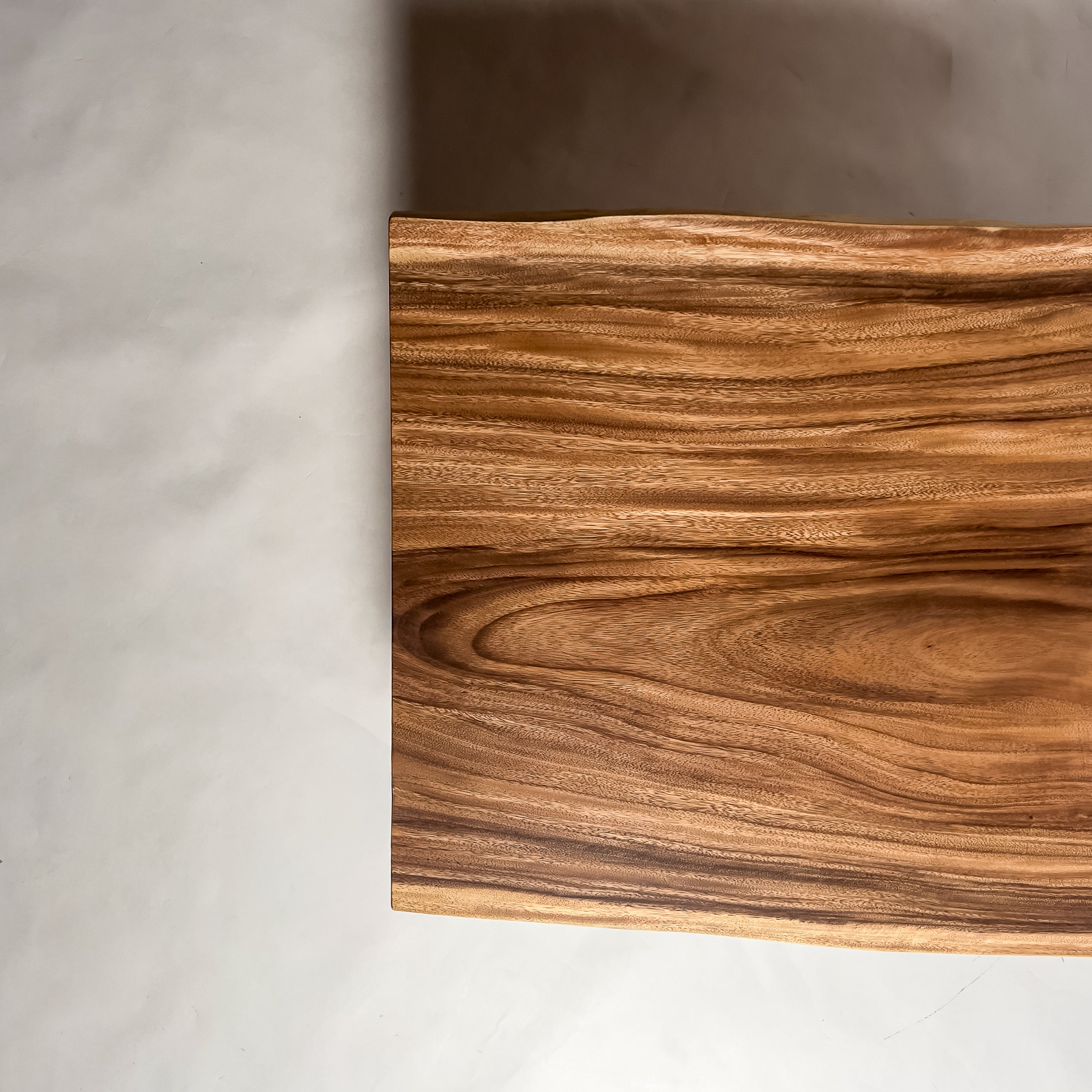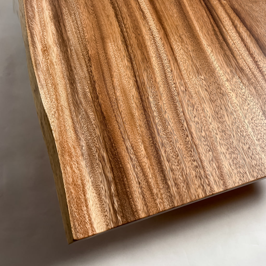 自然が生み出した不均一な表情を 読み解き、素材の持つ品格や奥行きが際立つよう、細部まで配慮した加工で完成度を高める。 一枚板単体の美しさだけでなく、置かれる空間や光の入り方までを思い描き、その場に自然と溶け込む佇まいへと仕上げる。
