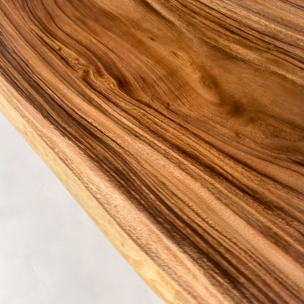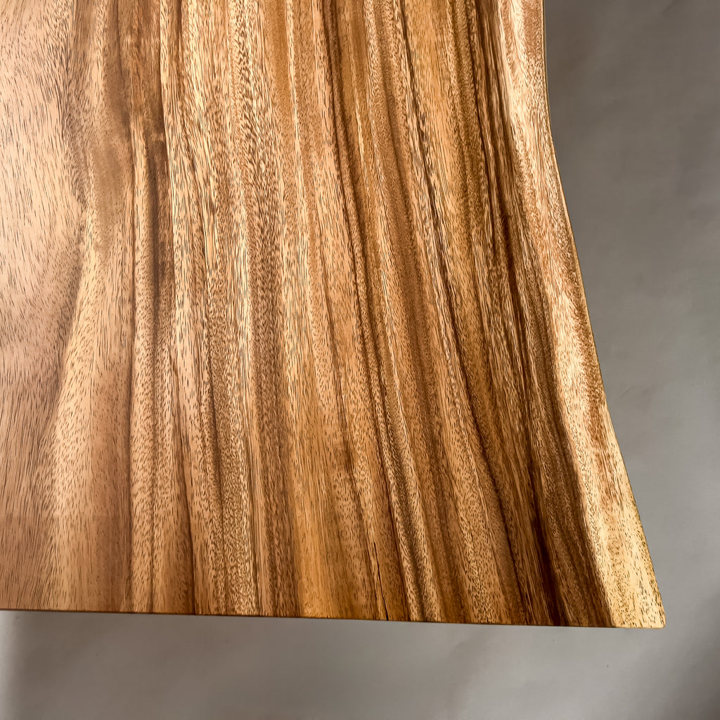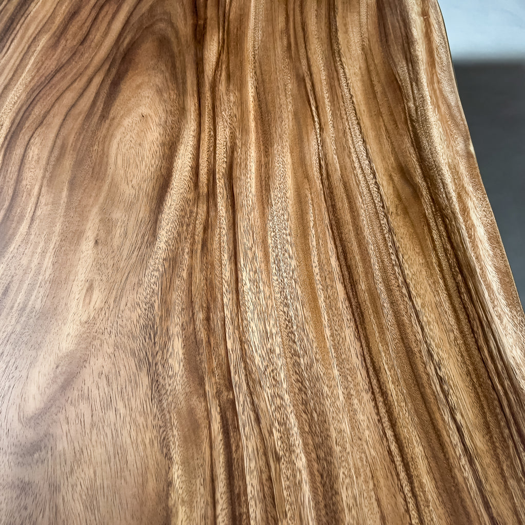 複数の板をつなぎ合わせたものとは異なり、途切れることなく続く杢目は自然の美しさをそのまま映し出します。