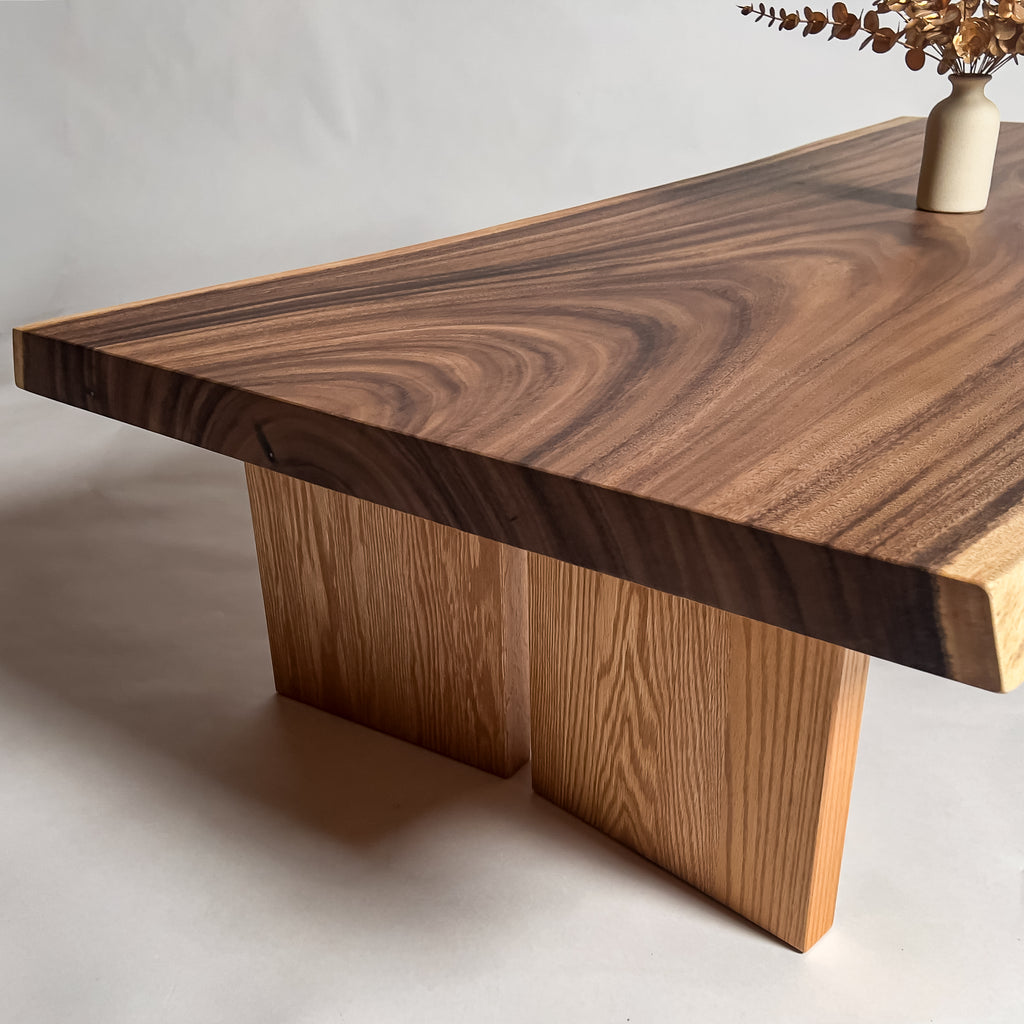 | 時代を超えて受け継がれる機能性と、現代の暮らしに寄り添うデザイン性を兼ね備えた一枚板家具の製作を手がける。 | 現代の空間に映えるモダンなデザイン性を取り入れながら、一枚板の持つ素材感と存在感を活かした加工・製作を行う。 | |