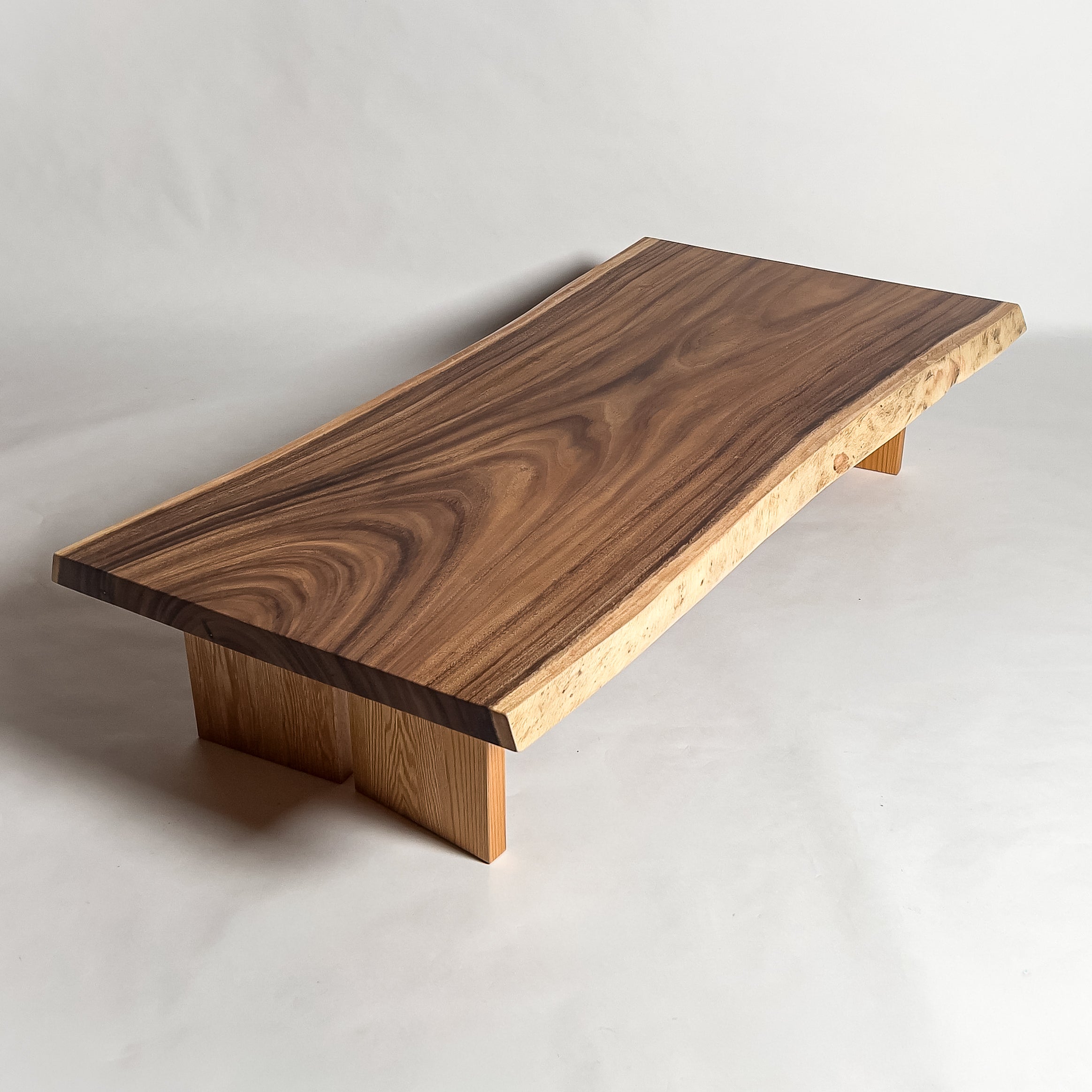| 自然が生み出した不均一な表情を 読み解き、素材の持つ品格や奥行きが際立つよう、細部まで配慮した加工で完成度を高める。 | 一枚板単体の美しさだけでなく、置かれる空間や光の入り方までを思い描き、その場に自然と溶け込む佇まいへと仕上げる。 | |