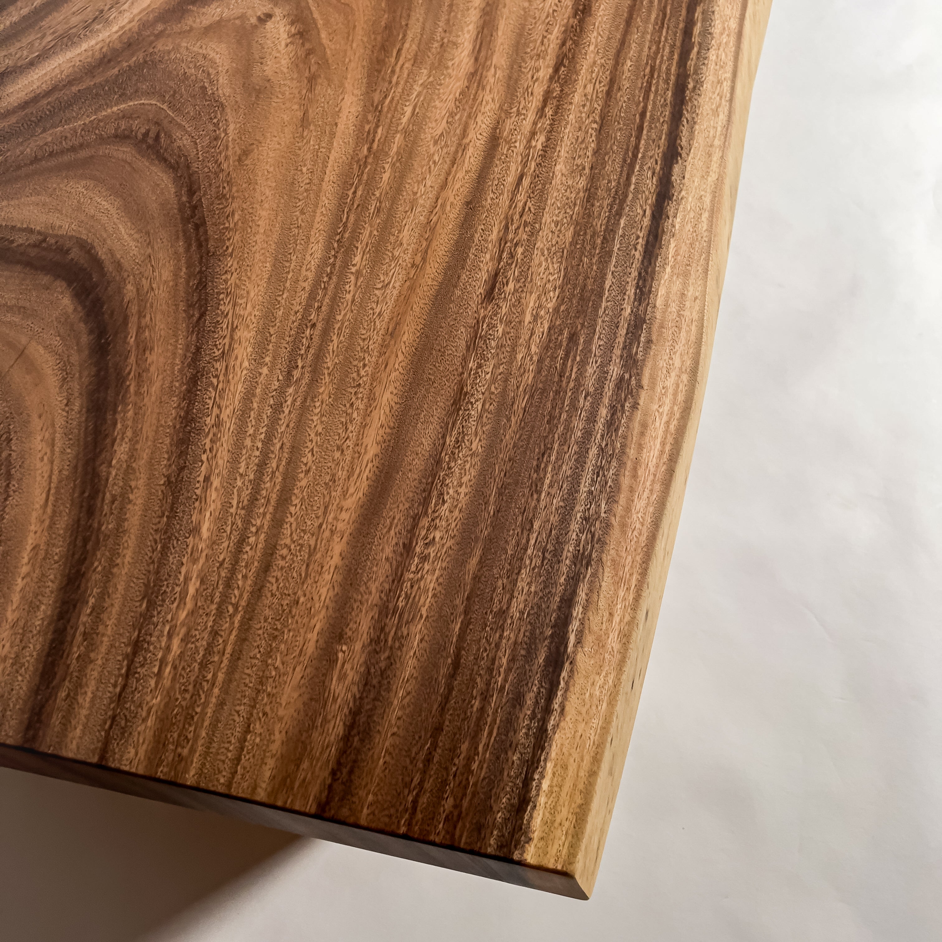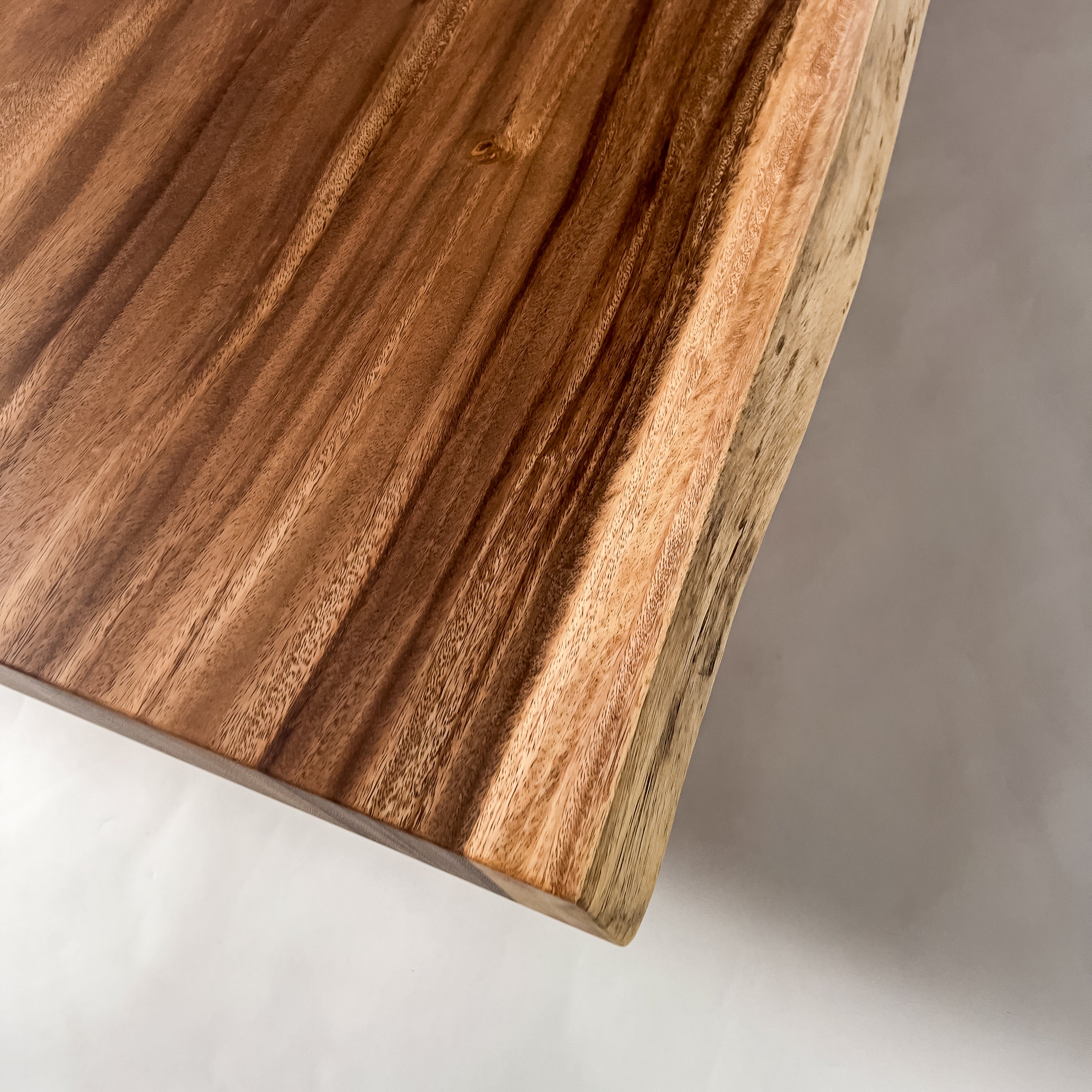 複数の板をつなぎ合わせたものとは異なり、途切れることなく続く杢目は自然の美しさをそのまま映し出します。