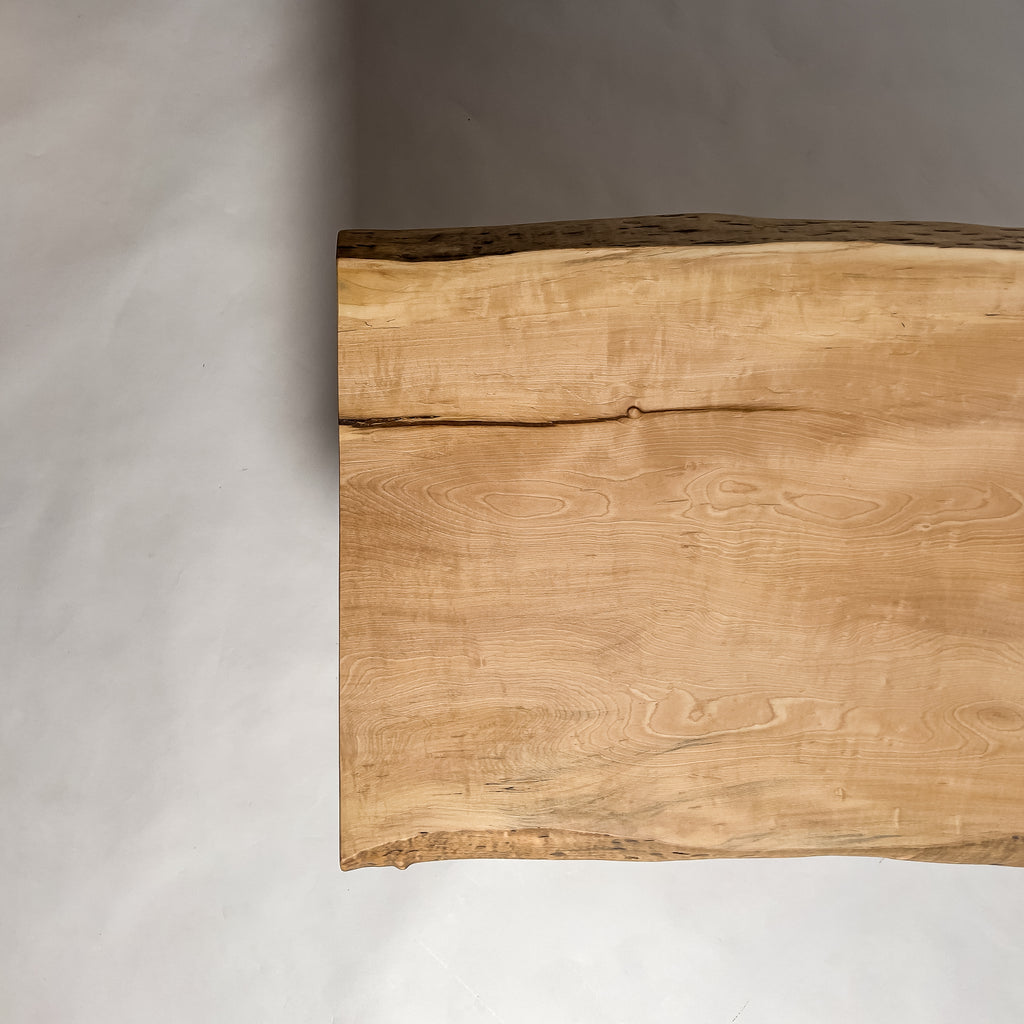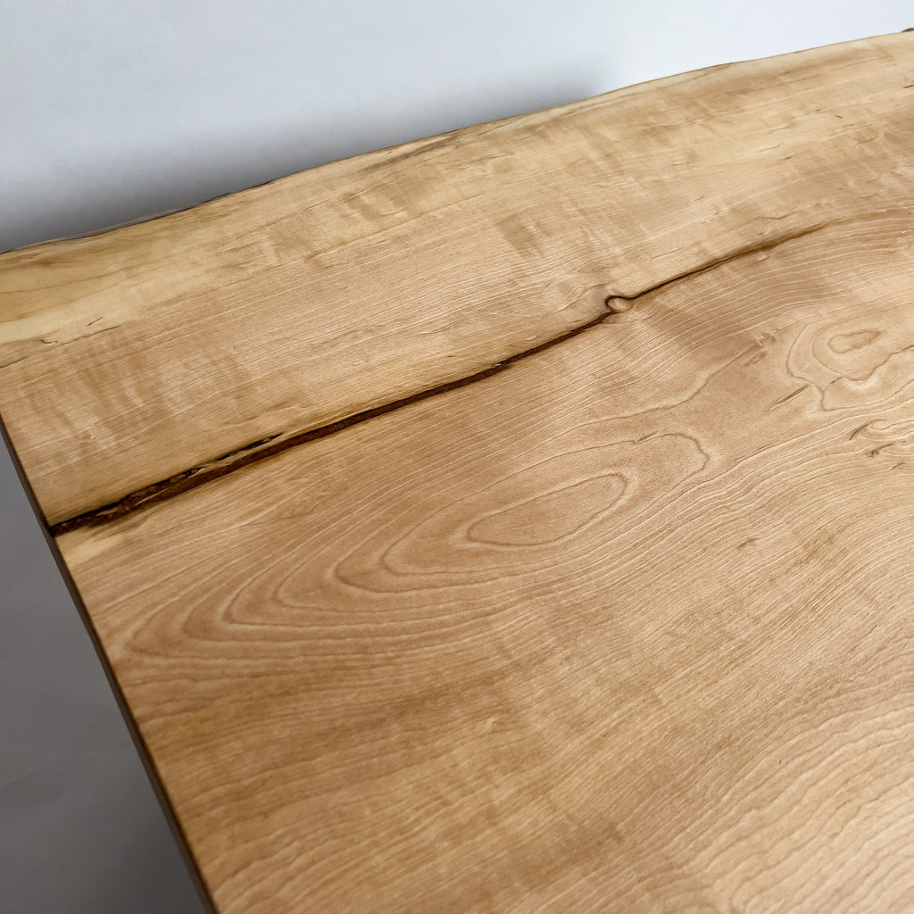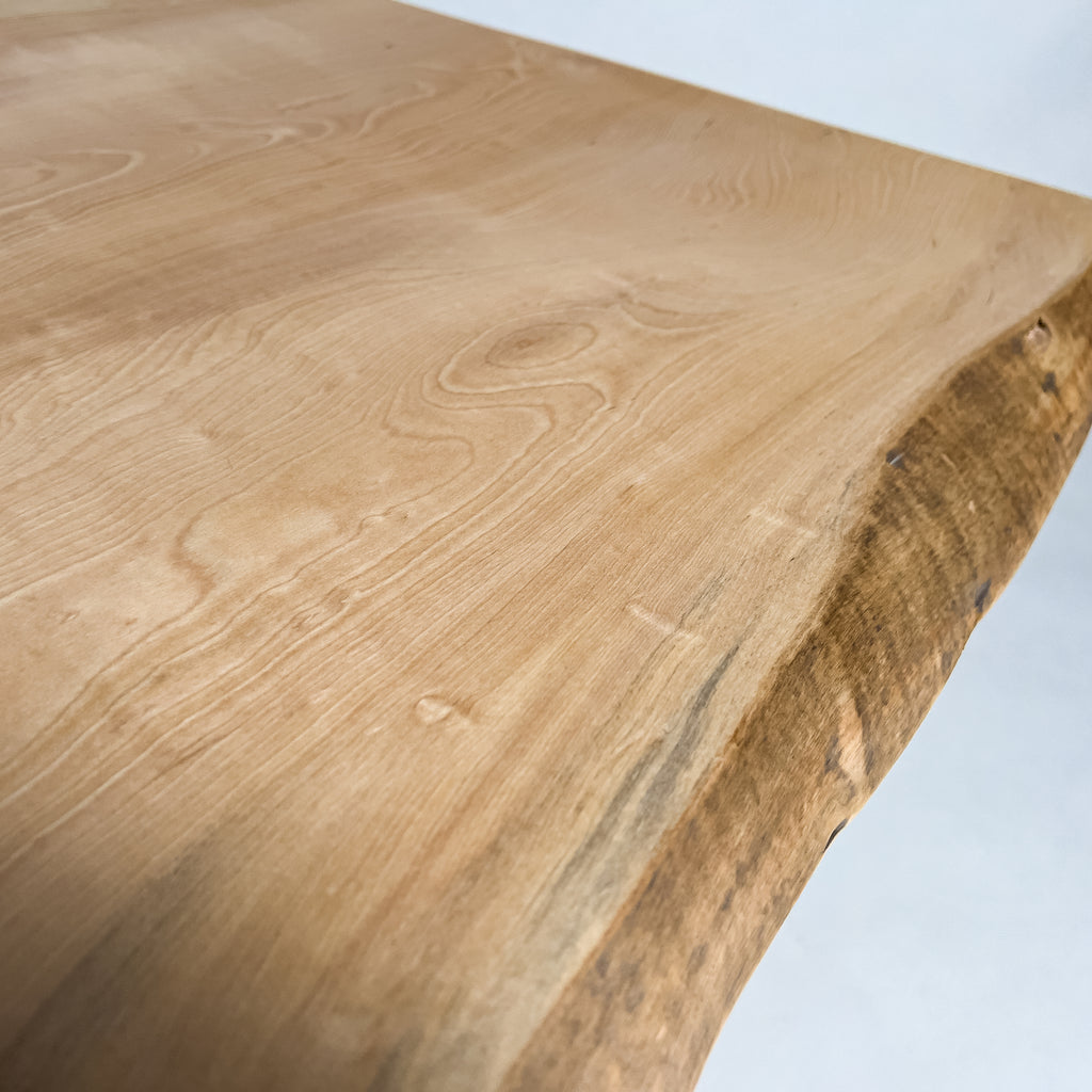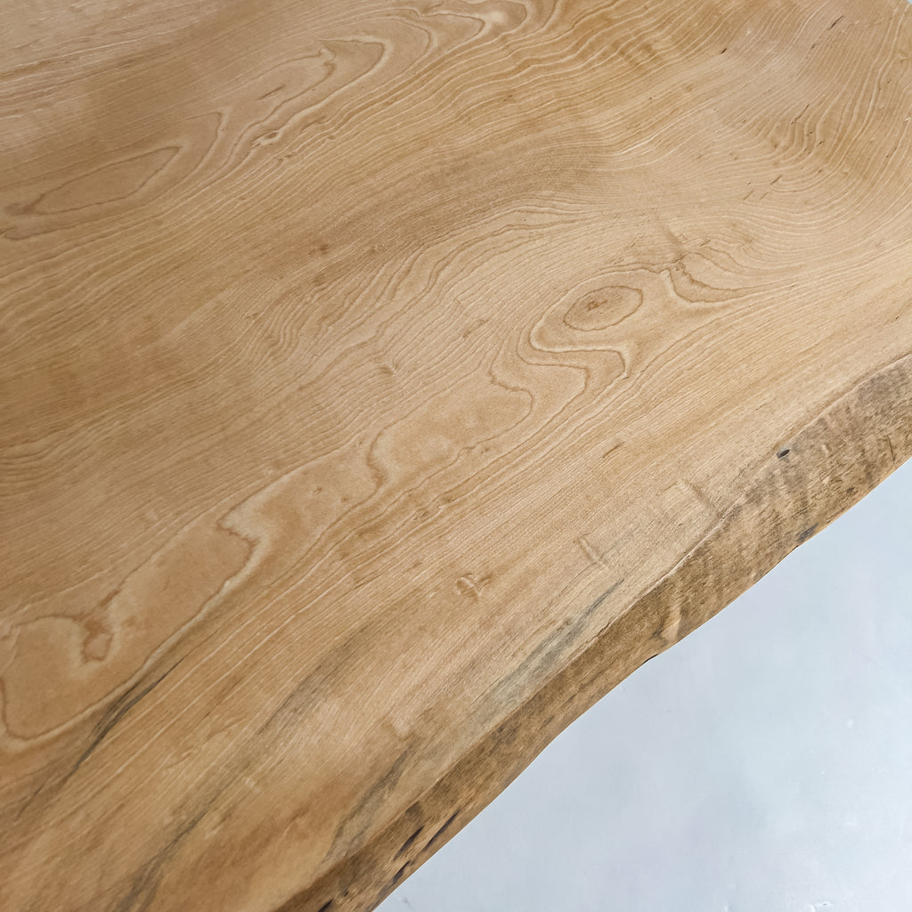 複数の板をつなぎ合わせたものとは異なり、途切れることなく続く杢目は自然の美しさをそのまま映し出します。