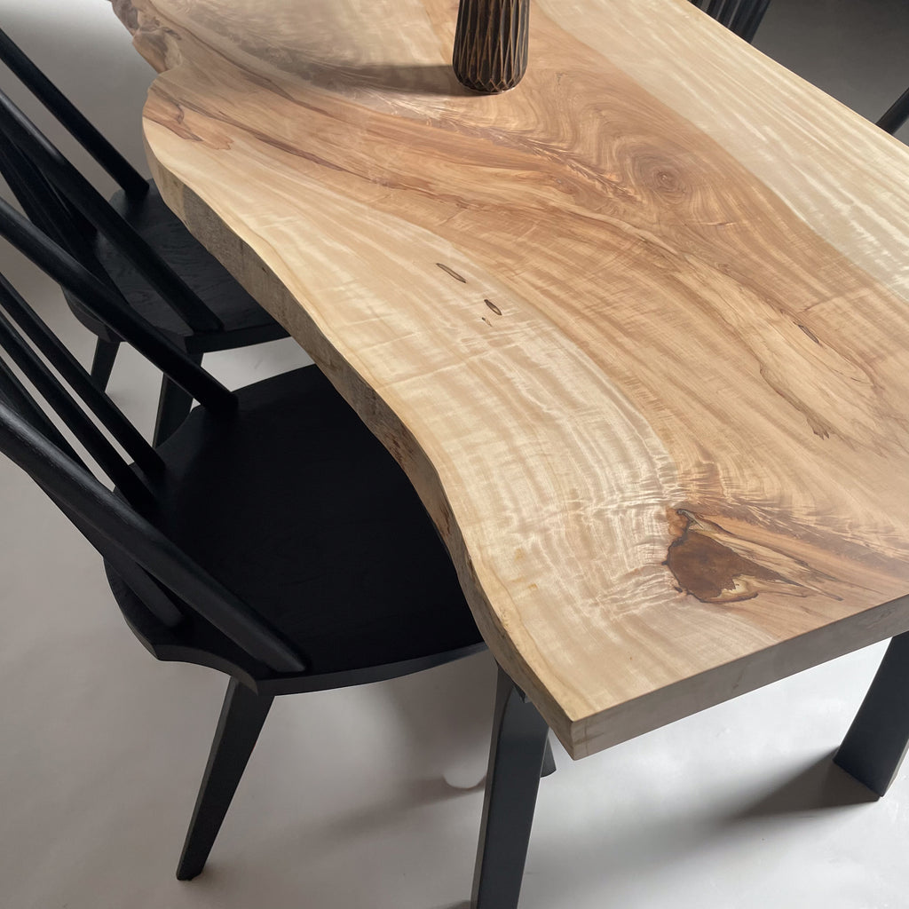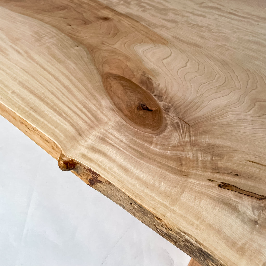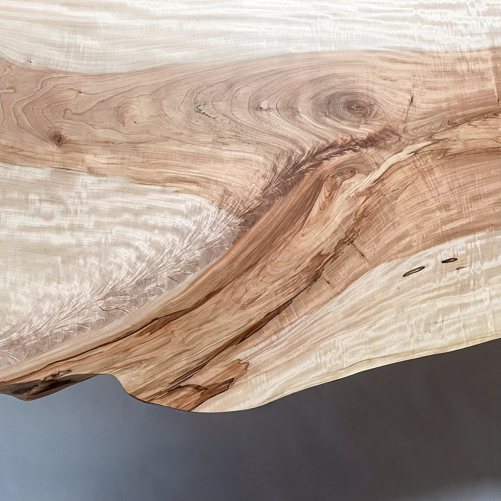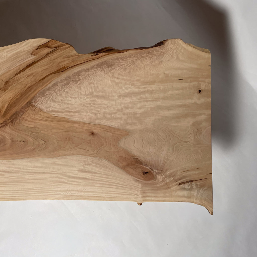 複数の板をつなぎ合わせたものとは異なり、途切れることなく続く杢目は自然の美しさをそのまま映し出します。