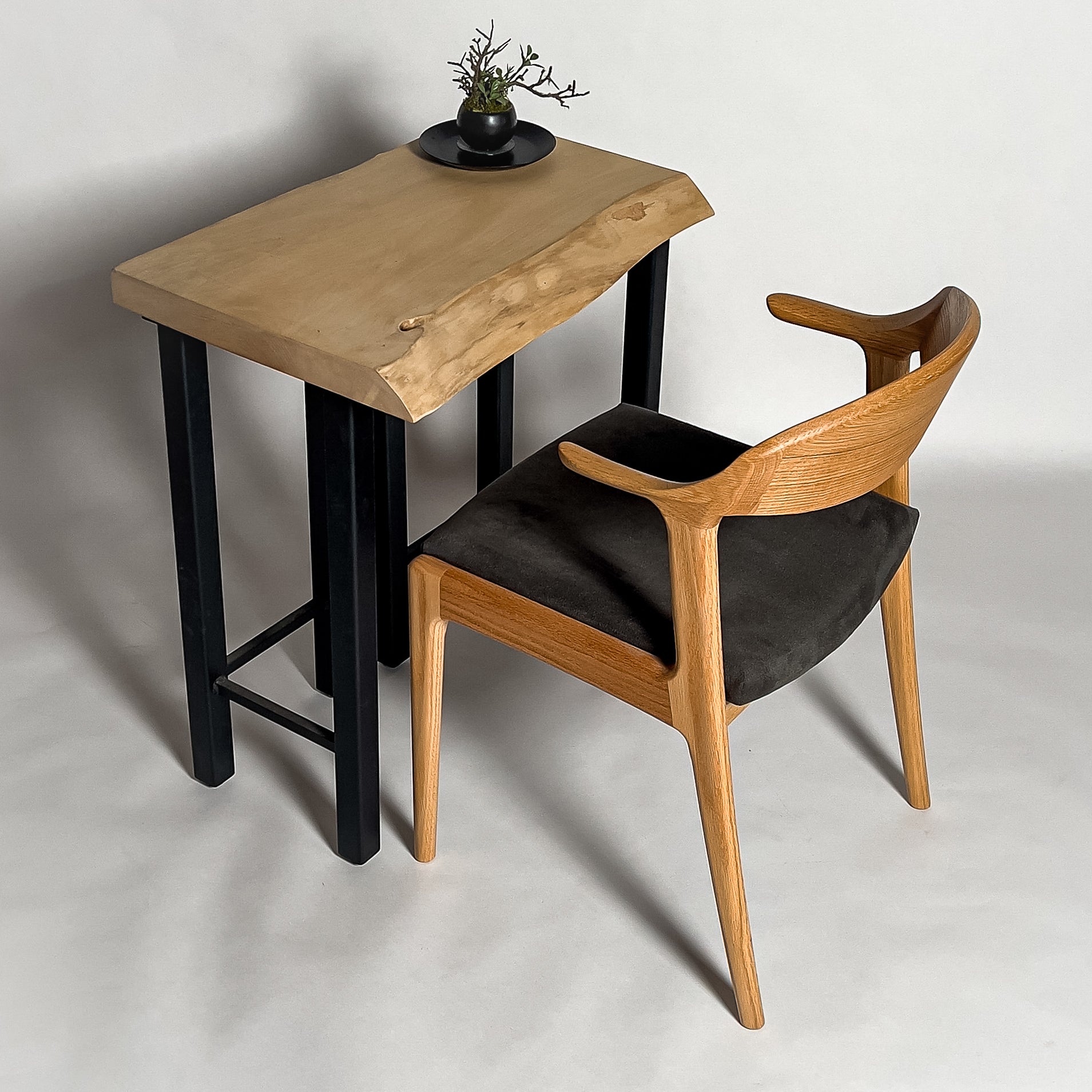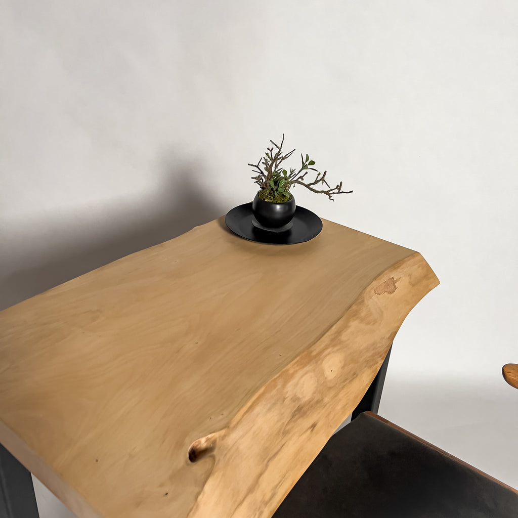 | 時代を超えて受け継がれる機能性と、現代の暮らしに寄り添うデザイン性を兼ね備えた一枚板家具の製作を手がける。 | 現代の空間に映えるモダンなデザイン性を取り入れながら、一枚板の持つ素材感と存在感を活かした加工・製作を行う。 | |