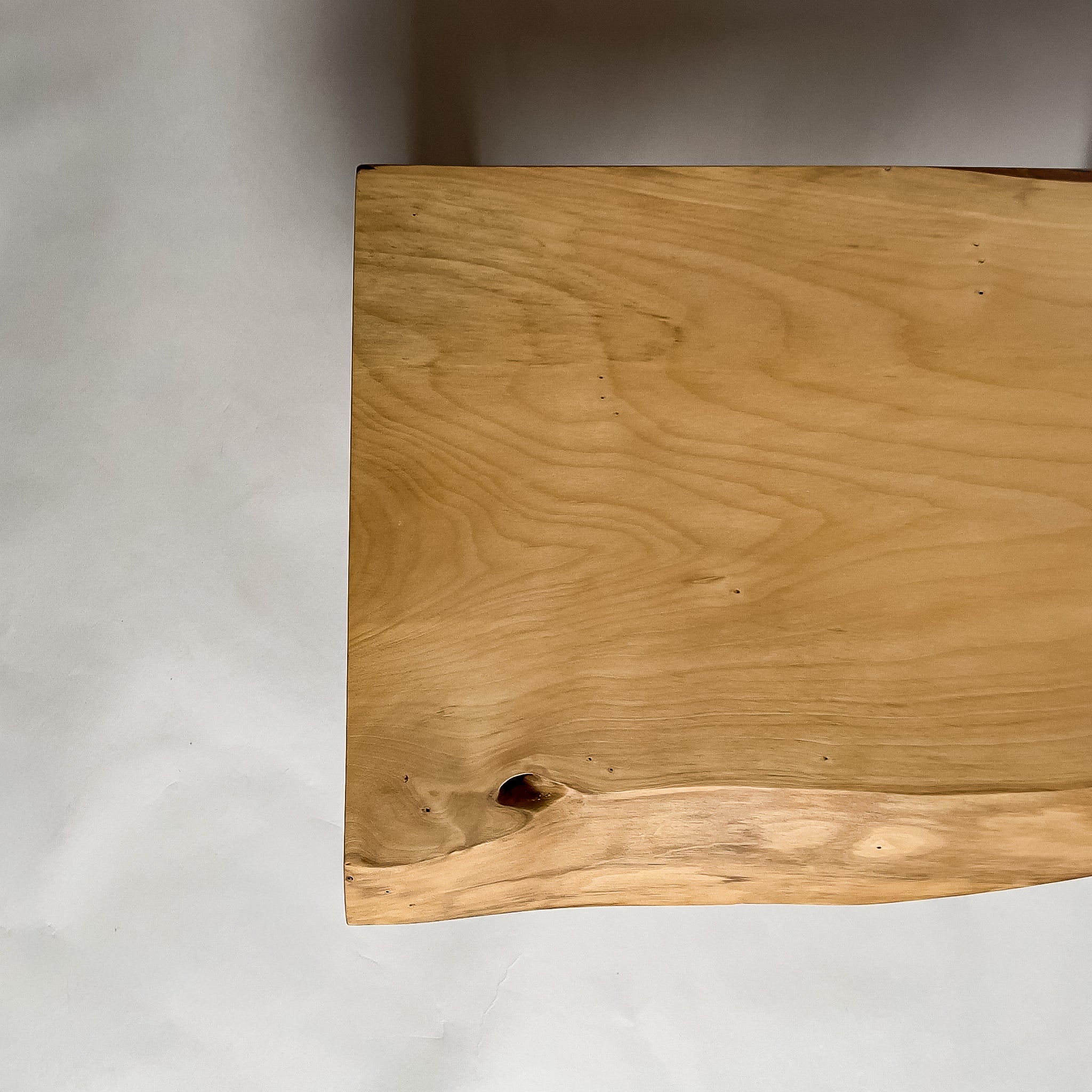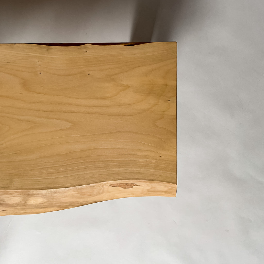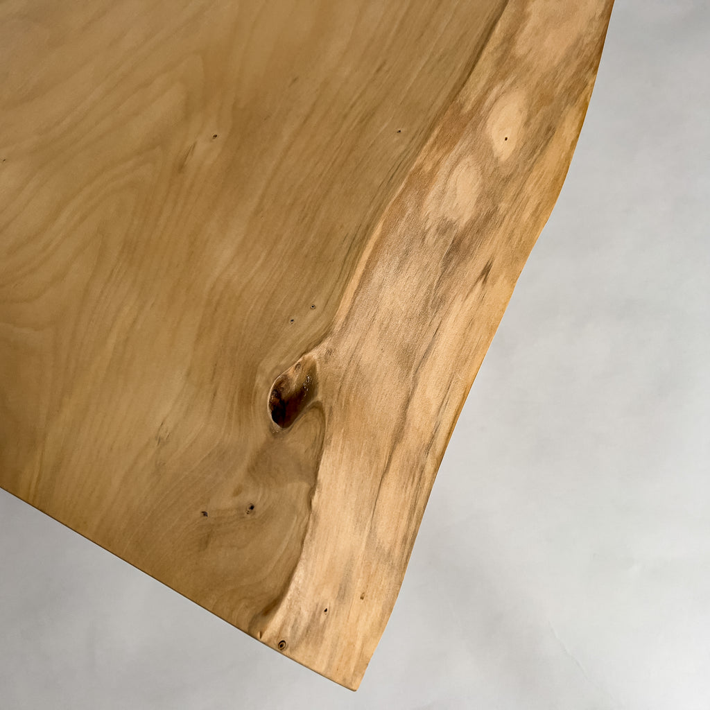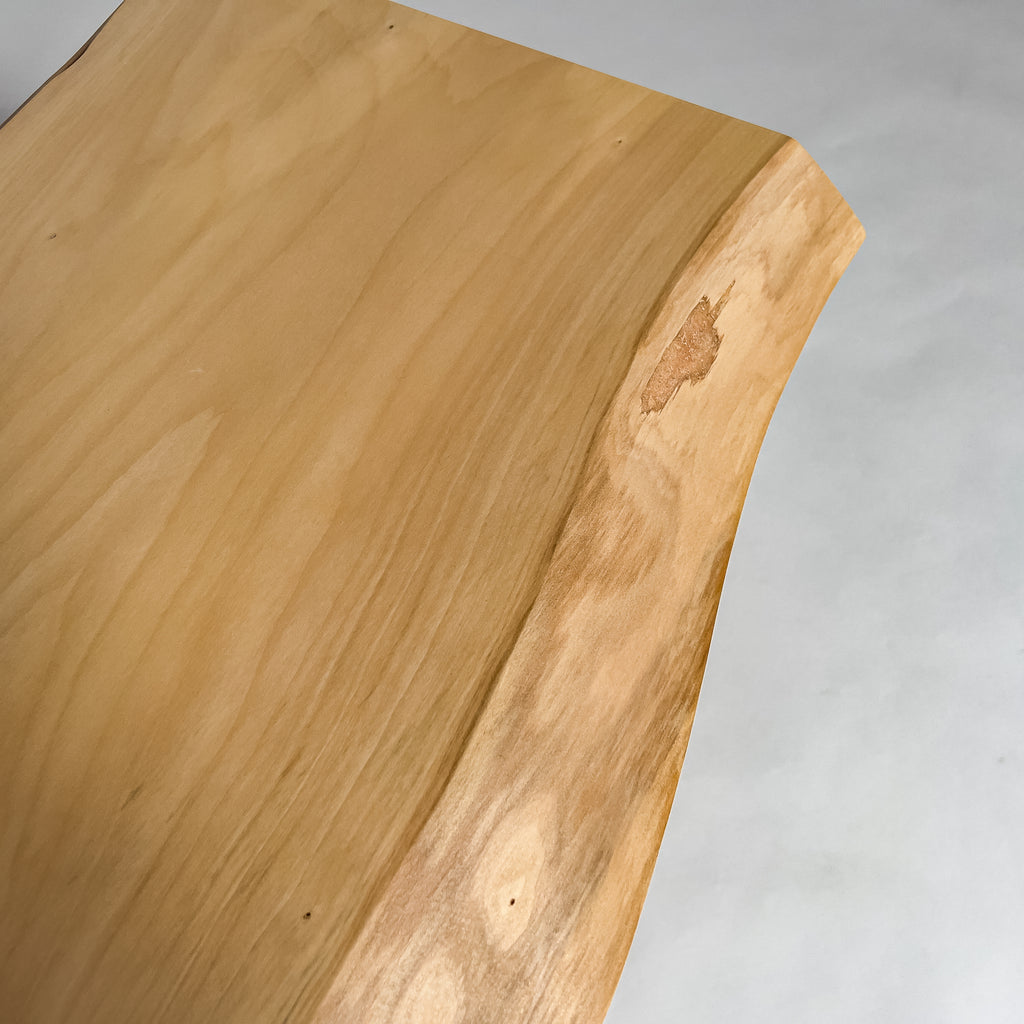 穏やかな淡色が広がる銀杏の一枚板です。ゆっくりと年を重ね、陽を受けて育った木が描く年輪と流れる杢目が、暮らしにやさしく寄り添います。耳の表情を残した仕上げが動きを伝え、静かな躍動。
