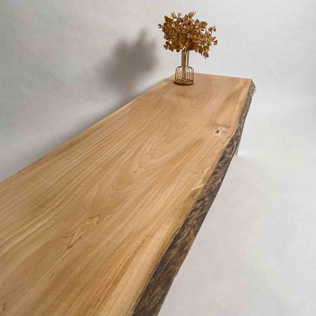 複数の板をつなぎ合わせたものとは異なり、途切れることなく続く杢目は自然の美しさをそのまま映し出します。