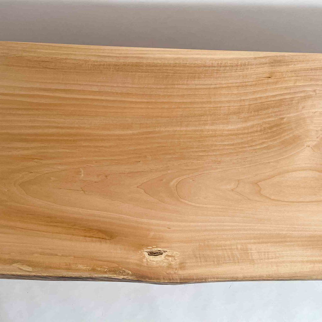 仕上がりの質感や印象にまで細やかに気を配り、使われる空間や暮らしを見据えた、やわらかな佇まいへと丁寧に仕上げる。 木が持つ節や皮、杢目の表情に寄り添い、その一つひとつを活かすことで、唯一無二の素材美を際立たせた一枚板づくりを行う。