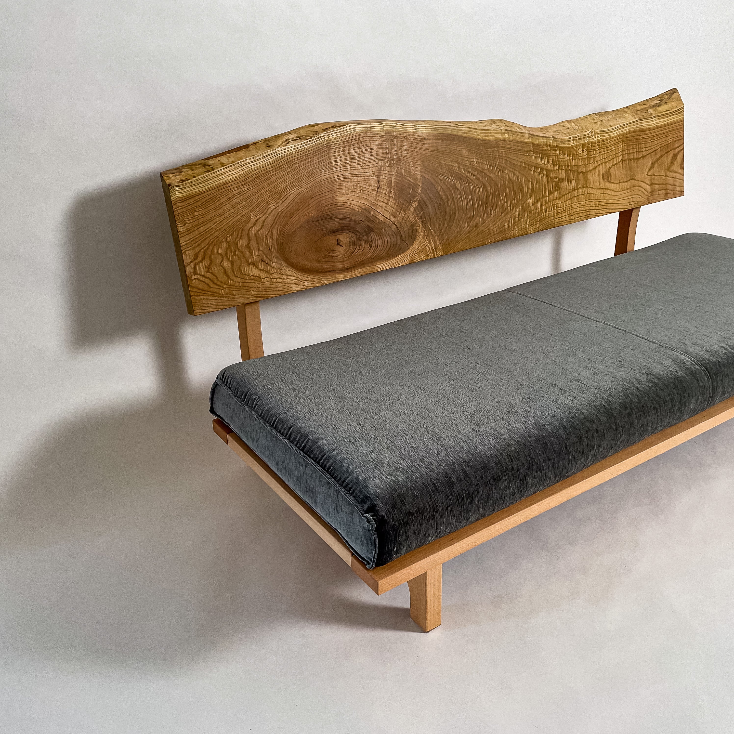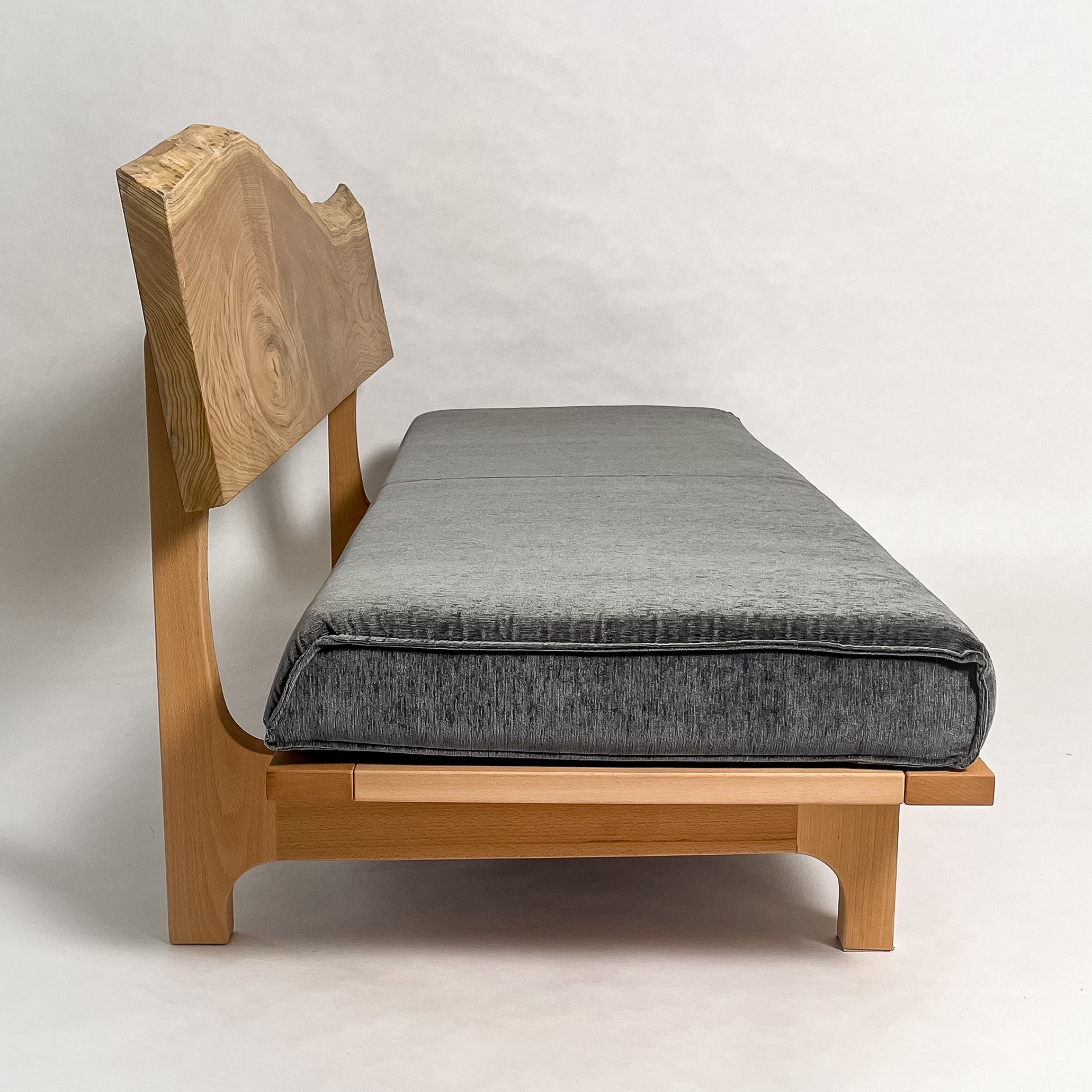 黄檗の一枚板を背もたれと肘置きに贅沢に用い、自然な曲線をそのまま残しました。木の温もりと重厚感が調和し、見た目の美しさと座り心地の両方を楽しめる上質なソファで、暮らしに豊かな彩りを添えます。