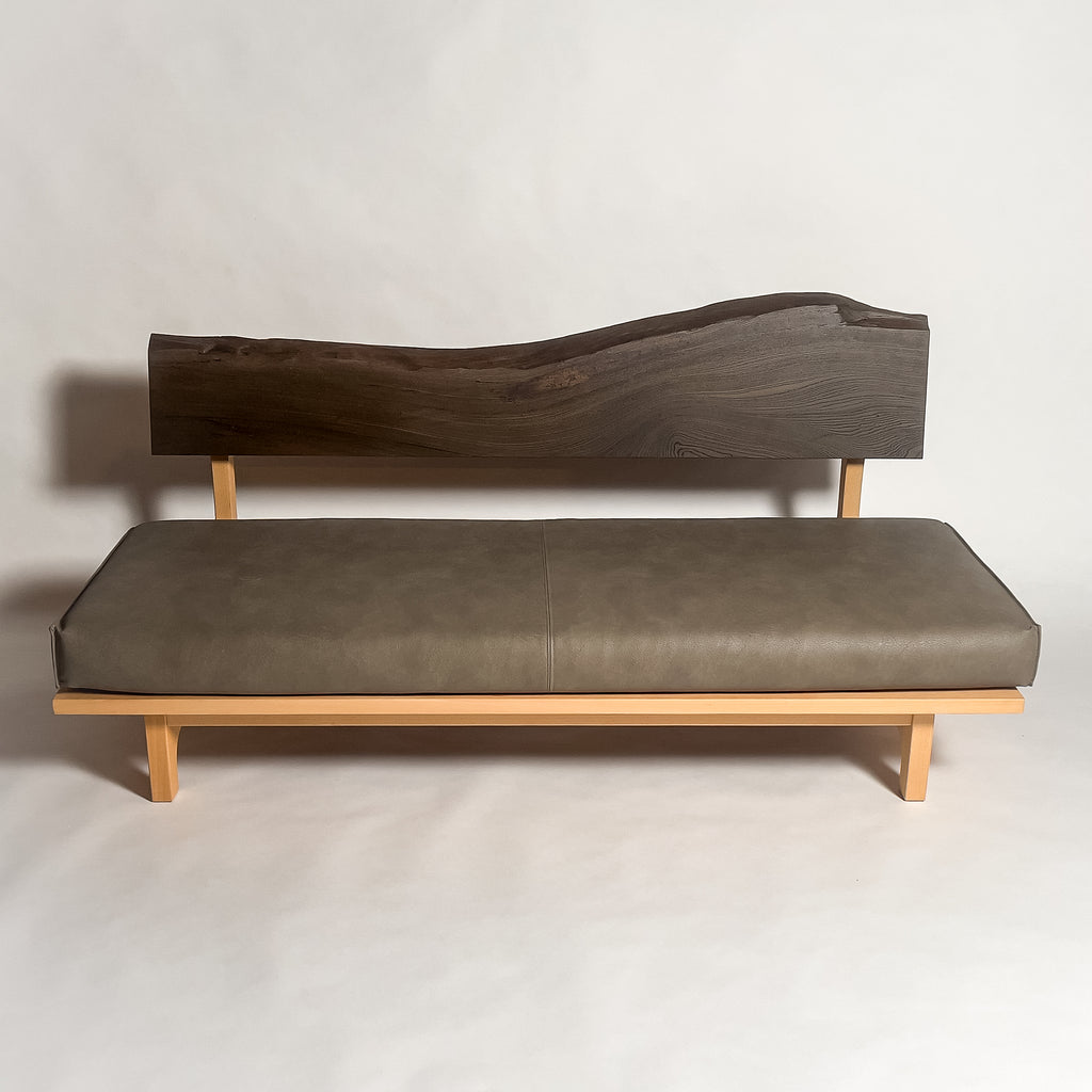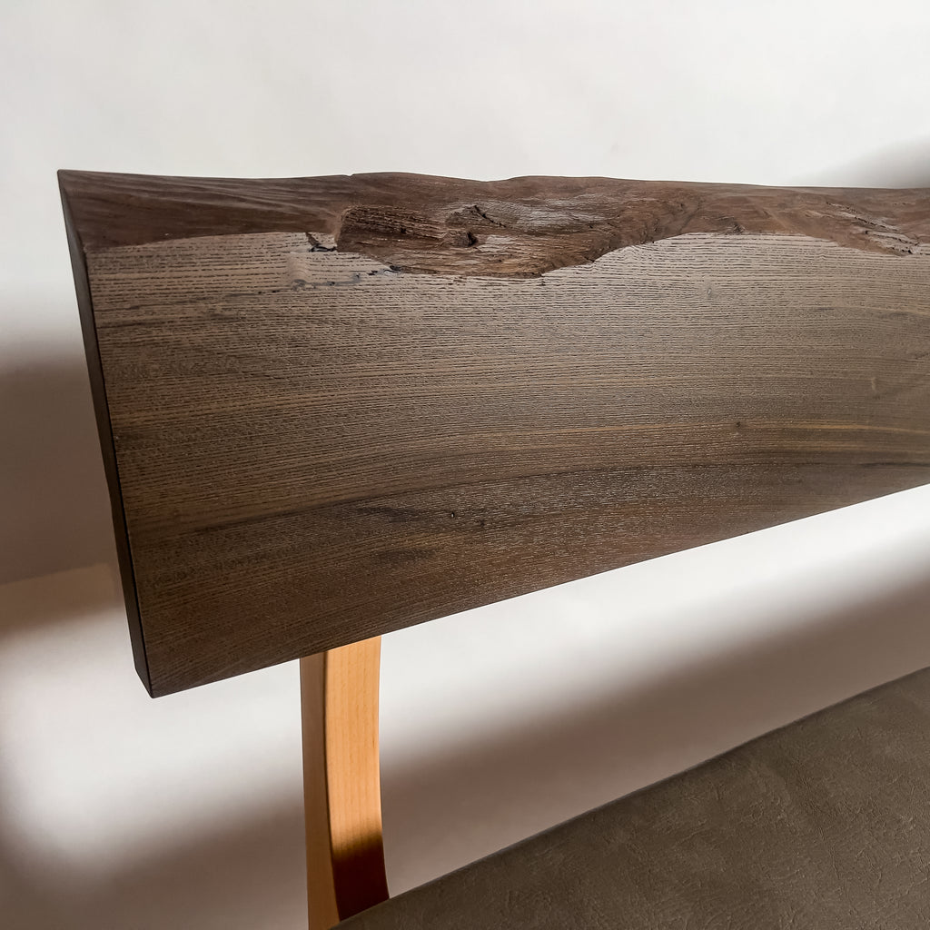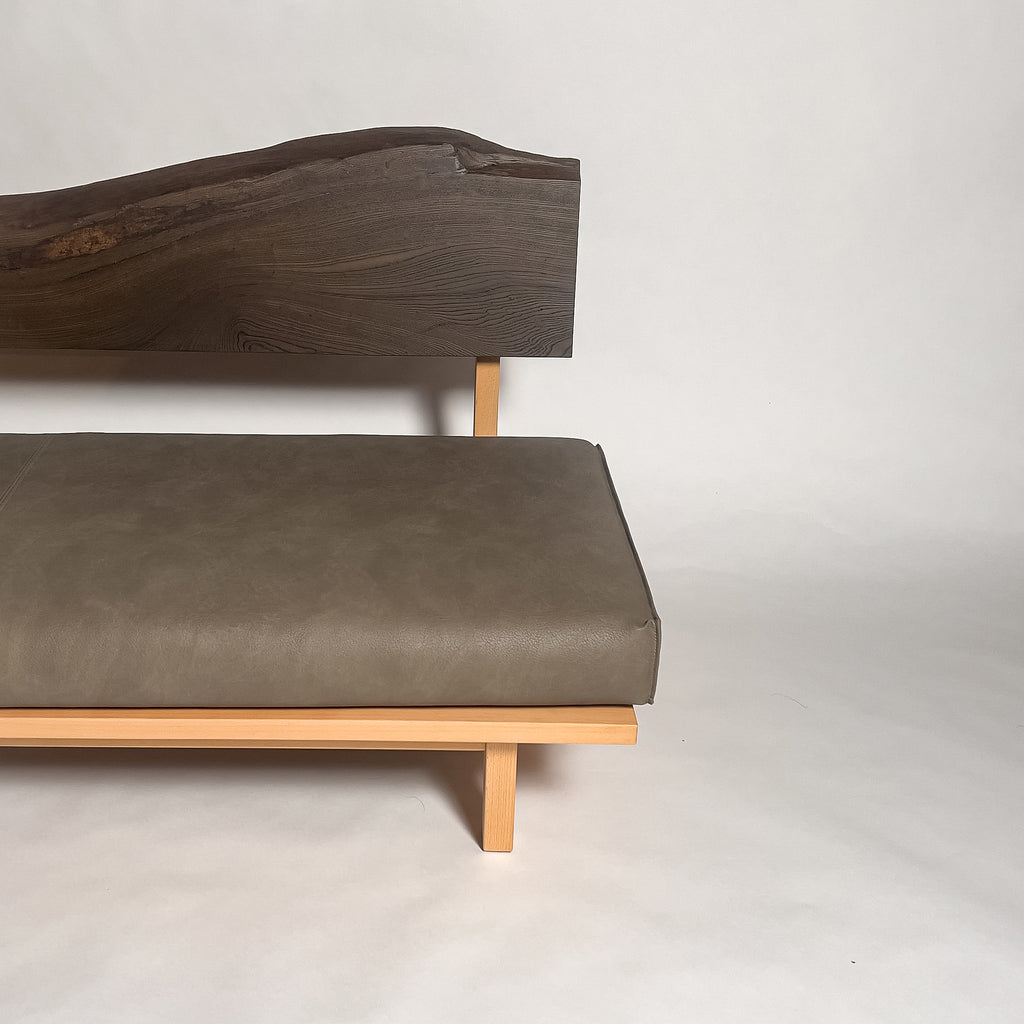 神代欅の一枚板を背もたれと肘置きに贅沢にあしらった無垢ソファです。流れるような木目と自然な曲線が生み出す温もりは、他では味わえない安らぎ。職人の手で躍動感を残した仕上げが、空間に上品な存在感を添えます。