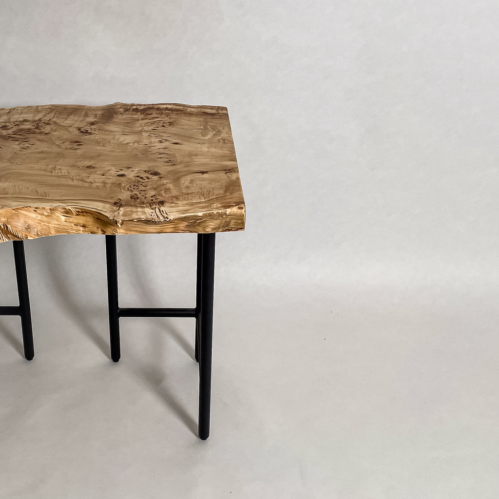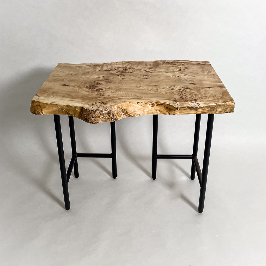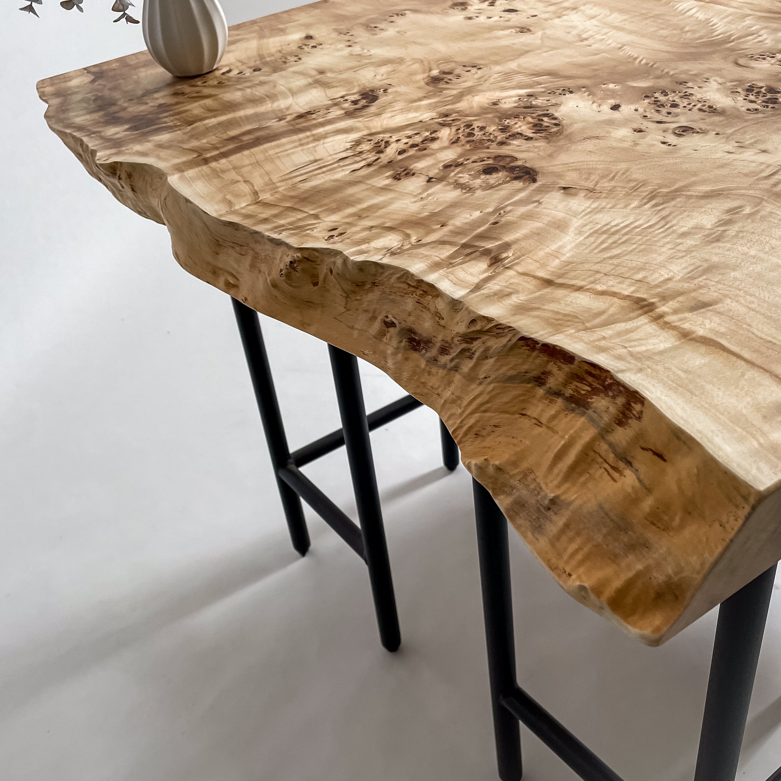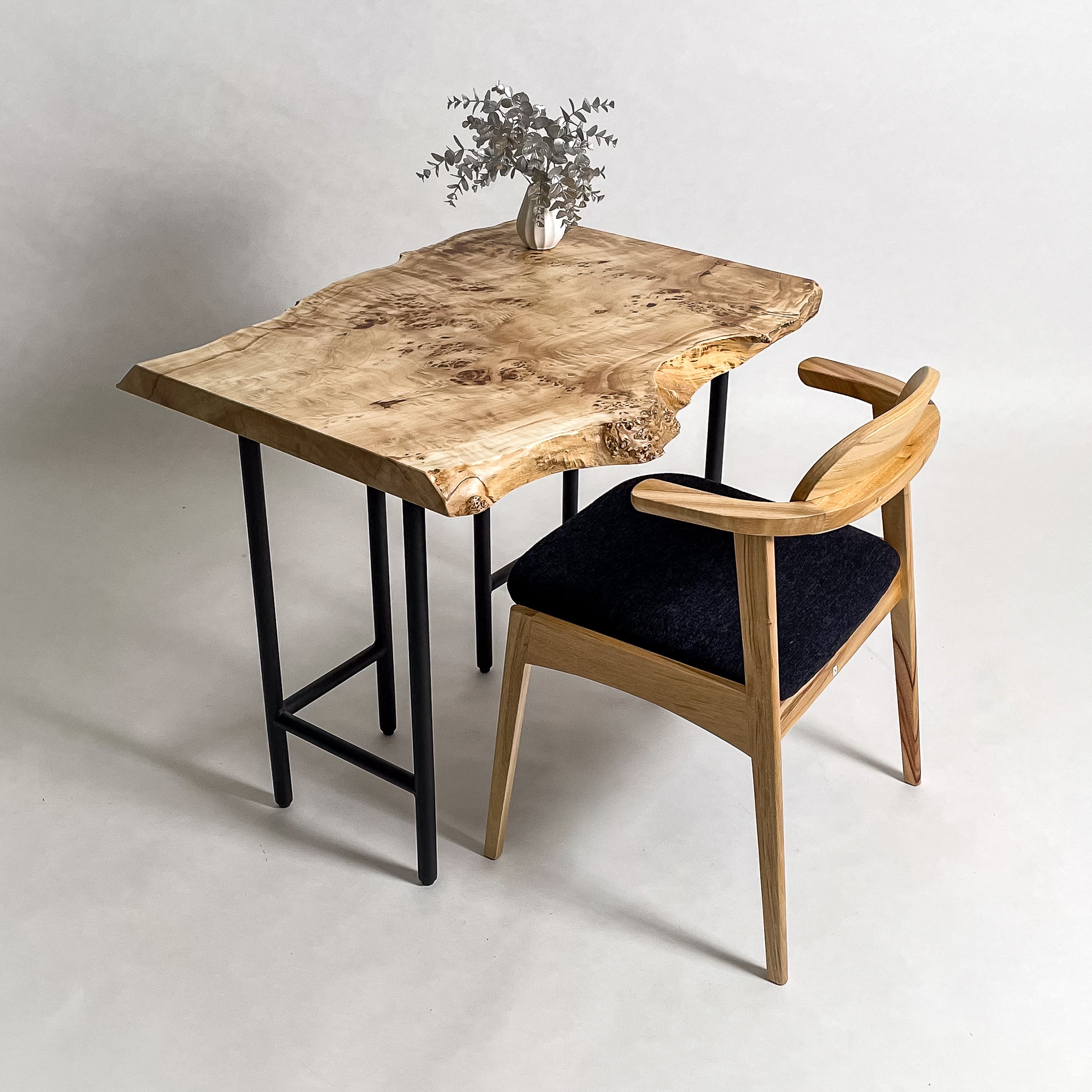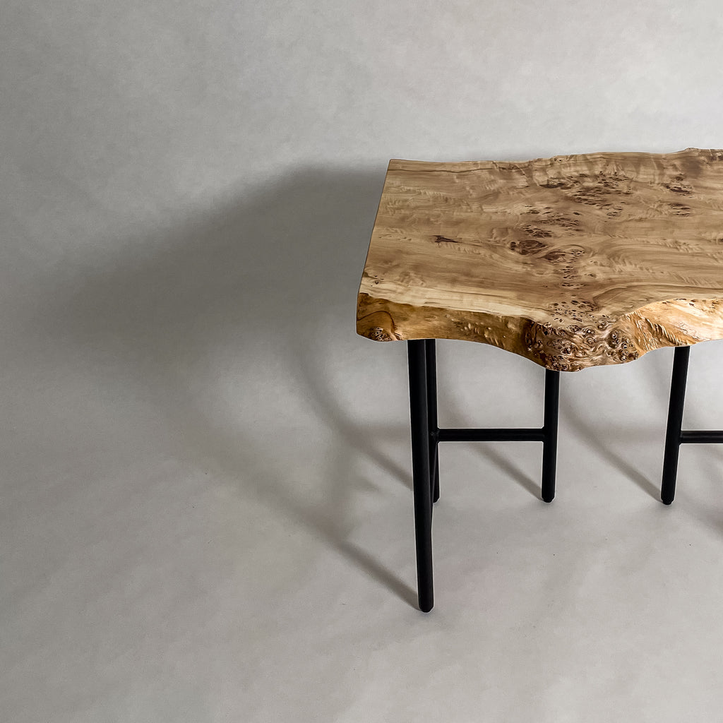 深い森で育ったポプラが長い年月を重ねて生んだ瘤杢が、黄金色の中に豊かな表情を描きます。自然の形を残した加工が、木が刻んだ時間の流れと温かな息づかいを上品に伝える、味わい深い魅力の一枚です。