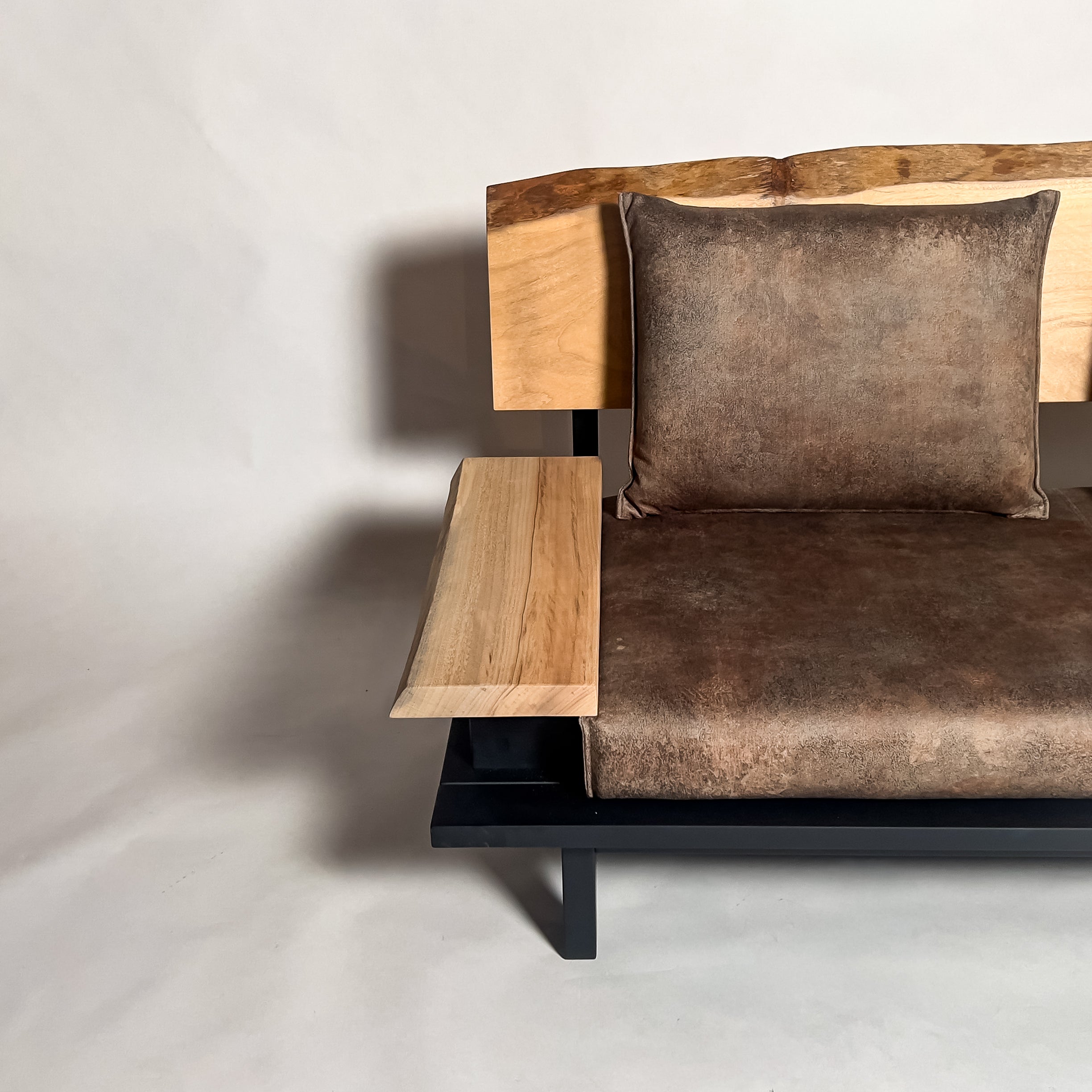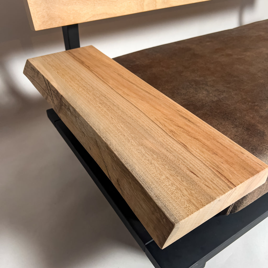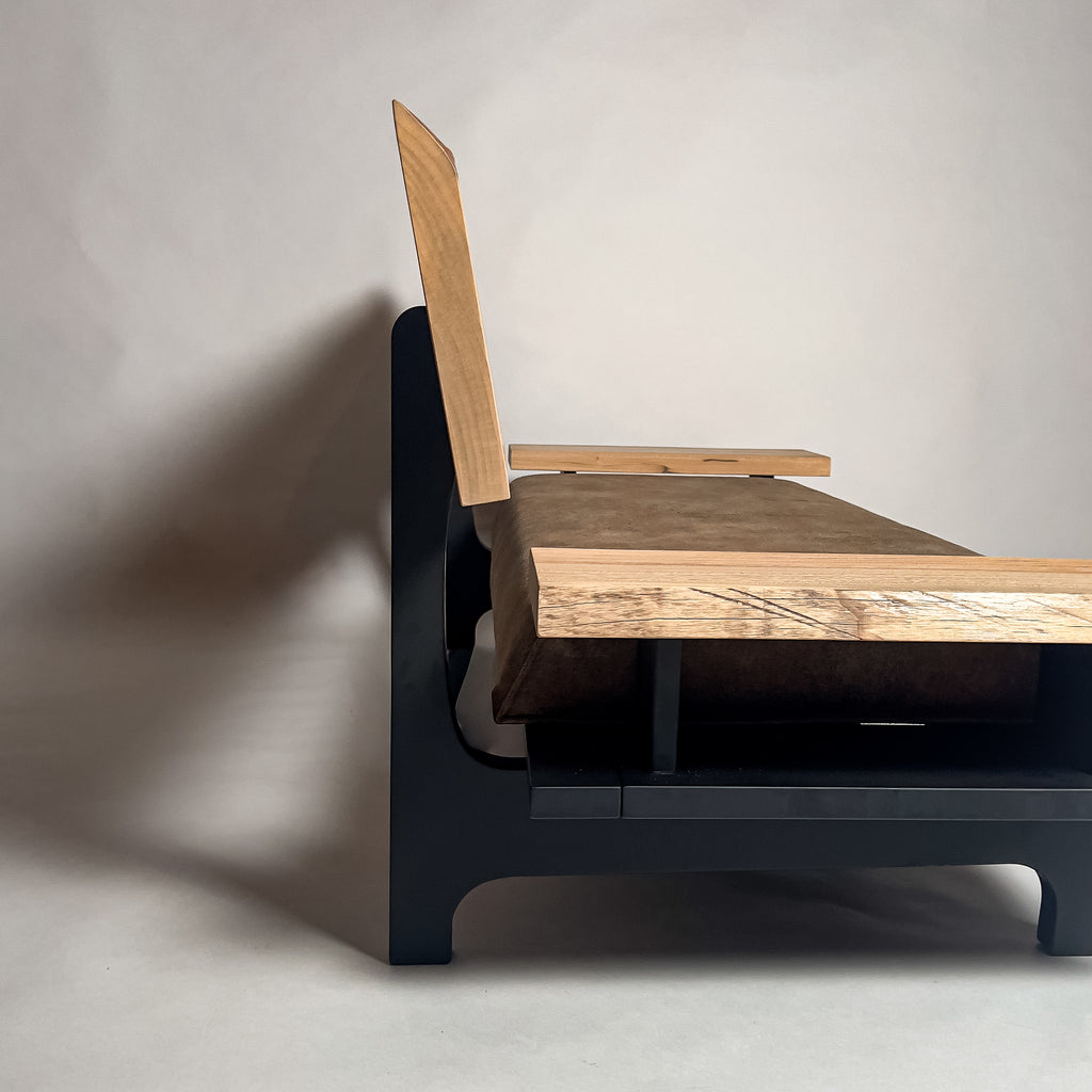 肘置き・背もたれに一枚板をあしらい、空間全体を洗練された雰囲気で包み込む2人掛けソファ。造形の美しさと素材感が空間を格調高く彩ります。さらに、緻密に設計されたクッションが身体をやさしく支え、長時間でも心地よく寛げる使いやすさを実現しました。