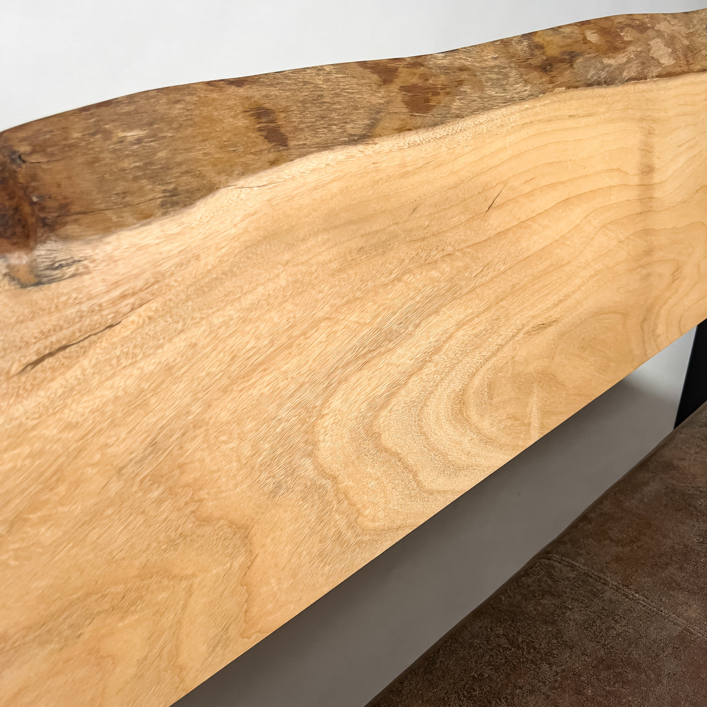 複数の板をつなぎ合わせたものとは異なり、途切れることなく続く杢目は自然の美しさをそのまま映し出します。