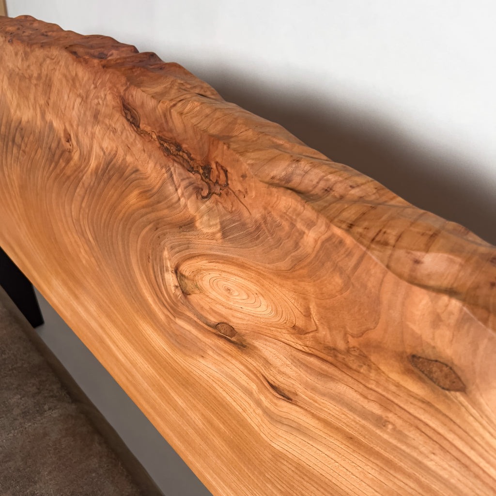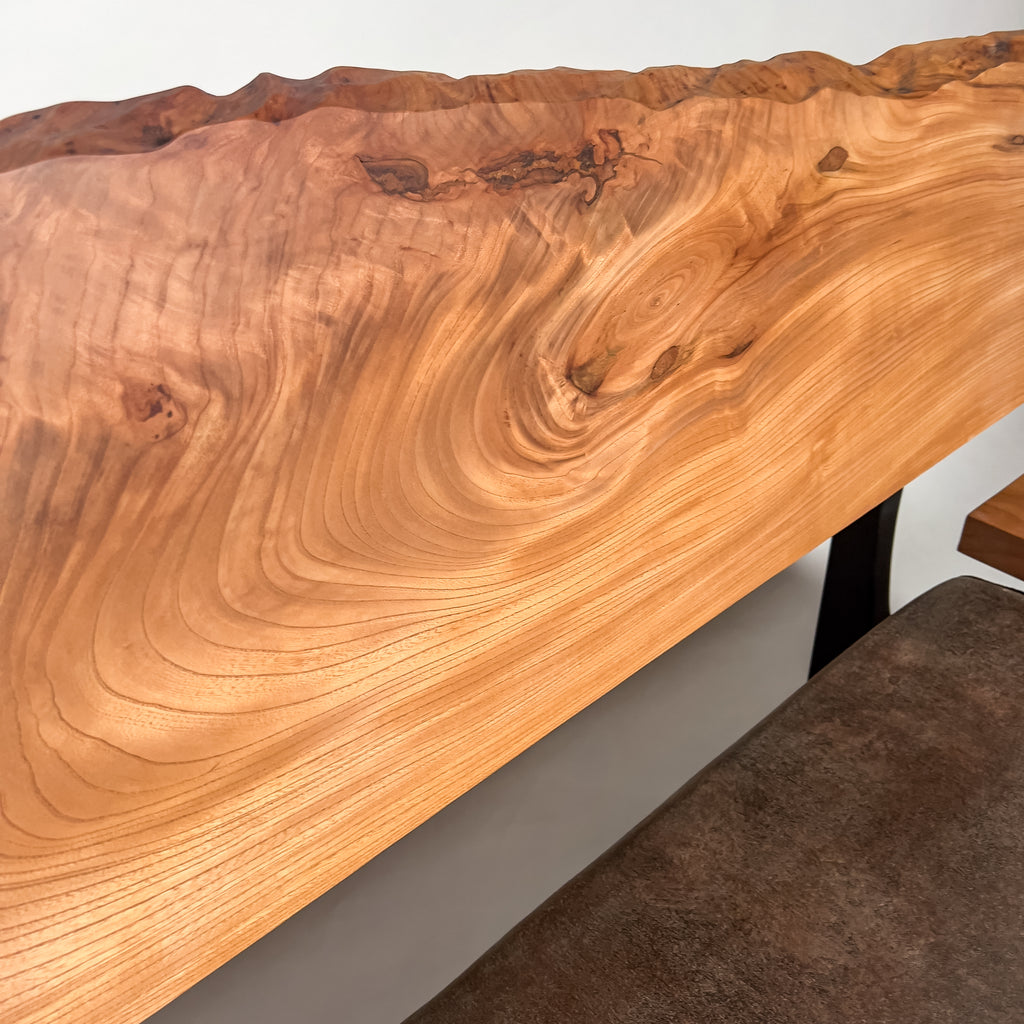 複数の板をつなぎ合わせたものとは異なり、途切れることなく続く杢目は自然の美しさをそのまま映し出します。