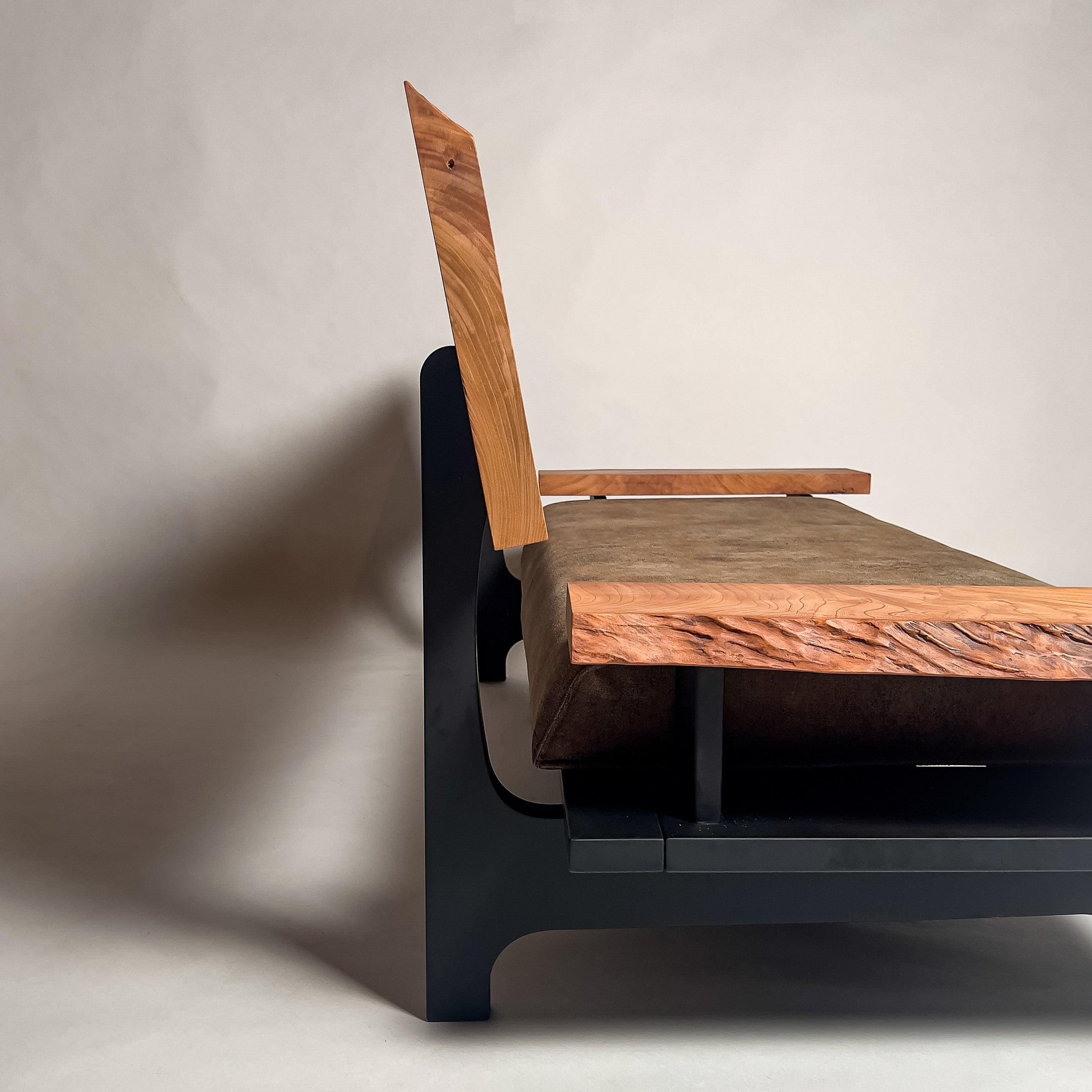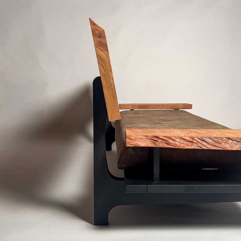 肘置き・背もたれに一枚板をあしらい、空間全体を洗練された雰囲気で包み込む2人掛けソファ。造形の美しさと素材感が空間を格調高く彩ります。さらに、緻密に設計されたクッションが身体をやさしく支え、長時間でも心地よく寛げる使いやすさを実現しました。
