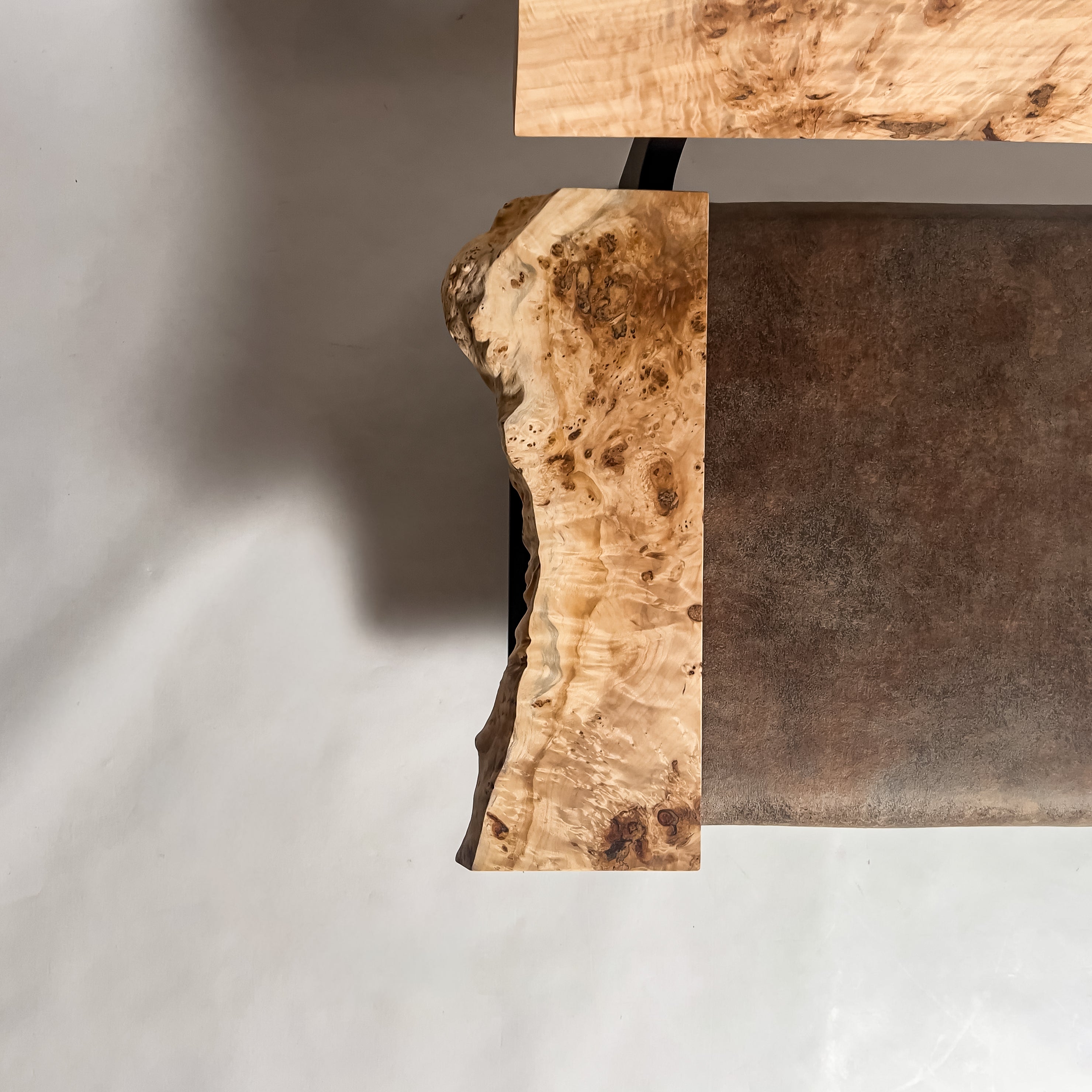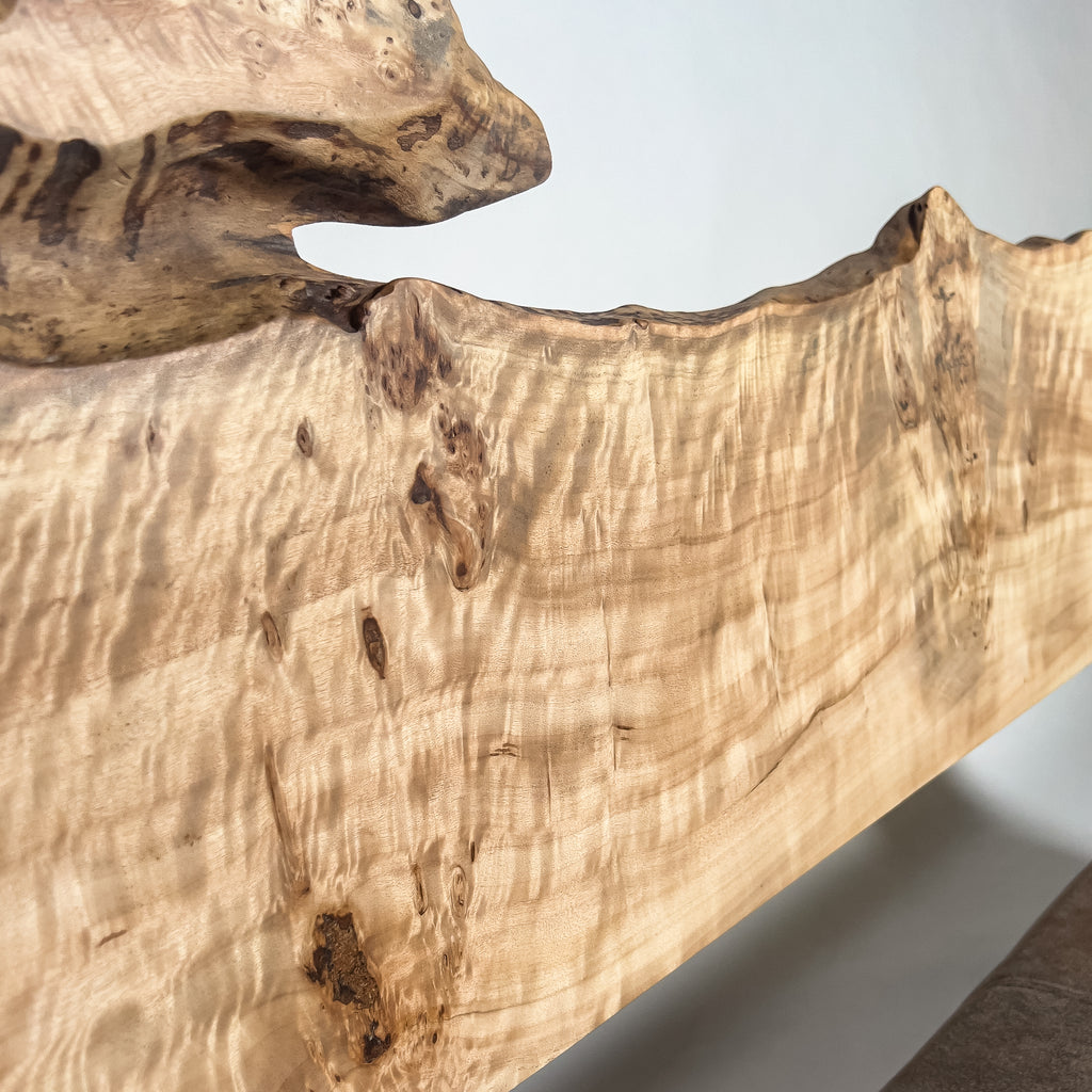 一枚板がもつ力強さとしなやかさを見極め、荒々しさと繊細さを併せ持つ加工を施すことで、その躍動感を余すことなく引き出す。 肌触り、見た目、素材感。そのすべてにおいて高い調和を図り、熟練の技術と豊富な経験をもとに、一枚板の魅力を緻密に引き出す。