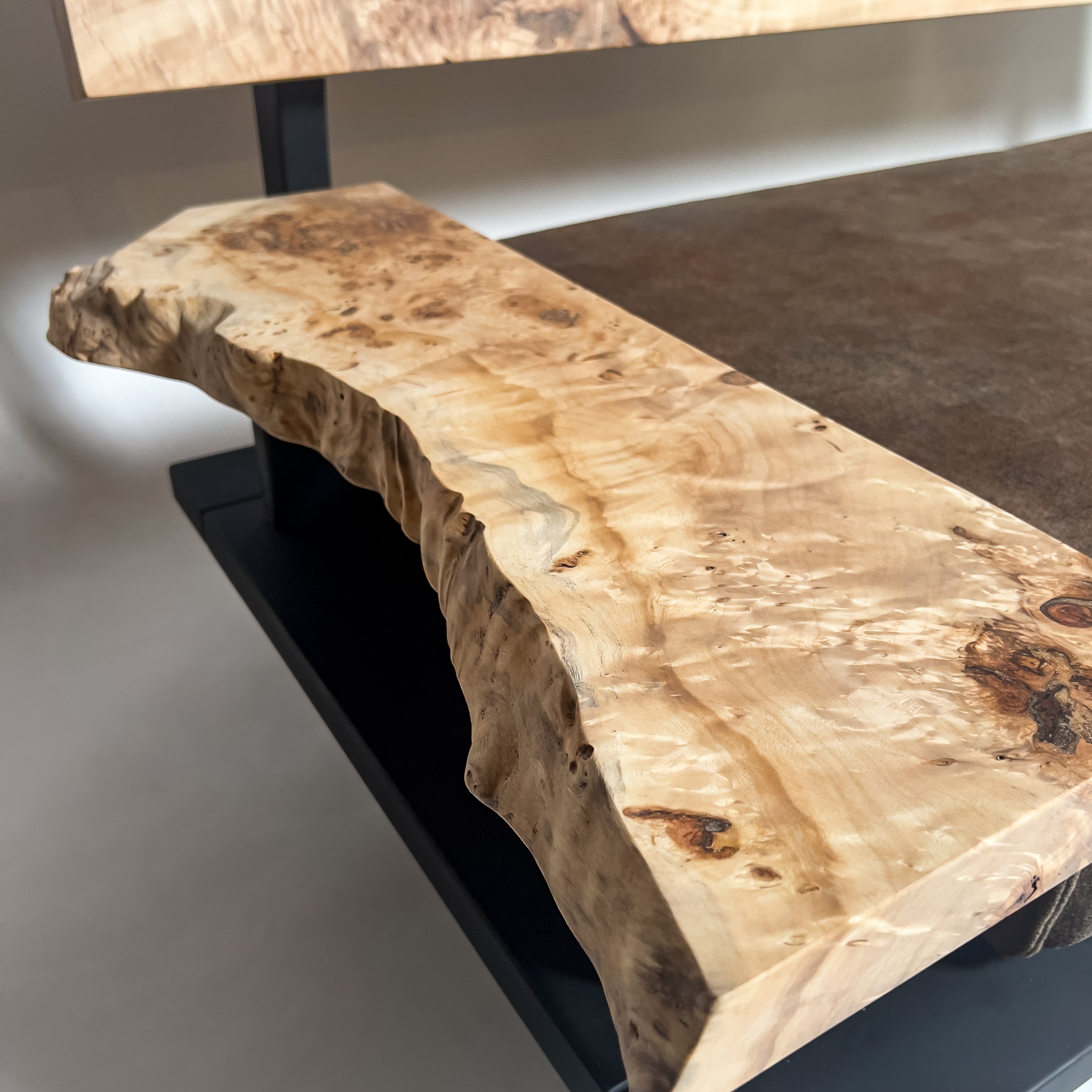 複数の板をつなぎ合わせたものとは異なり、途切れることなく続く杢目は自然の美しさをそのまま映し出します。