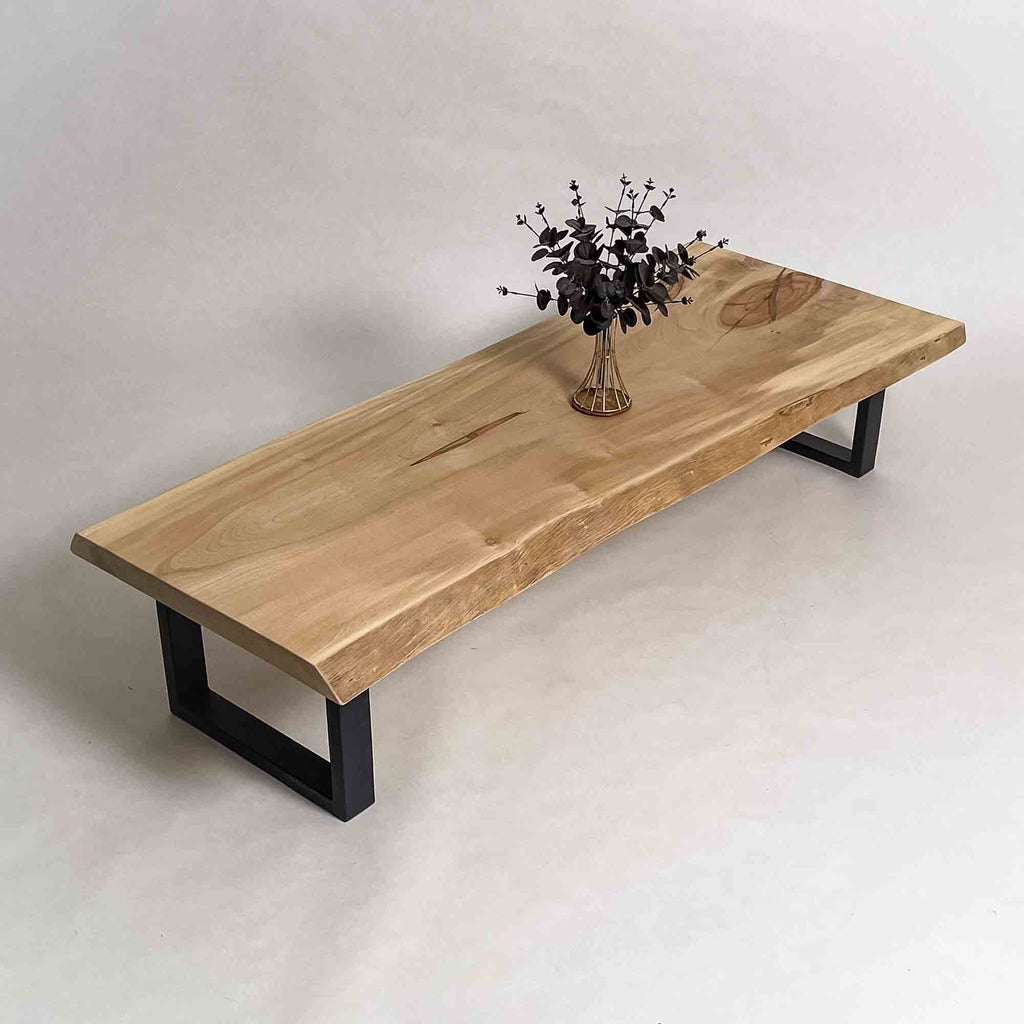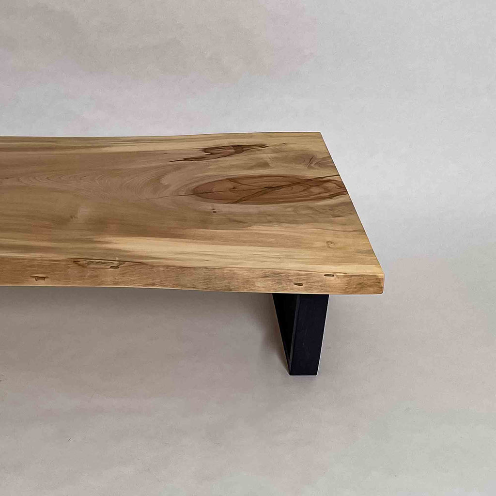現代の空間に映えるモダンな佇まいを意識しつつ、一枚板ごとに素材感と存在感の出方を見極め、加工を行います。造形を整えすぎず、木が本来持つ表情を残すことを大切にしています。