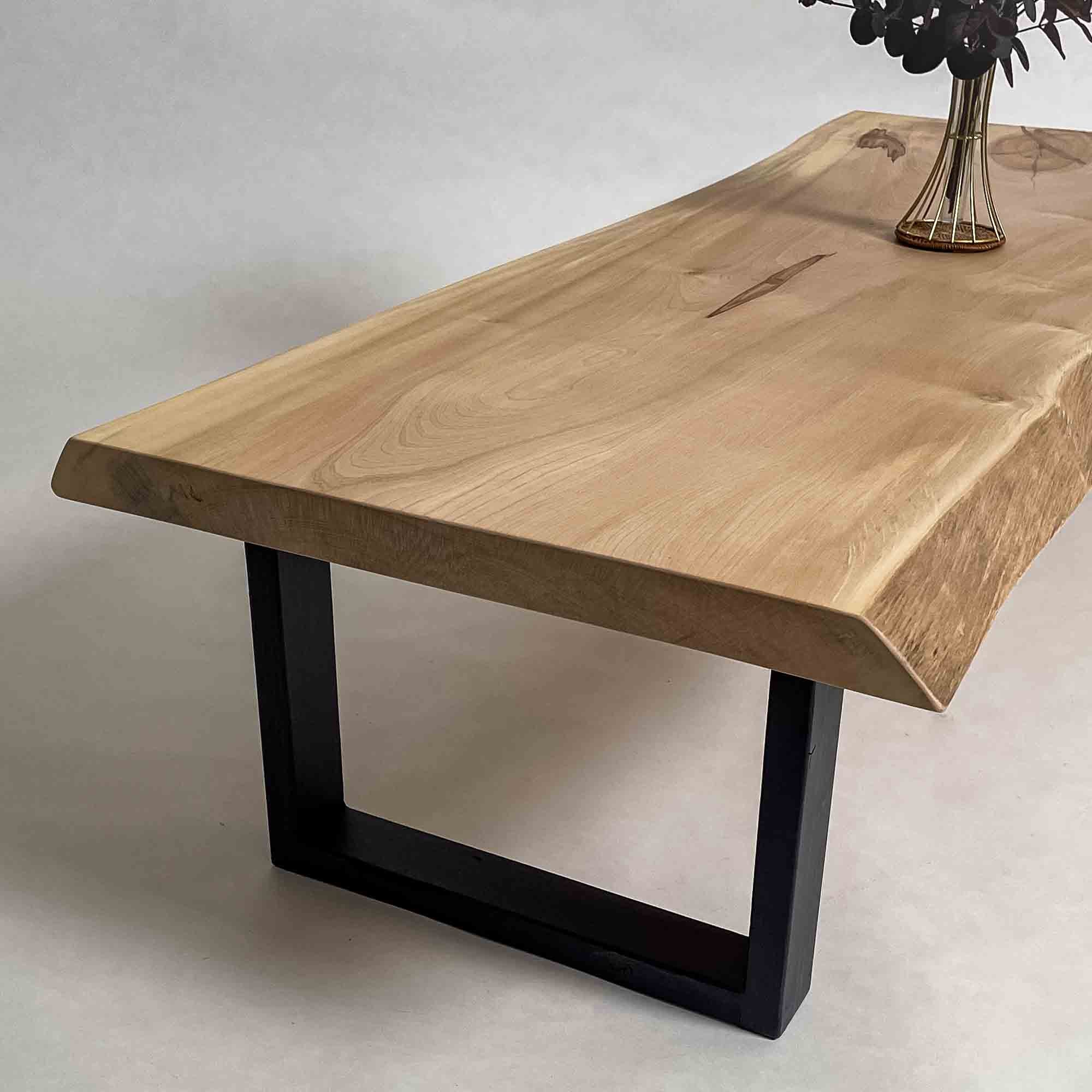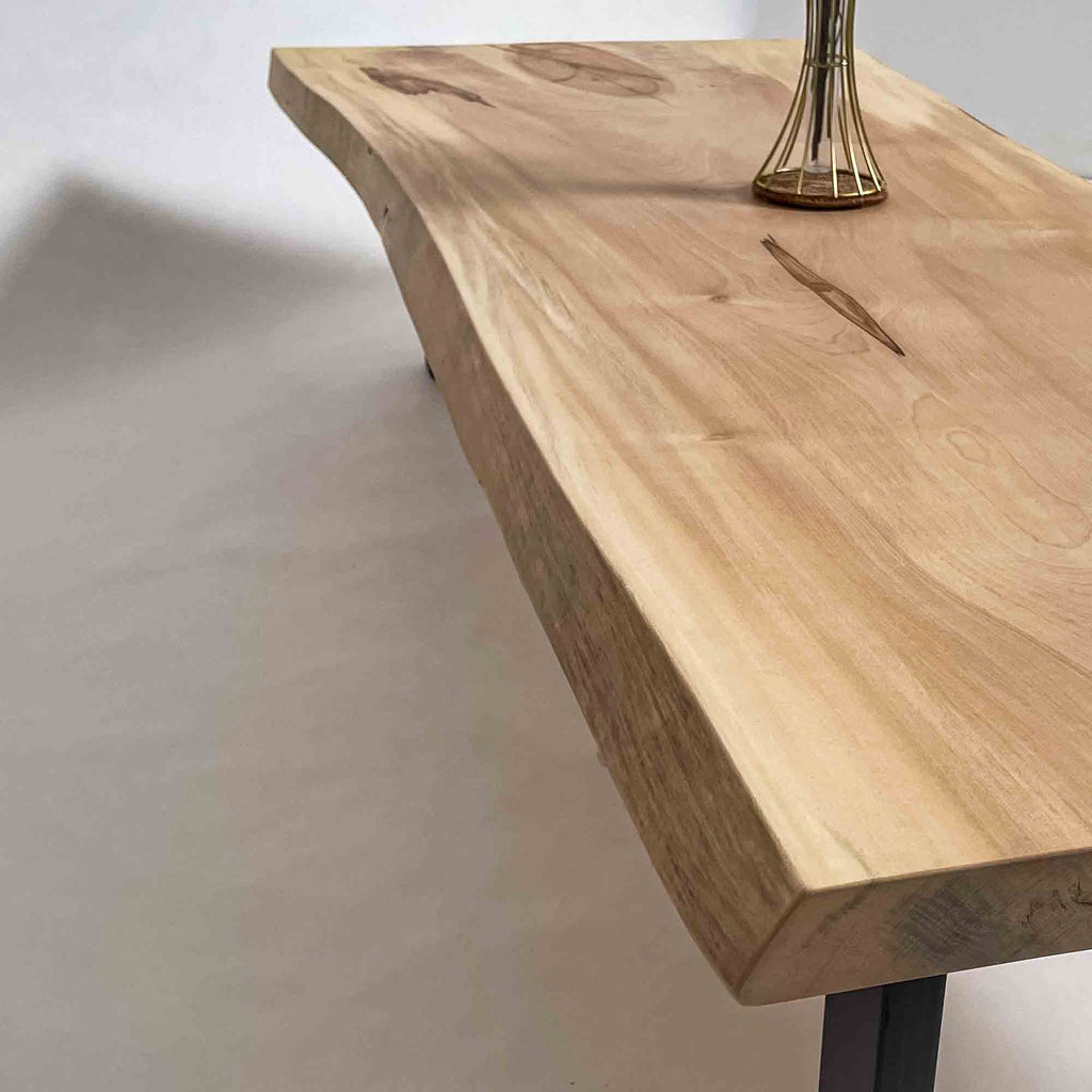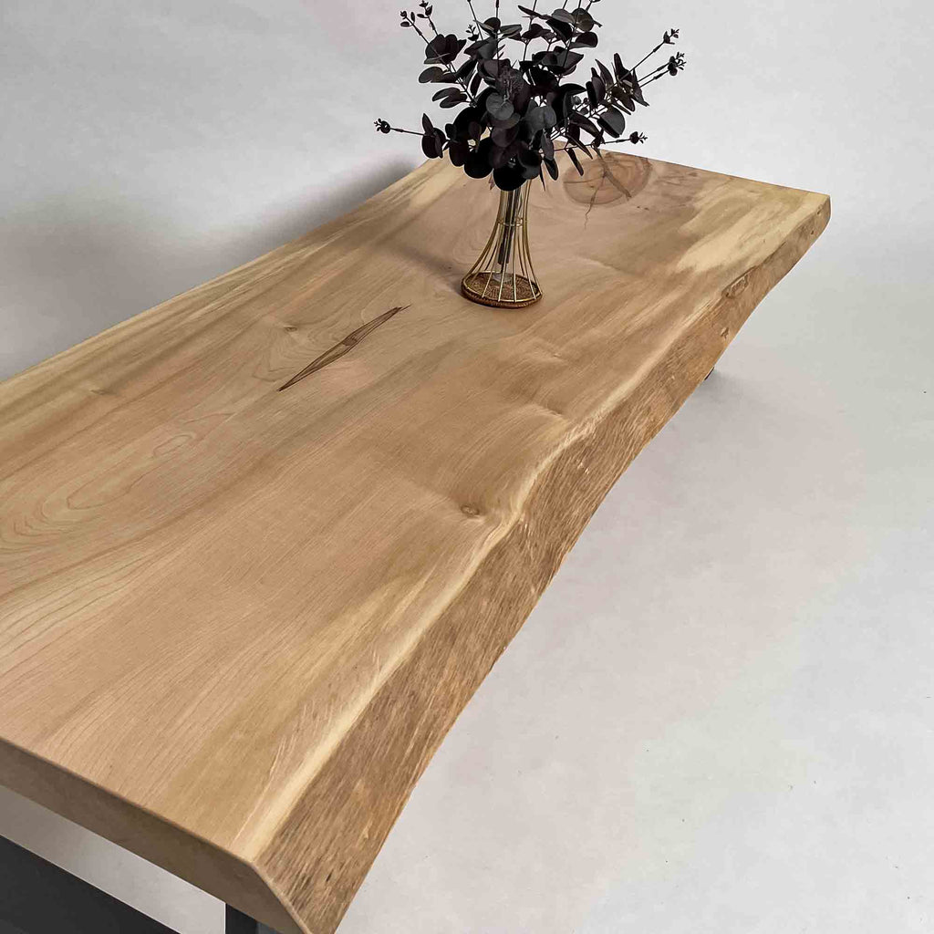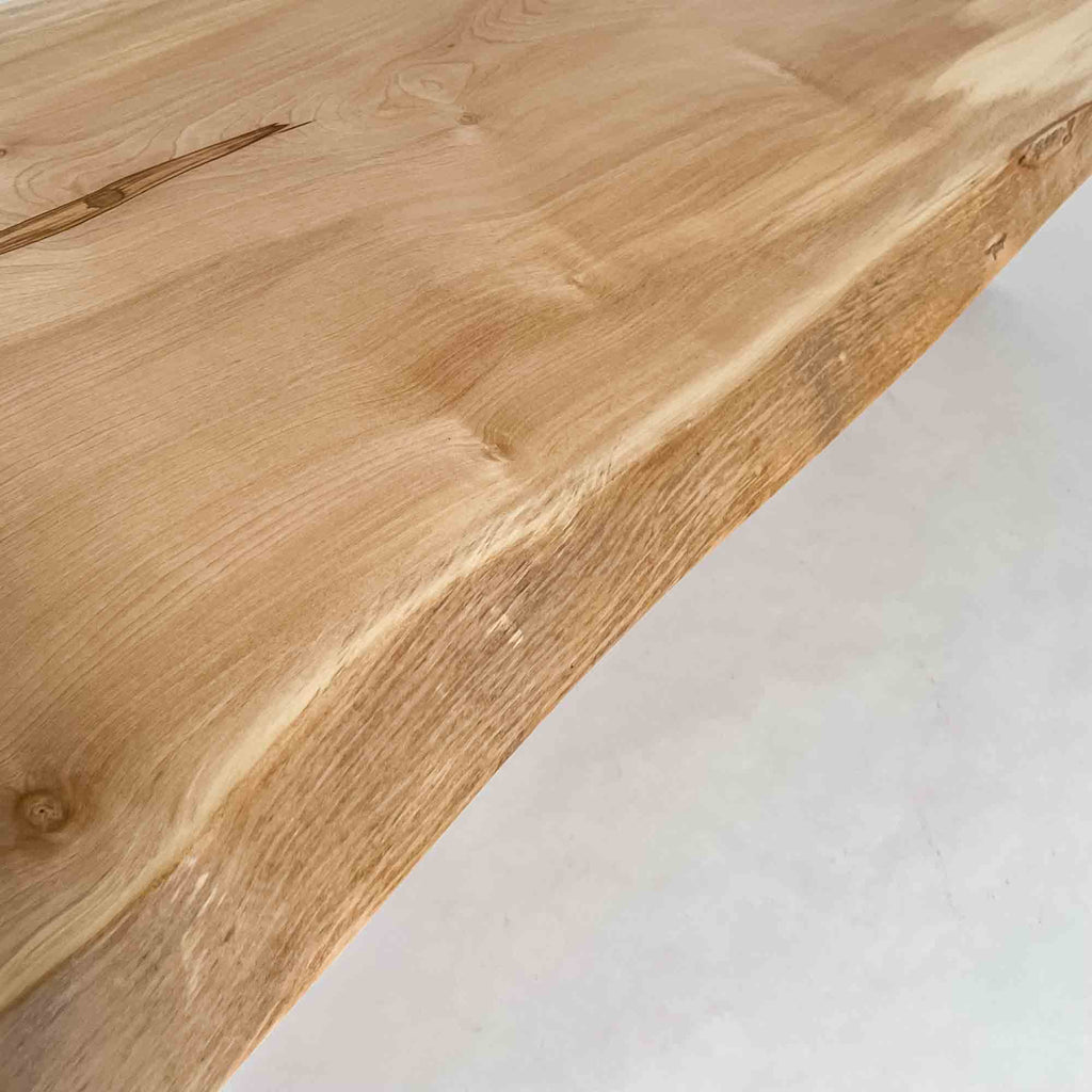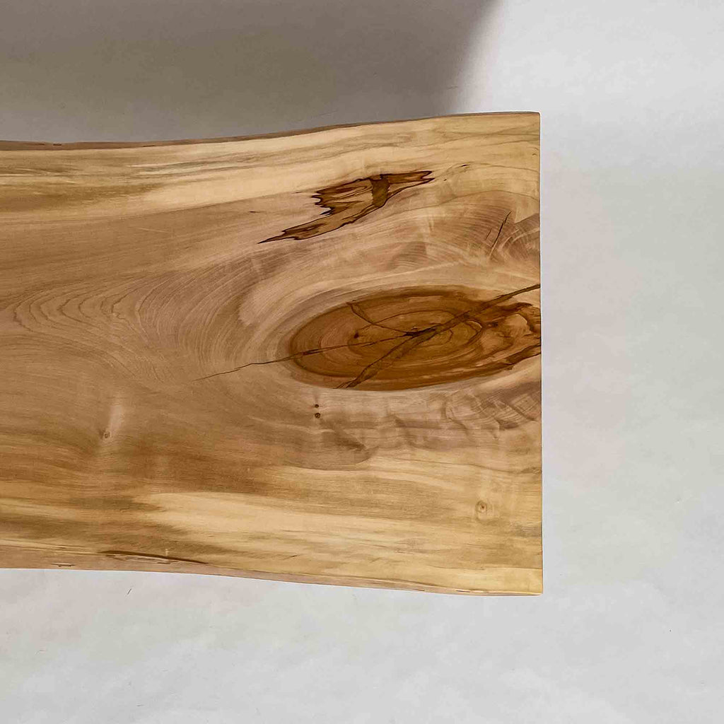 複数の板をつなぎ合わせたものとは異なり、途切れることなく続く杢目は自然の美しさをそのまま映し出します。