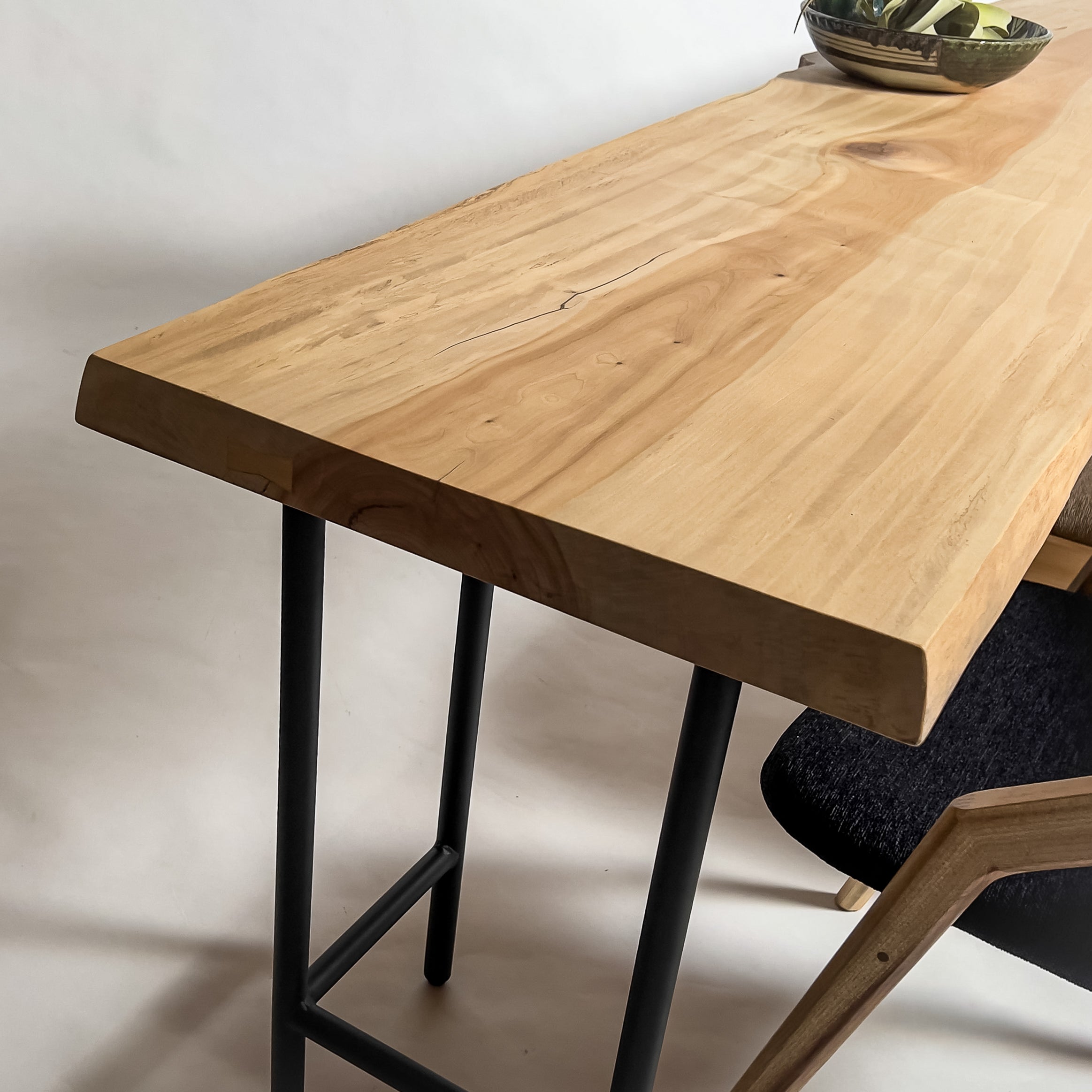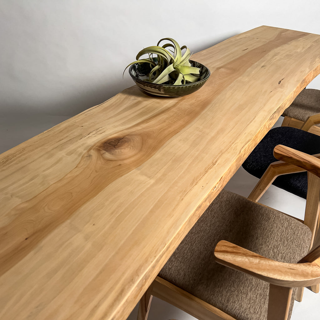 複数の板をつなぎ合わせたものとは異なり、途切れることなく続く杢目は自然の美しさをそのまま映し出します。