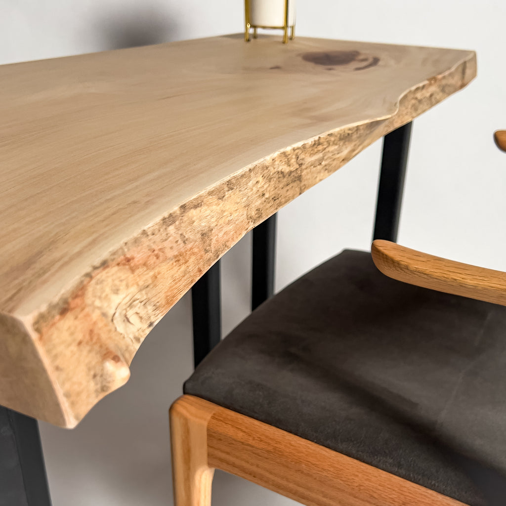 複数の板をつなぎ合わせたものとは異なり、途切れることなく続く杢目は自然の美しさをそのまま映し出します。