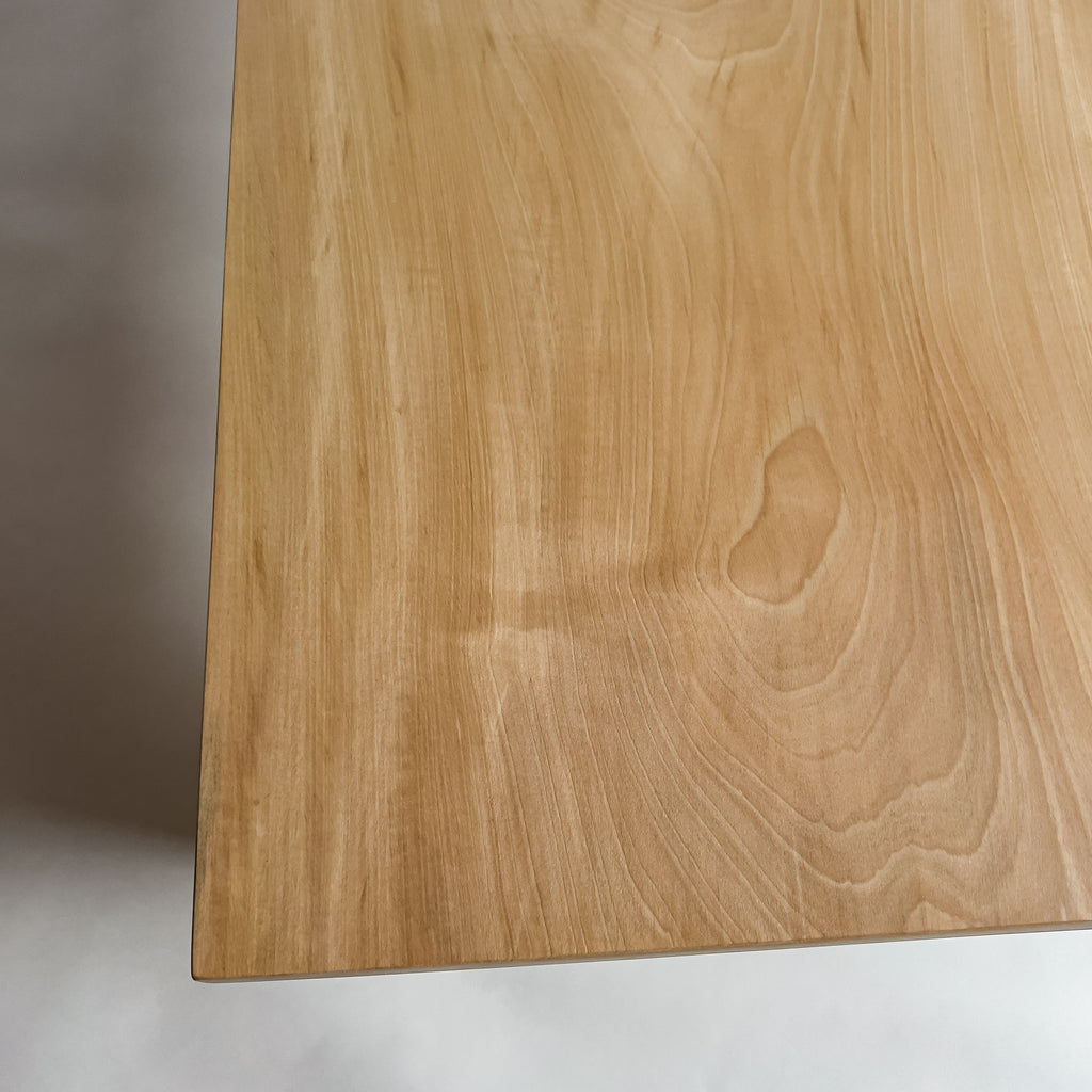 白く上品な色味と、栃特有の杢目「縮杢」や「スポルテッド」が特徴的。特有の色味と杢目は、お部屋を柔らかくモダンな雰囲気にすることができ、男女共に高い人気を誇る素材