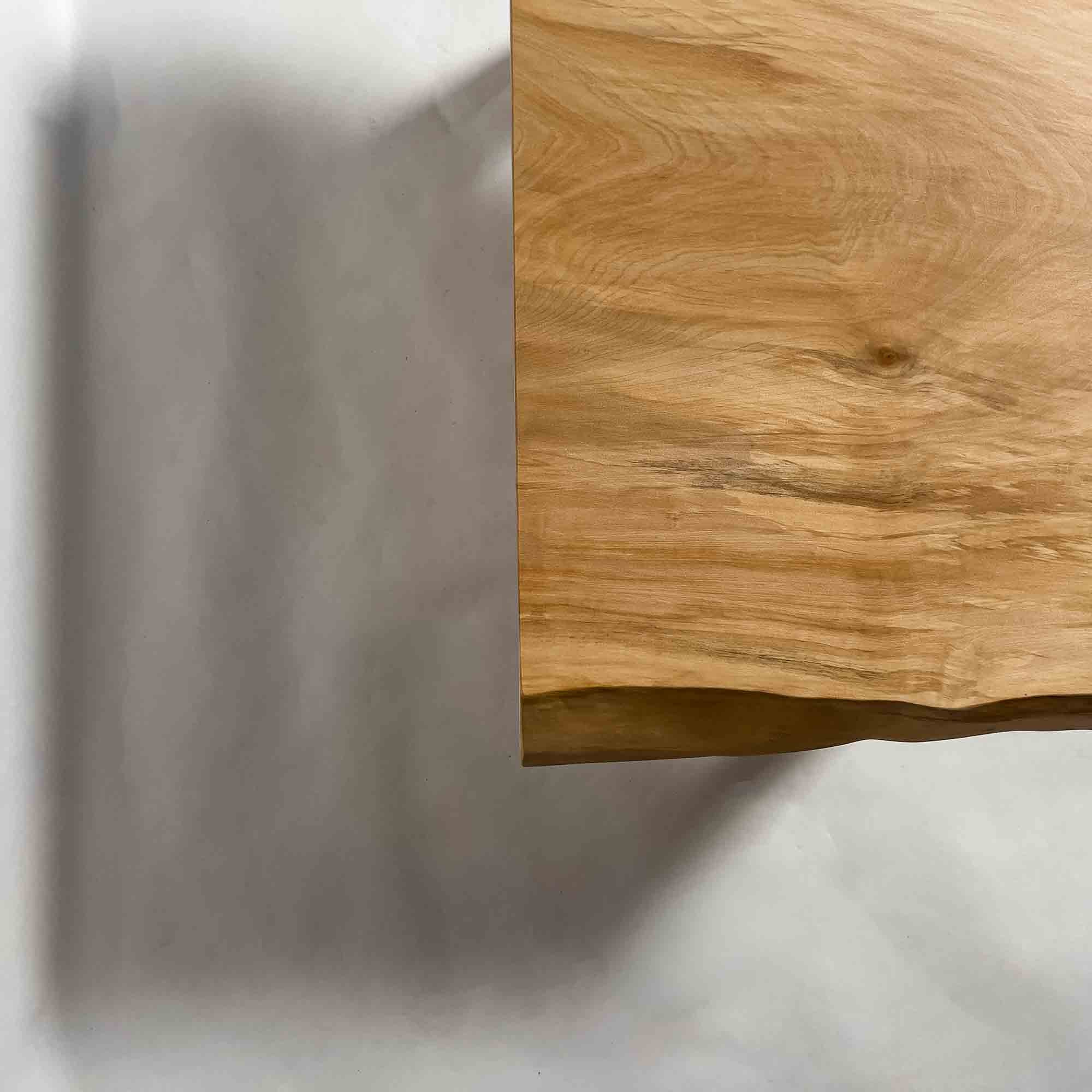 複数の板をつなぎ合わせたものとは異なり、途切れることなく続く杢目は自然の美しさをそのまま映し出します。